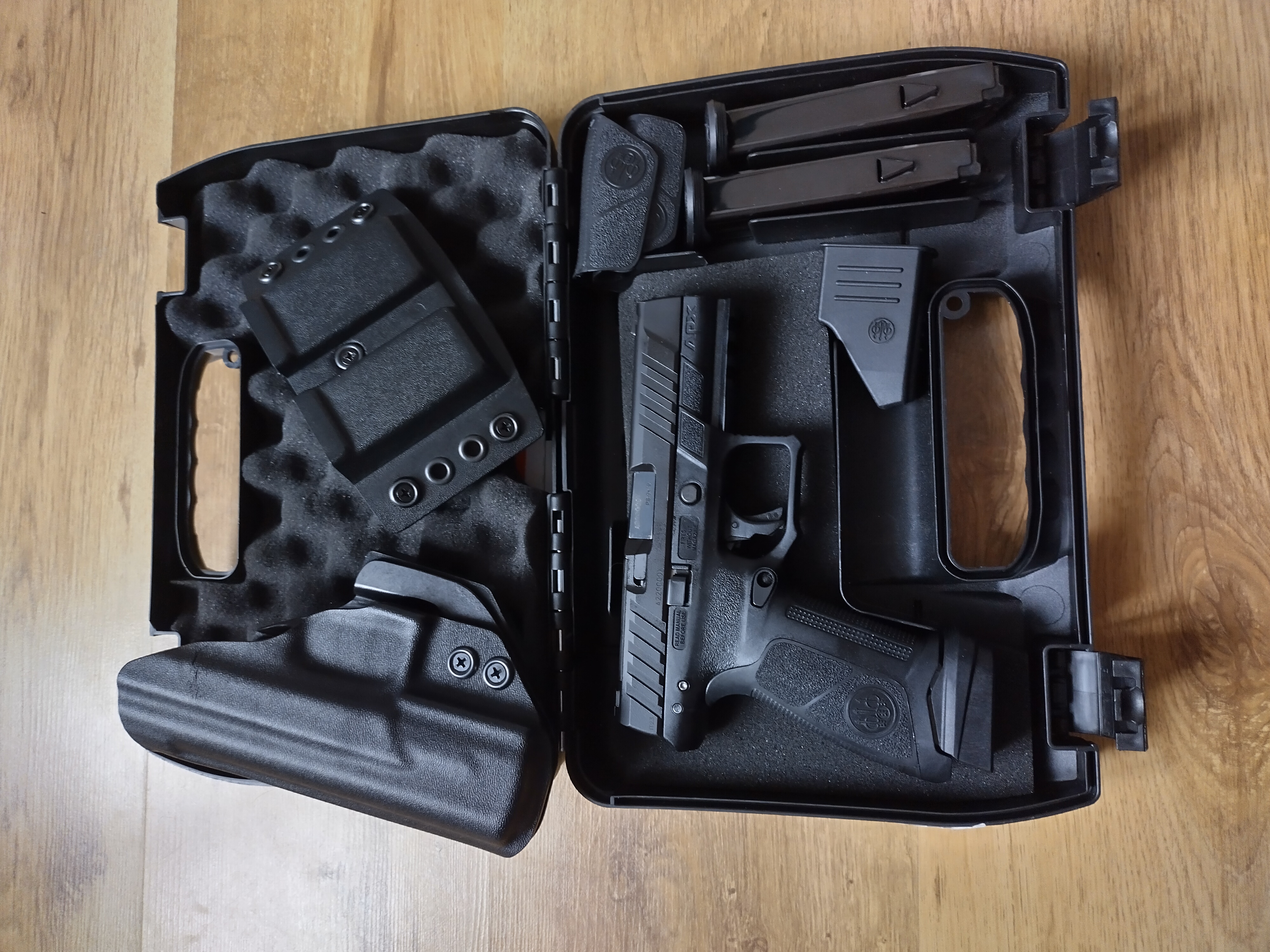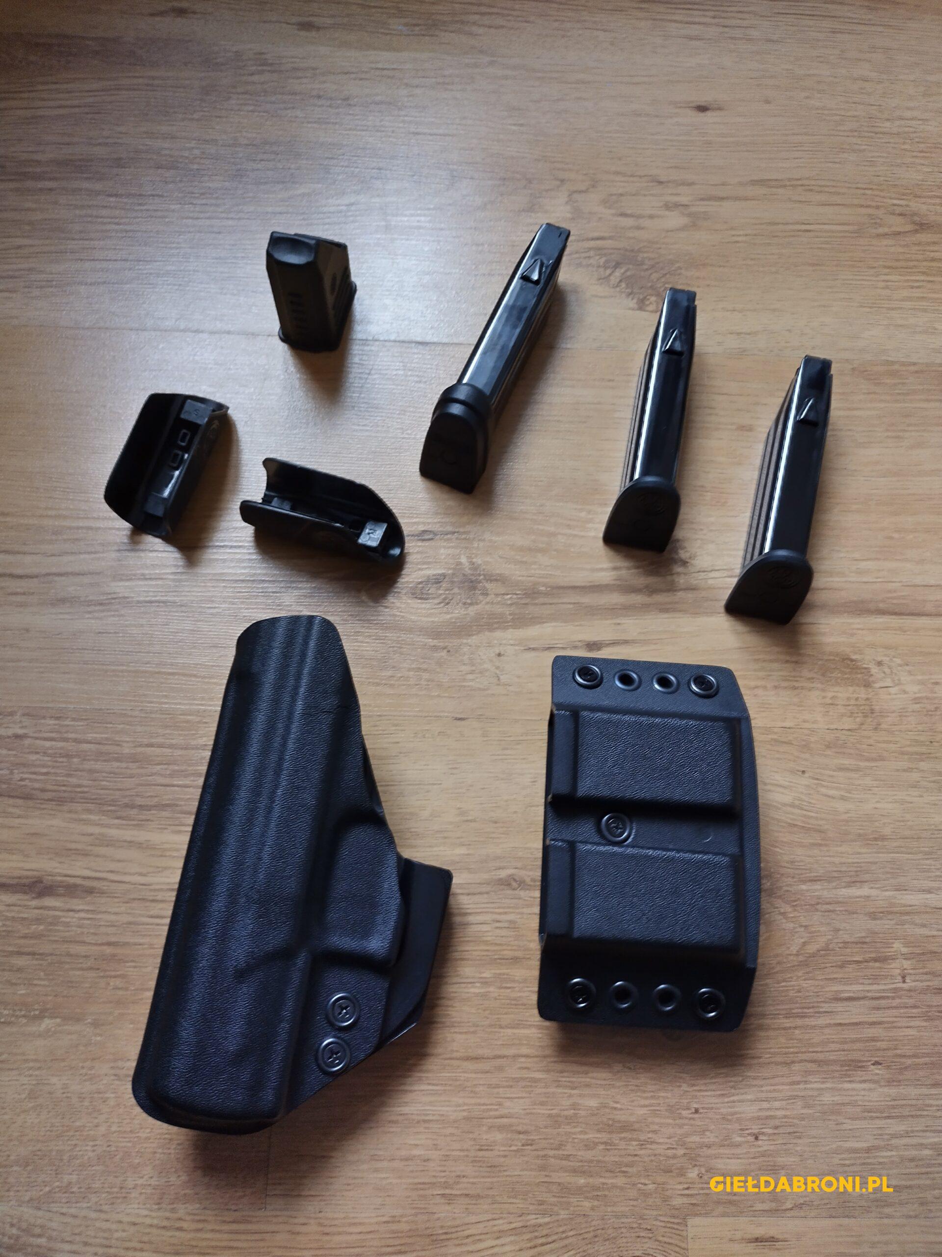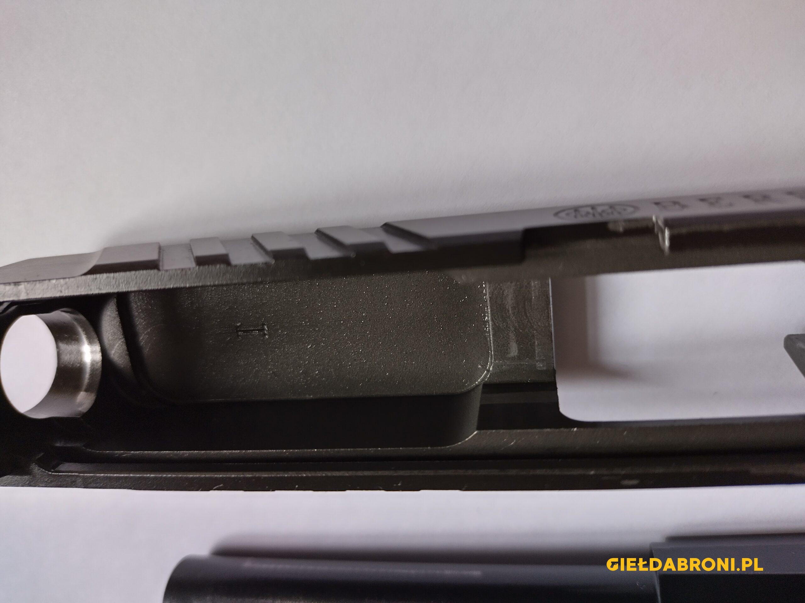 Pistolet zakupiony w RP arms 17 lutego 2024, jeszcze rok gwarancji. Pistolet jest w stanie bardzo dobrym, nastrzał ok 1200 kulek, lufa idealna, oksyda bez uszkodzeń innych niż normalne docieranie się broni. Spust po dotarciu bardzo przyjemny. Na początku eksplatacji przed dotarciem występowały sporadyczne zacięcia. Dodatkowo dołączam akcesoria: kabura, ładownica, dodatkowy magazynek na 19 naboi i płytka pod kolimator tony system typ F (pasuje do min. chińskim mikrokolimatorów Frenzy-s).