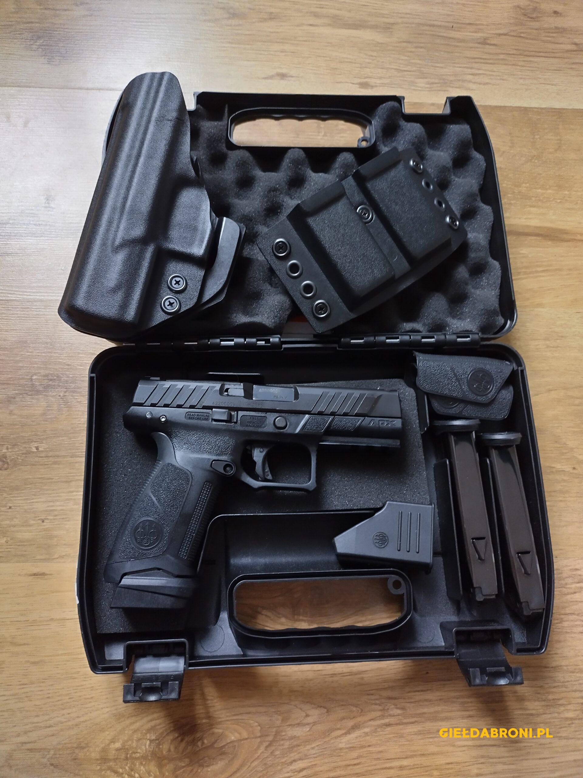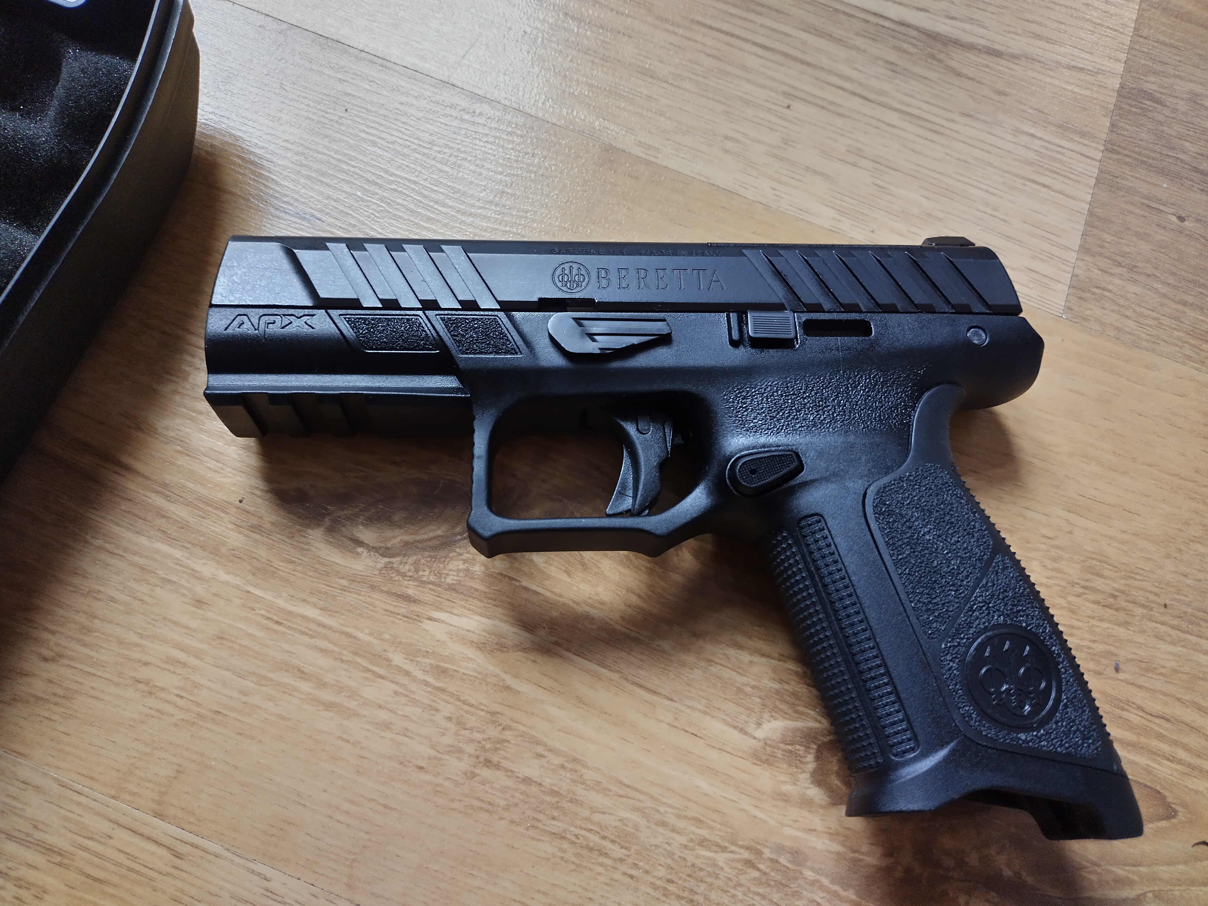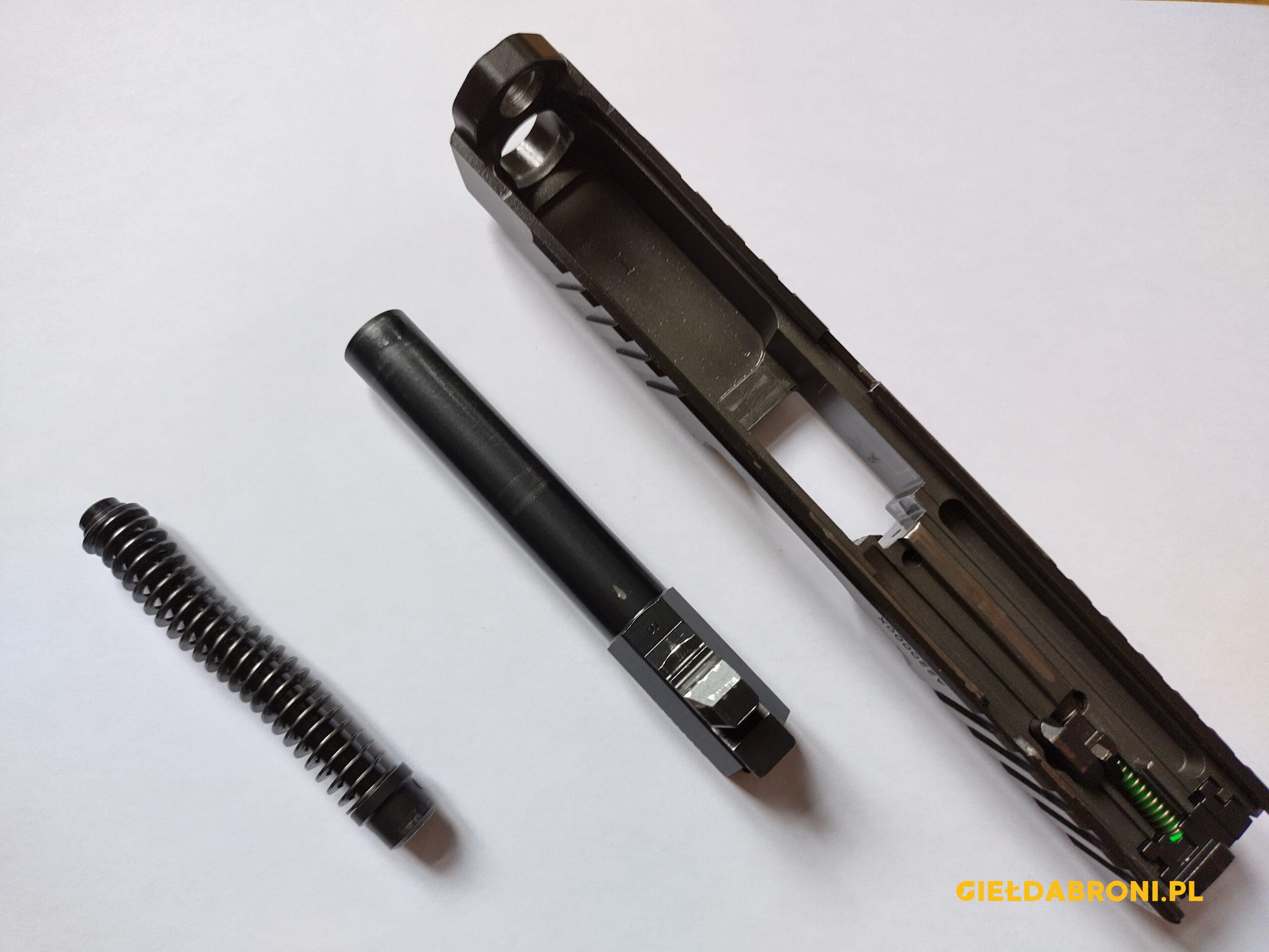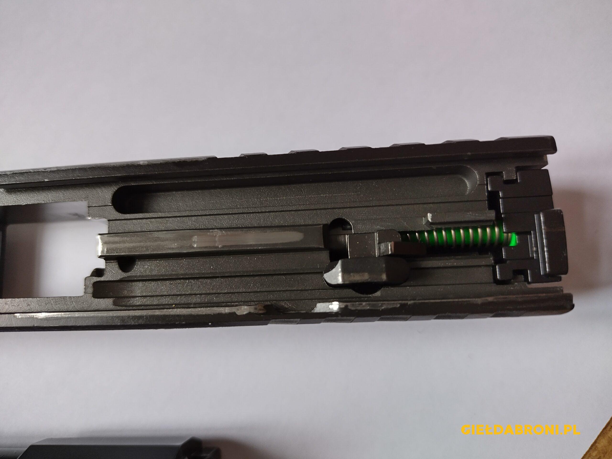Pistolet zakupiony w RP arms 17 lutego 2024, jeszcze rok gwarancji. Pistolet jest w stanie bardzo dobrym, nastrzał ok 1200 kulek, lufa idealna, oksyda bez uszkodzeń innych niż normalne docieranie się broni. Spust po dotarciu bardzo przyjemny. Na początku eksplatacji przed dotarciem występowały sporadyczne zacięcia. Dodatkowo dołączam akcesoria: kabura, ładownica, dodatkowy magazynek na 19 naboi i płytka pod kolimator tony system typ F (pasuje do min. chińskim mikrokolimatorów Frenzy-s).