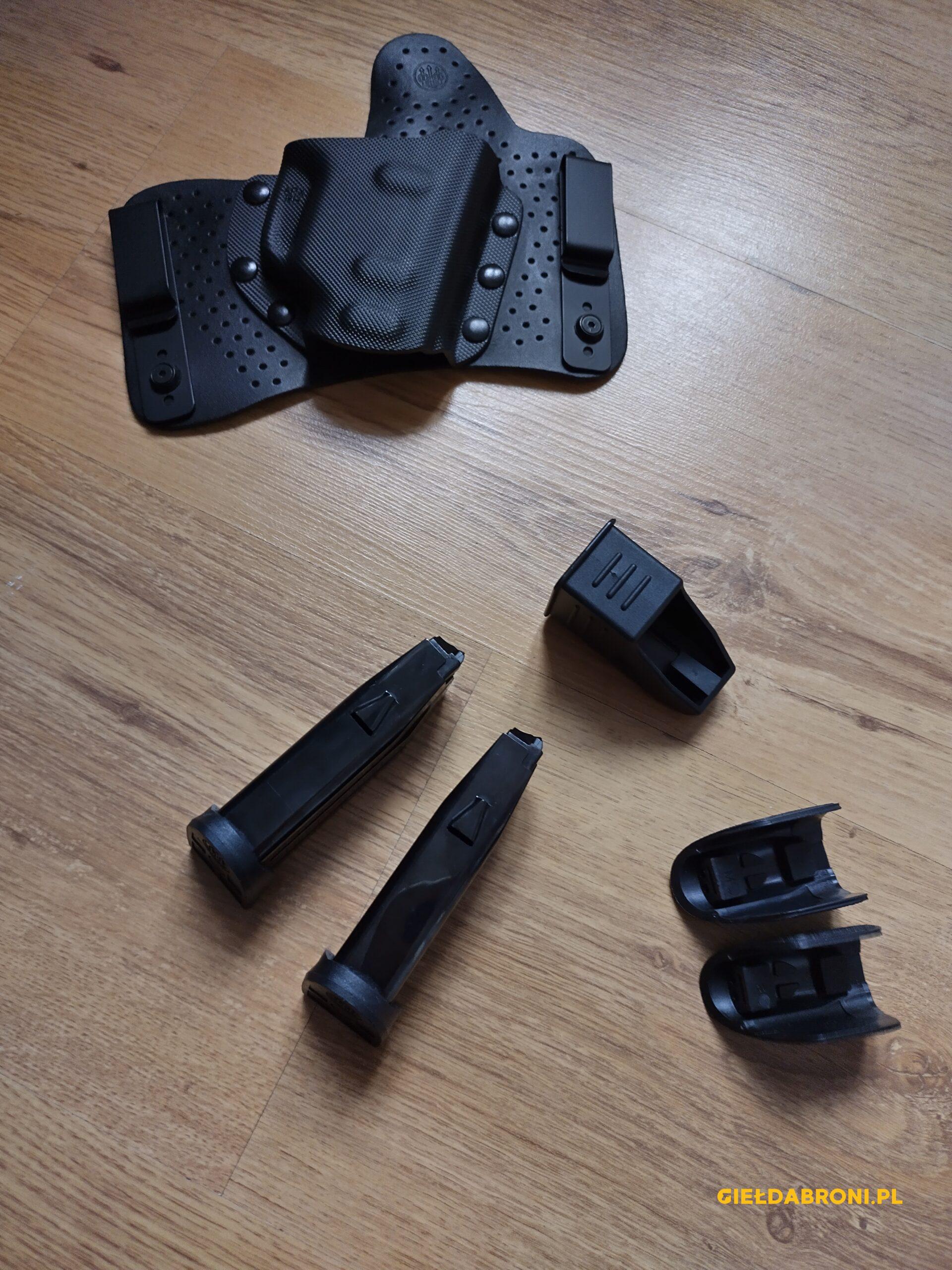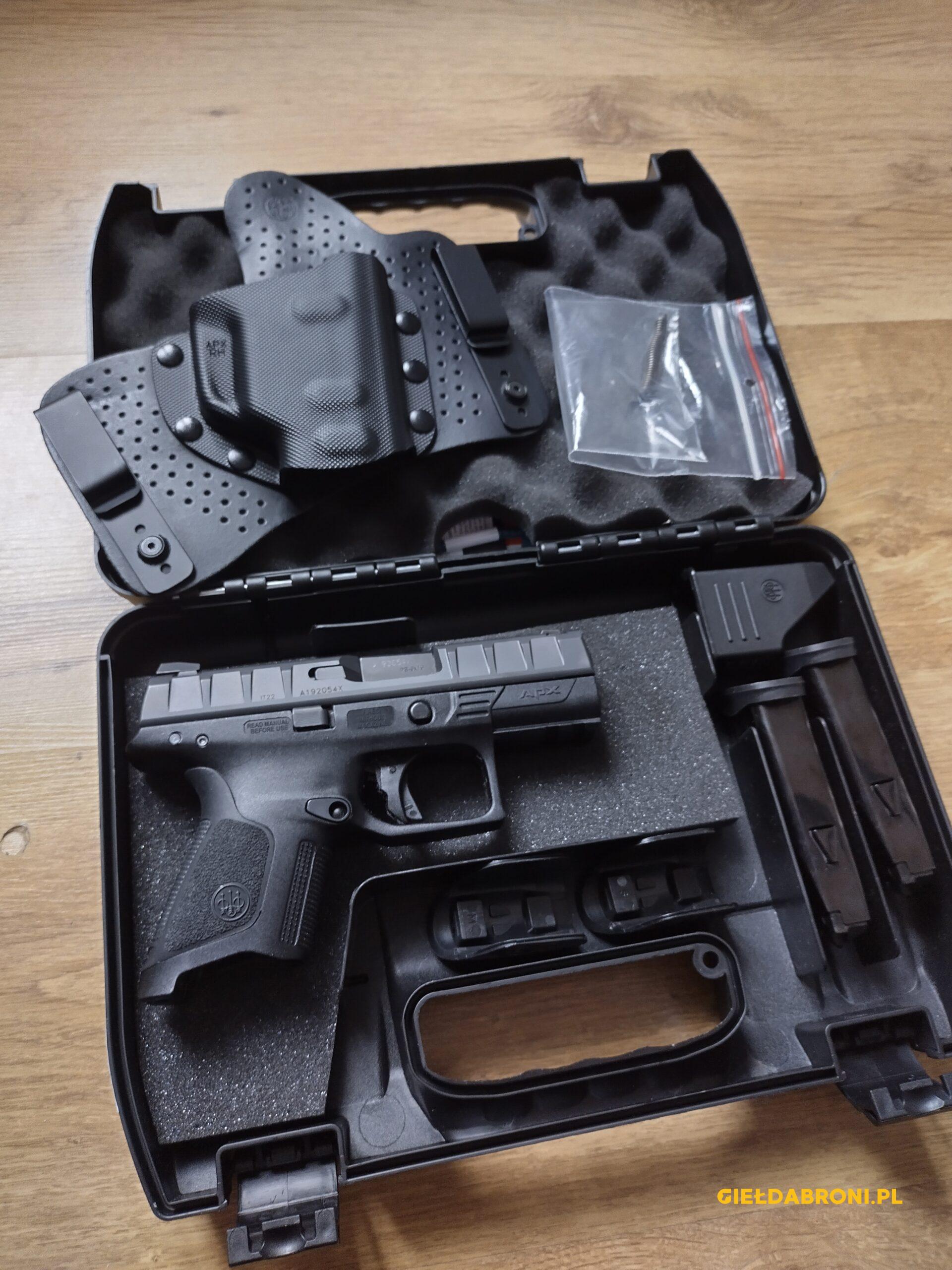 Pistolet zakupiony w sklepie strzelampl w Świdnicy 26 kwietnia 2024, jeszcze ponad rok gwarancji. Pistolet jest w stanie niemal idealnym, nastrzał raptem ok 300 kulek, lufa idealna, nawet elementy współpracujące wyglądają prawie jak nowe. Spust bardzo przyjemny m.in. dzięki lekkiej zielonej sprężynie iglicy (takiej jakie są montowane w APX A1). Do zestawu dołączam czarną sprężynę oraz oryginalną wentylowaną kaburę z beretta store, bardzo przyjemną do noszenia. Ten pistolet jest już raczej nie do dostania w sklepach, moim zdaniem prezentuje się lepiej niż A1. Sprzedaję ponieważ kupiłem microcompacta a szafa, budżet i promesy nie są z gumy.