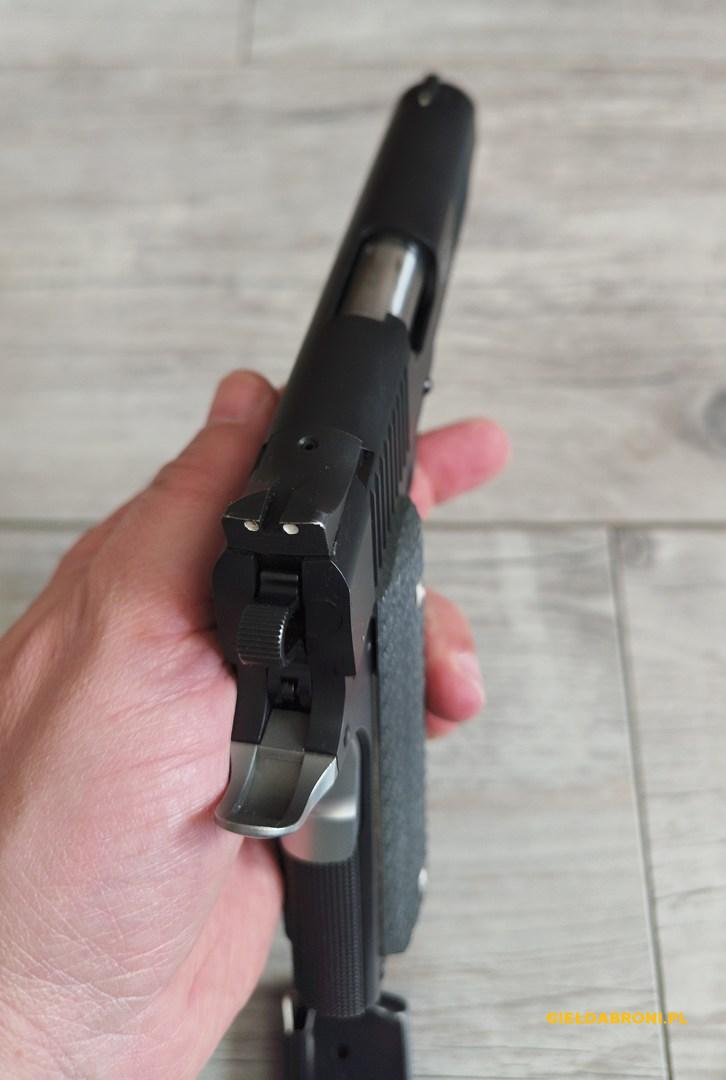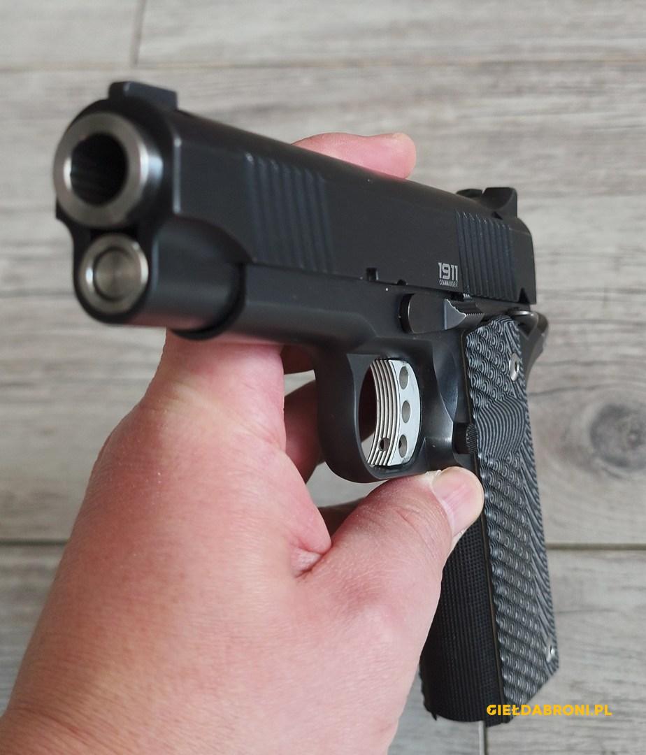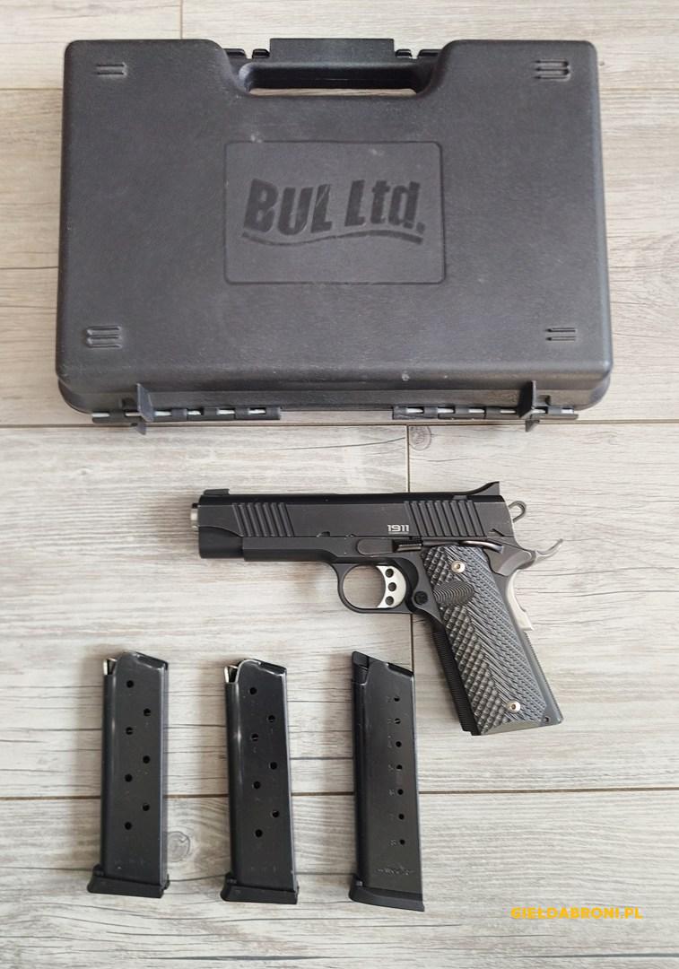 Jak w tytule, klasyczna konstrukcja 1911 produkcji izraelskiej BUL Armory, słynącej z precyzji wykonania i dopracowania broni. Pistolet w jedynie słusznym kalibrze .45 ACP wraz z dwoma oryginalnymi magazynkami oraz jednym od MEC-GAR. Posiada regulację spustu chodź pracuje płynnie i lekko z króciutkim resetem. Precyzyjna i wytrzymała lufa bull barrel.