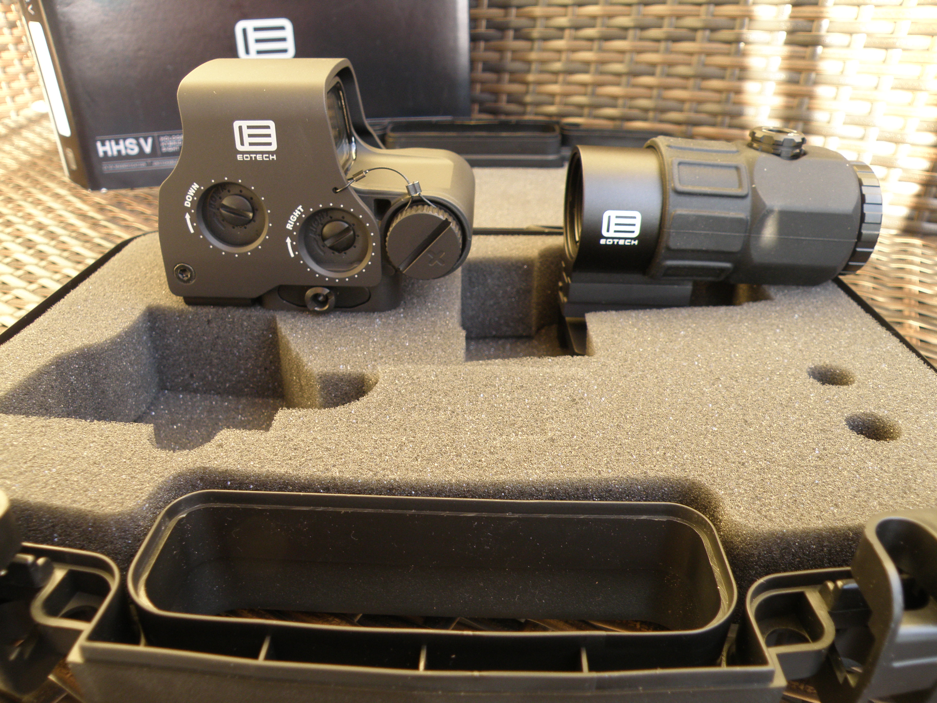 Fabrycznie nowy profesjonalny celownik optyczny – holograficzny renomowanej firmy EOTECH model EXPS 3-4 z powiększalnikiem G 45 ( powiększenie 5x )
