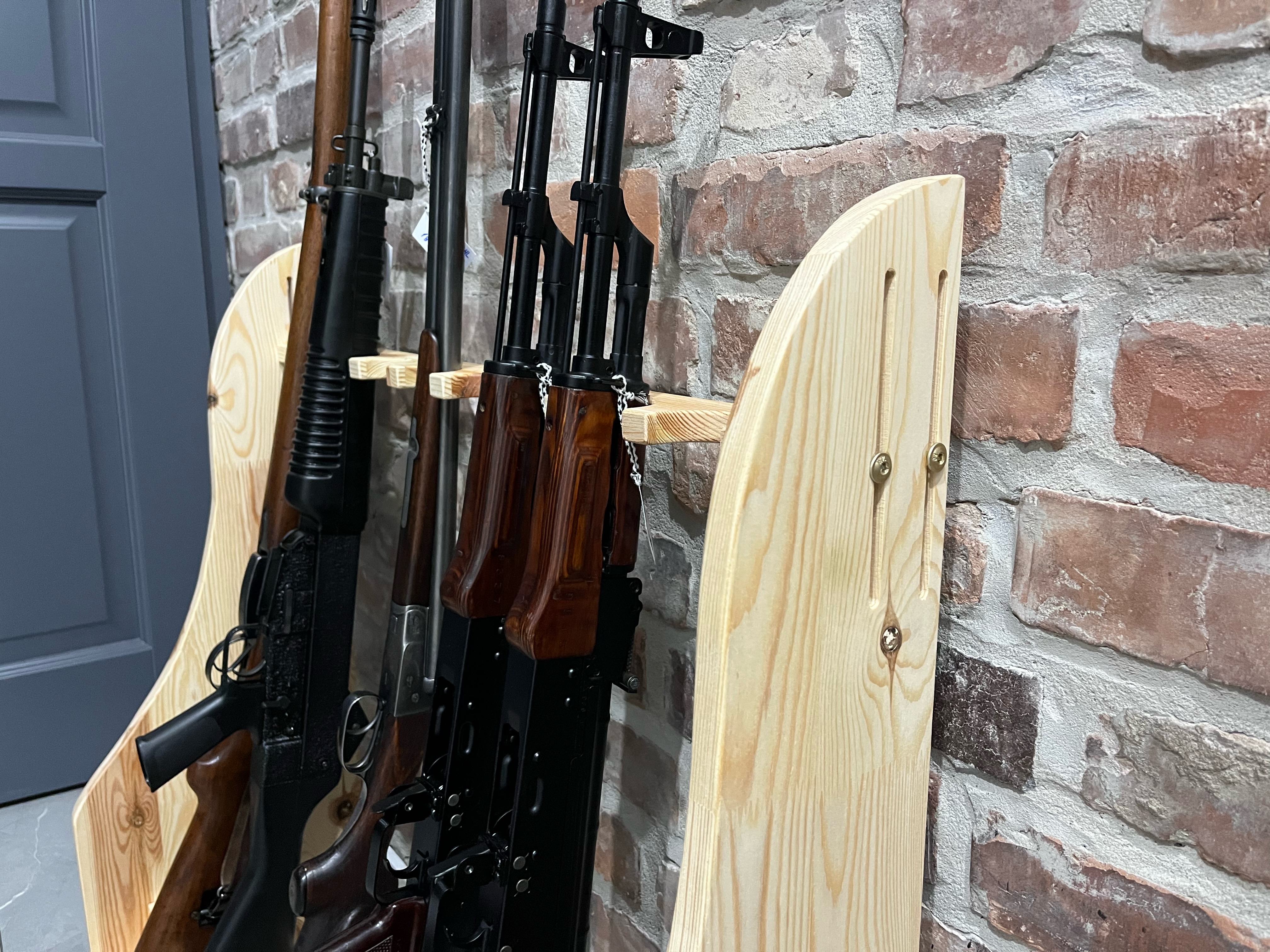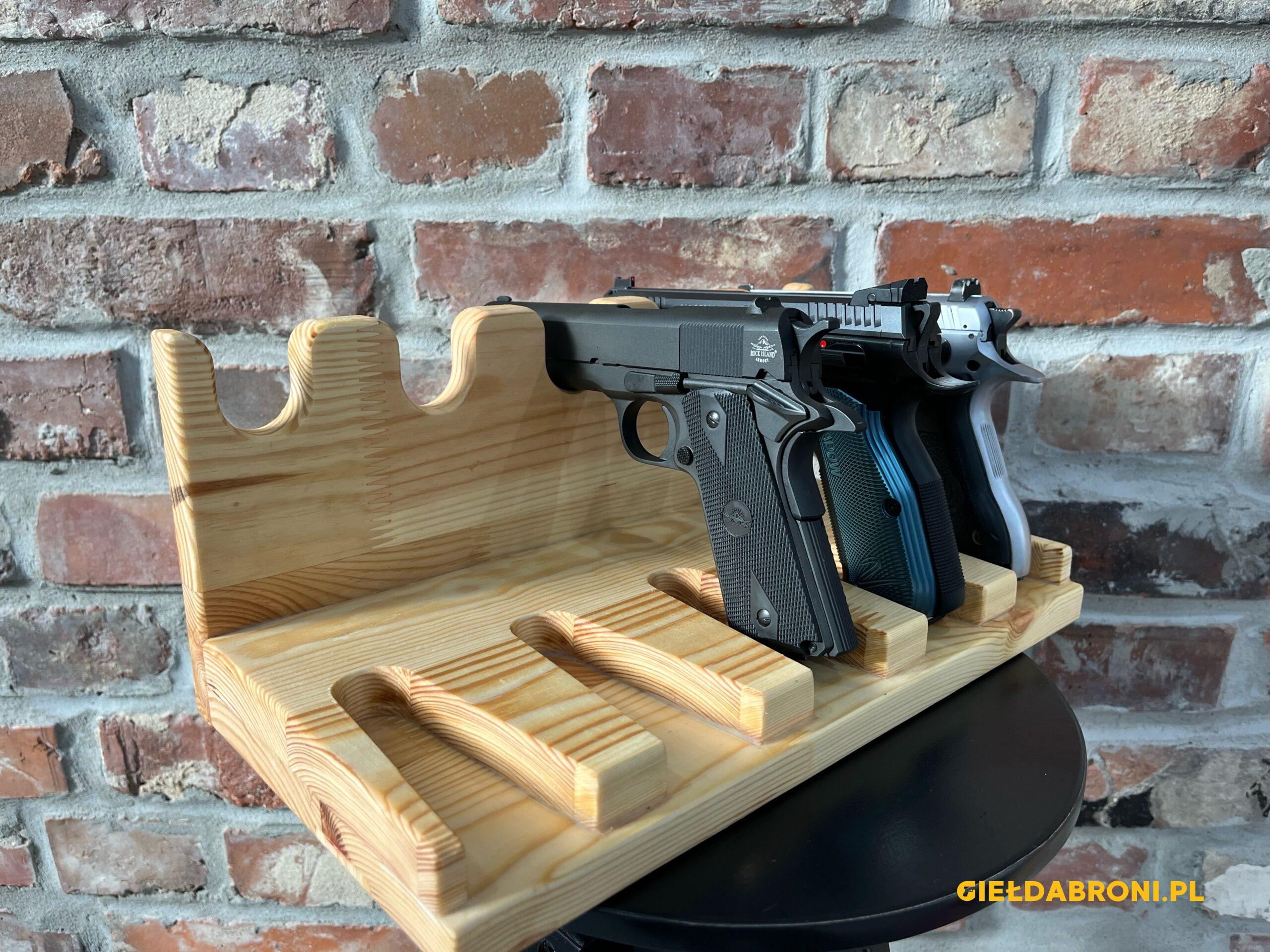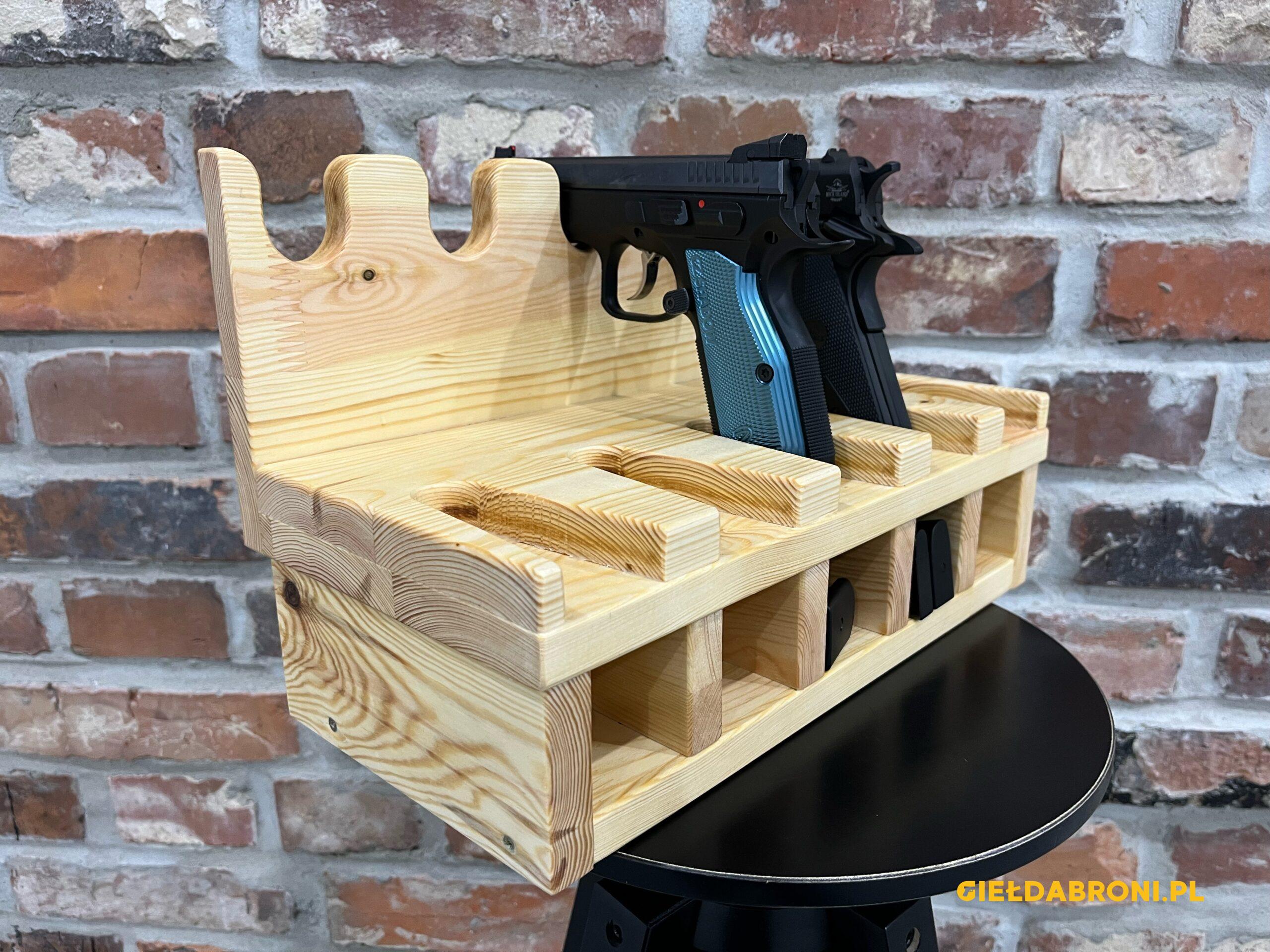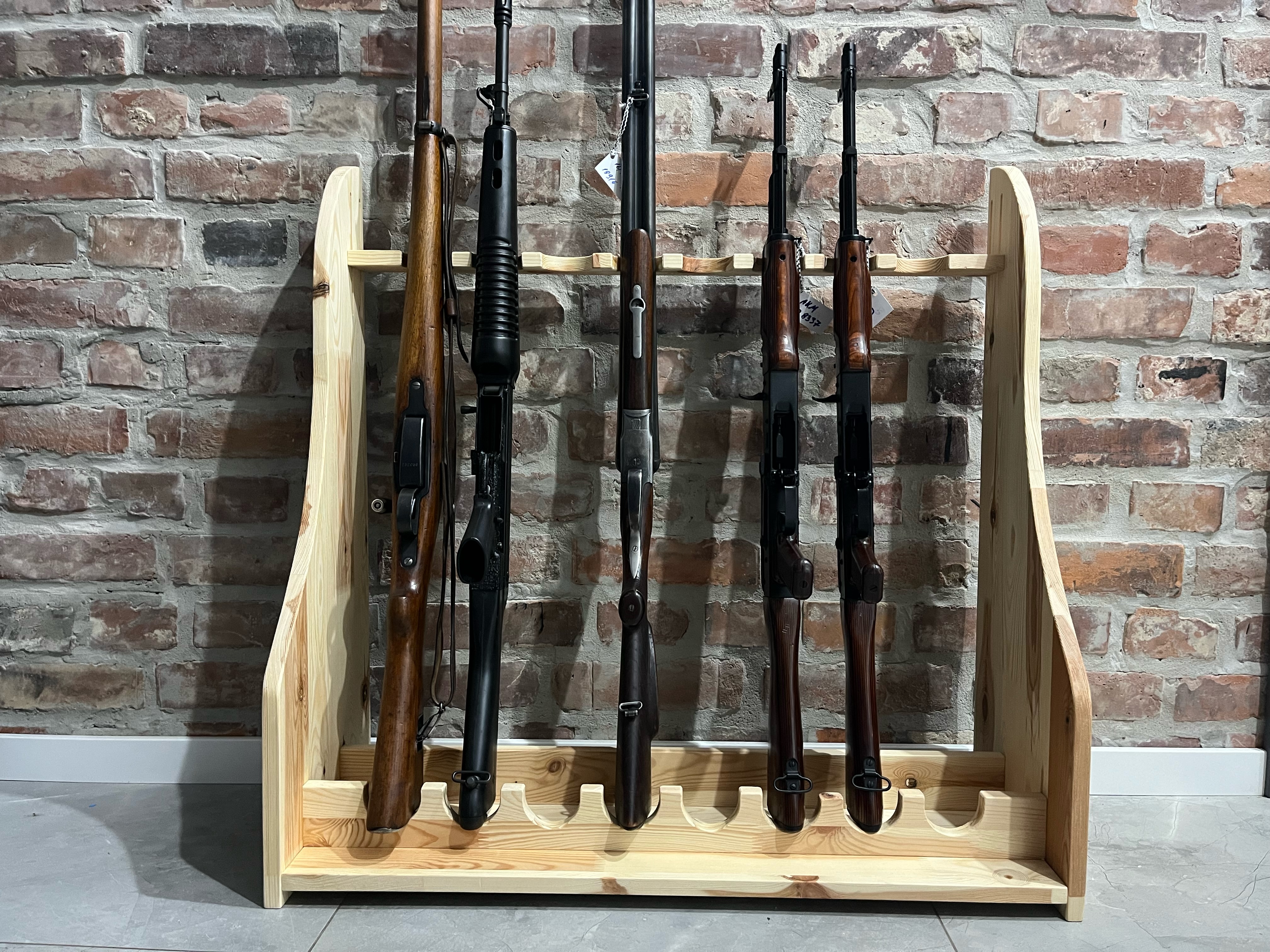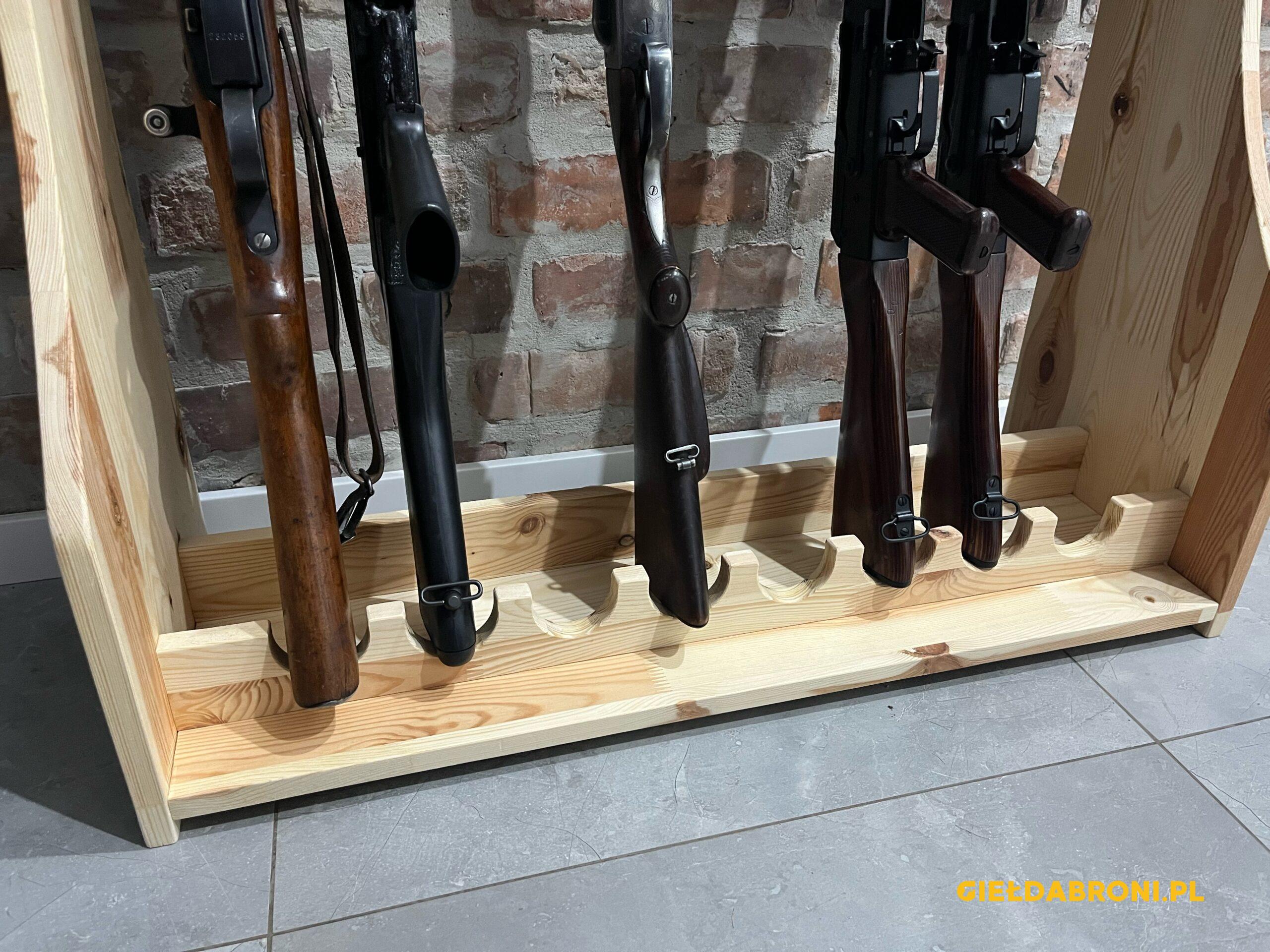 Stojaki na broń długą z drewna – sosna meblowa sękata, klejona. Stojaki w stanie surowym, na życzenie klienta możliwe pokryci woskiem do drewna w kolorze naturalnym (bezbarwnym). Produkt nie jest produkowany maszynowo, każdy stojak jest wykonywany ręcznie. Deski grubości 18mm z wyraźne widocznymi słojami i sękami. Górny uchwyt regulowany 14cm góra/dół. Szer. 67cm, głęb. 30cm, wys. 80cm. Stojaki na 6 szt. broni w cenie 430zł, stojak szer. 82cm na 8 szt. broni 460zł. Tel. kontaktowy 737 396 130. Dostępne stojaki na broń krótką od 230zł. Możliwe zamówienie poprzez stronę guns-ammo.pl