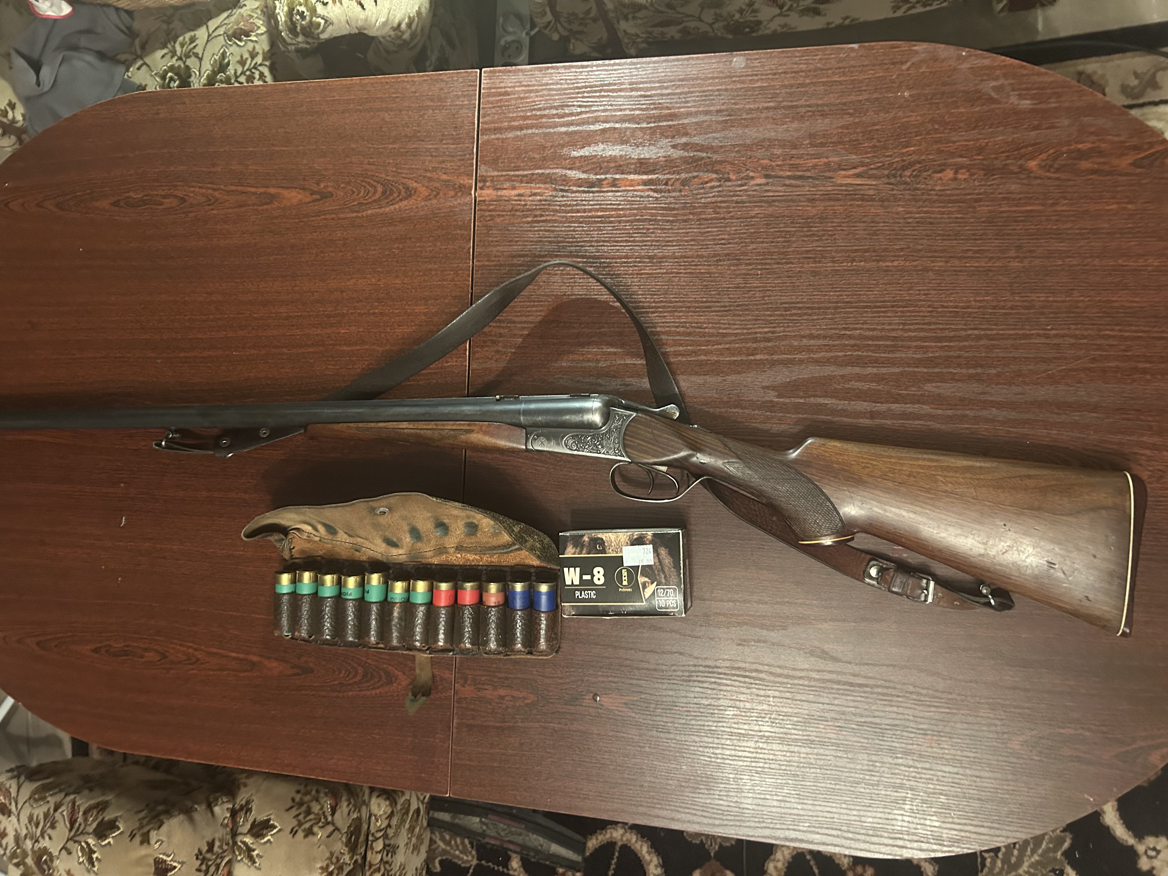 Dubeltówka Iż 58 kal. 12/70. Wszystko sprawne. Dołączam dwa skórzane futerały i paczkę amunicji z pasem.