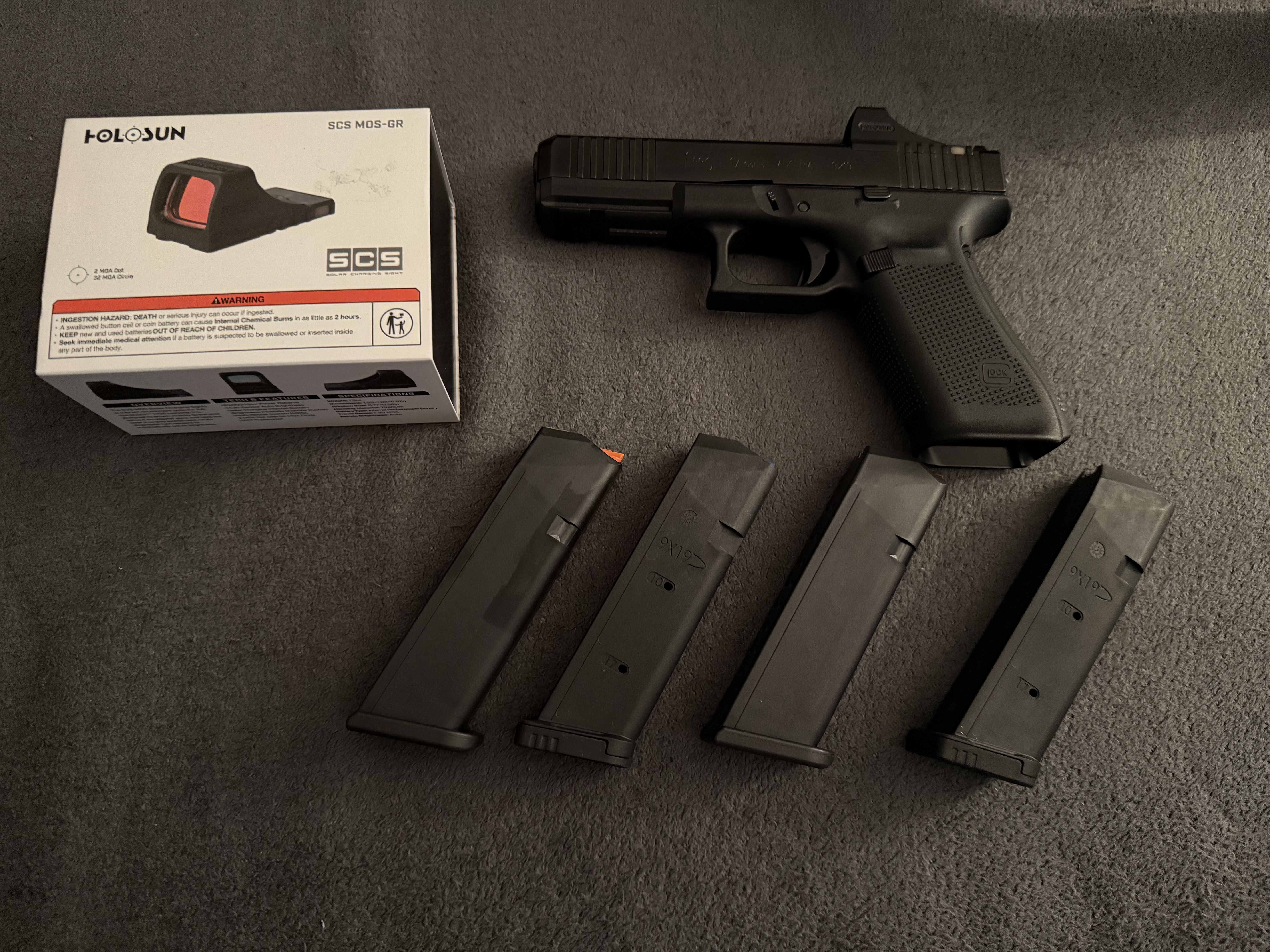 Sprzedam pistolet GLOCK 17 gen 5 MOS – oryginalnie przystosowany do montażu kolimatora. Pistolet kilka razy używany, stan jak nowy nowy. Zakupiony w sierpniu 2024 r. W komplecie wszystko co daje fabryka + 2 dodatkowe magazynki, razem 4 magazynki w komplecie. W komplecie z oryginalnym tygodniowym Kolimator HOLOSUN SCS Green Dot MOS na gwarancji, świetny kolator, montuje się bez płytek montażowych, idealnie pasuje i wieszakiem Kabura GHOST THE ONE EVO praktycznie nie używanym. Cena z pistoletu+zamontowany kolimator+wieszak to 6100 zł. Sprzedaje, nie będę go używał. Zapraszam do kontaktu. Jestem z Nowego Sączą, proszę dzwonić tel. 600 393 270