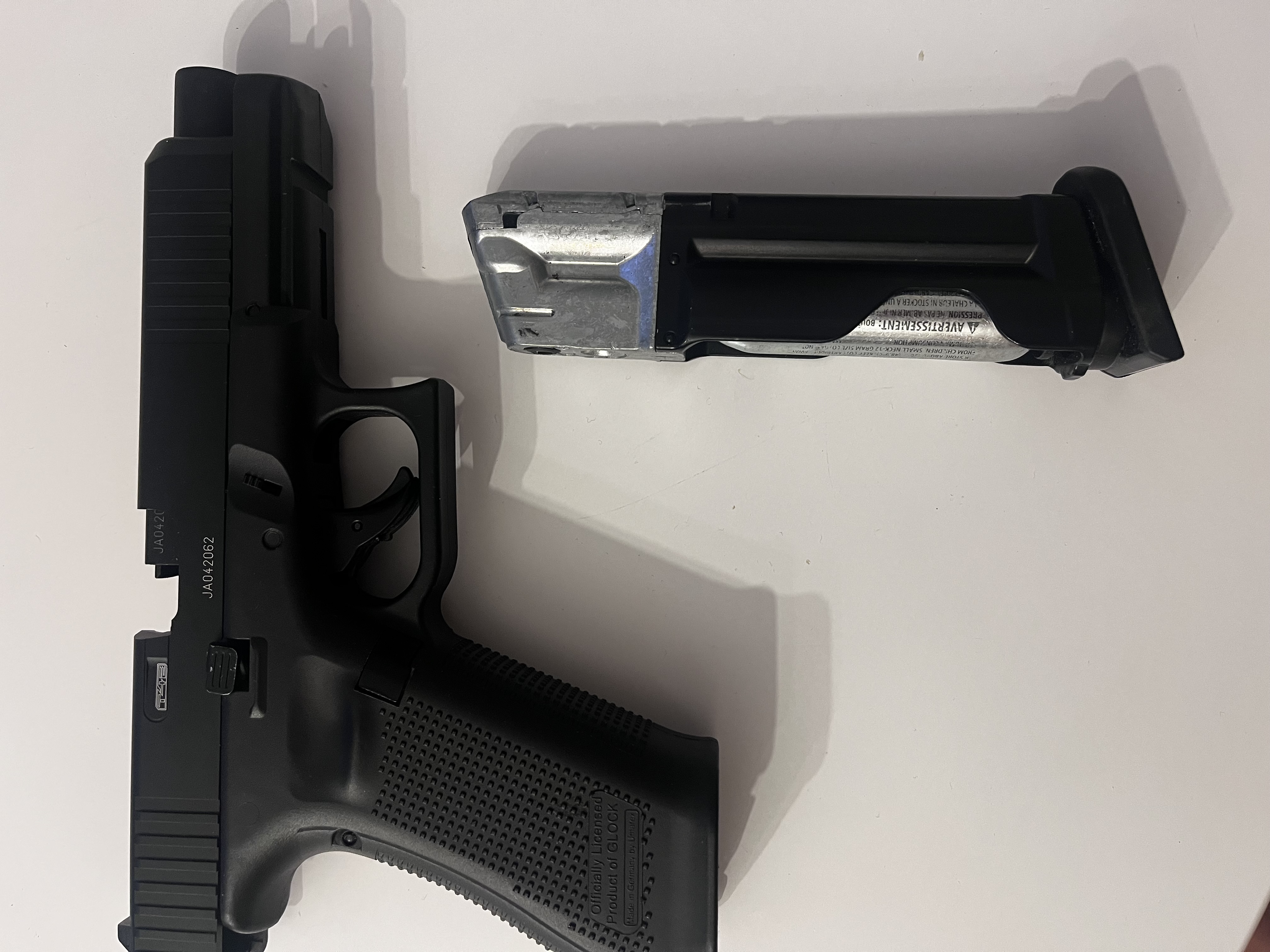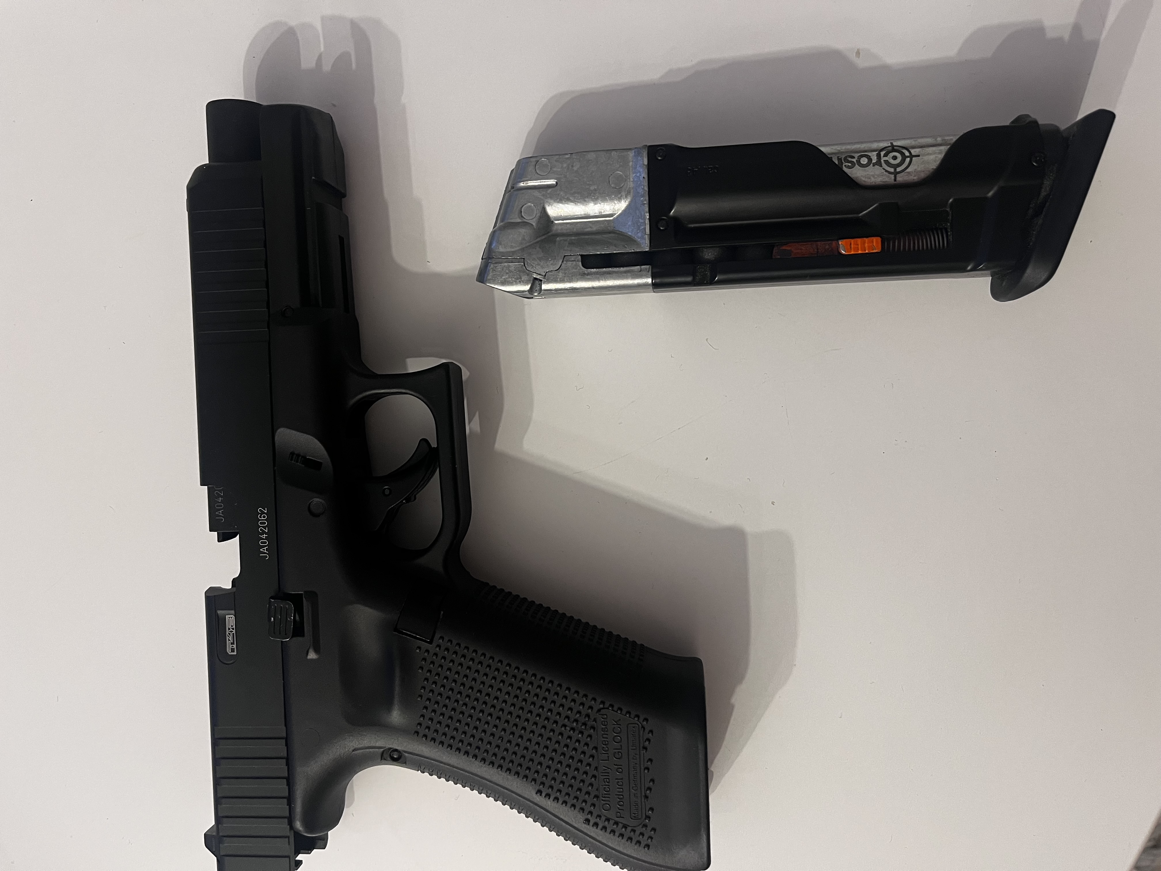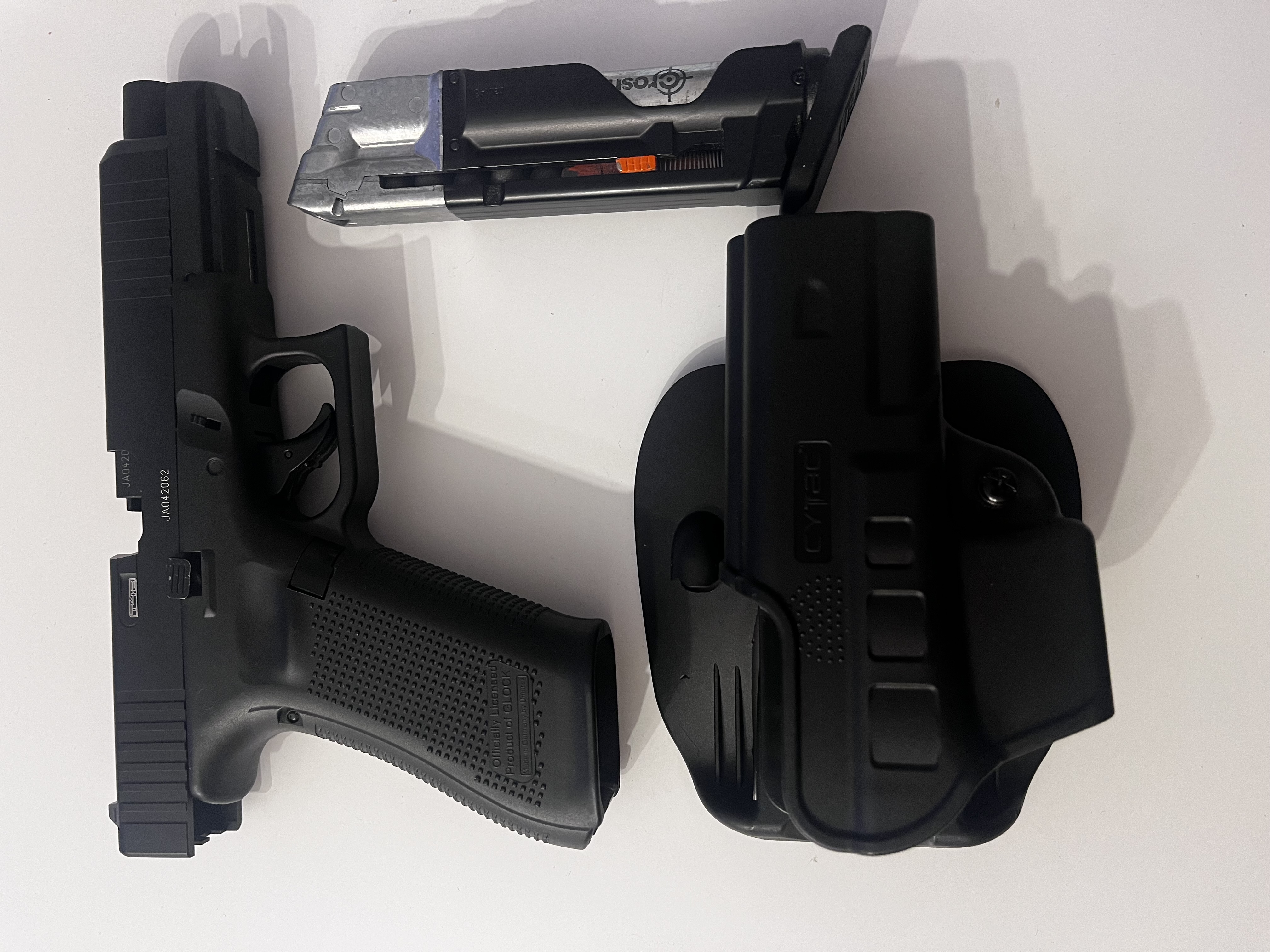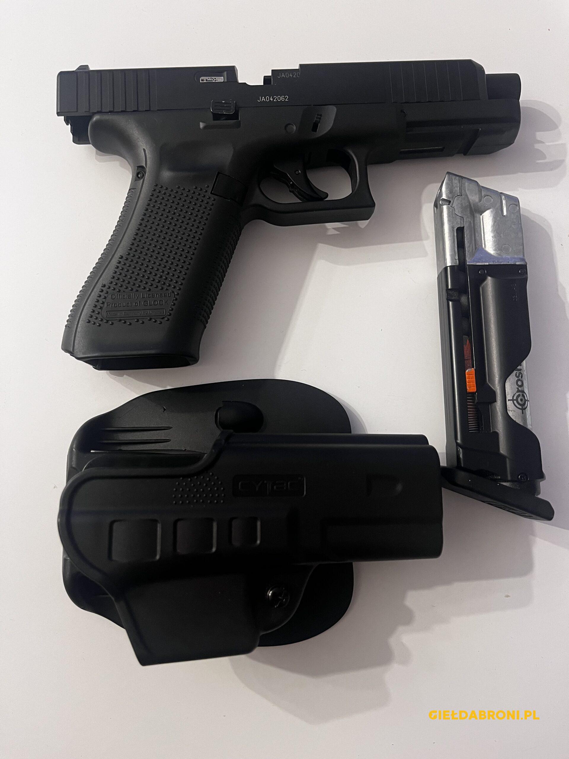 Witam przedmiotem aukcji jest pistolet Co2 glock 17 z systemem blow back firmy umarex, zakupiony został w październiku, wystrzelone 200 kul gumowych o kalibrze 9mm do zestawu dorzucam walizkę i kaburę.