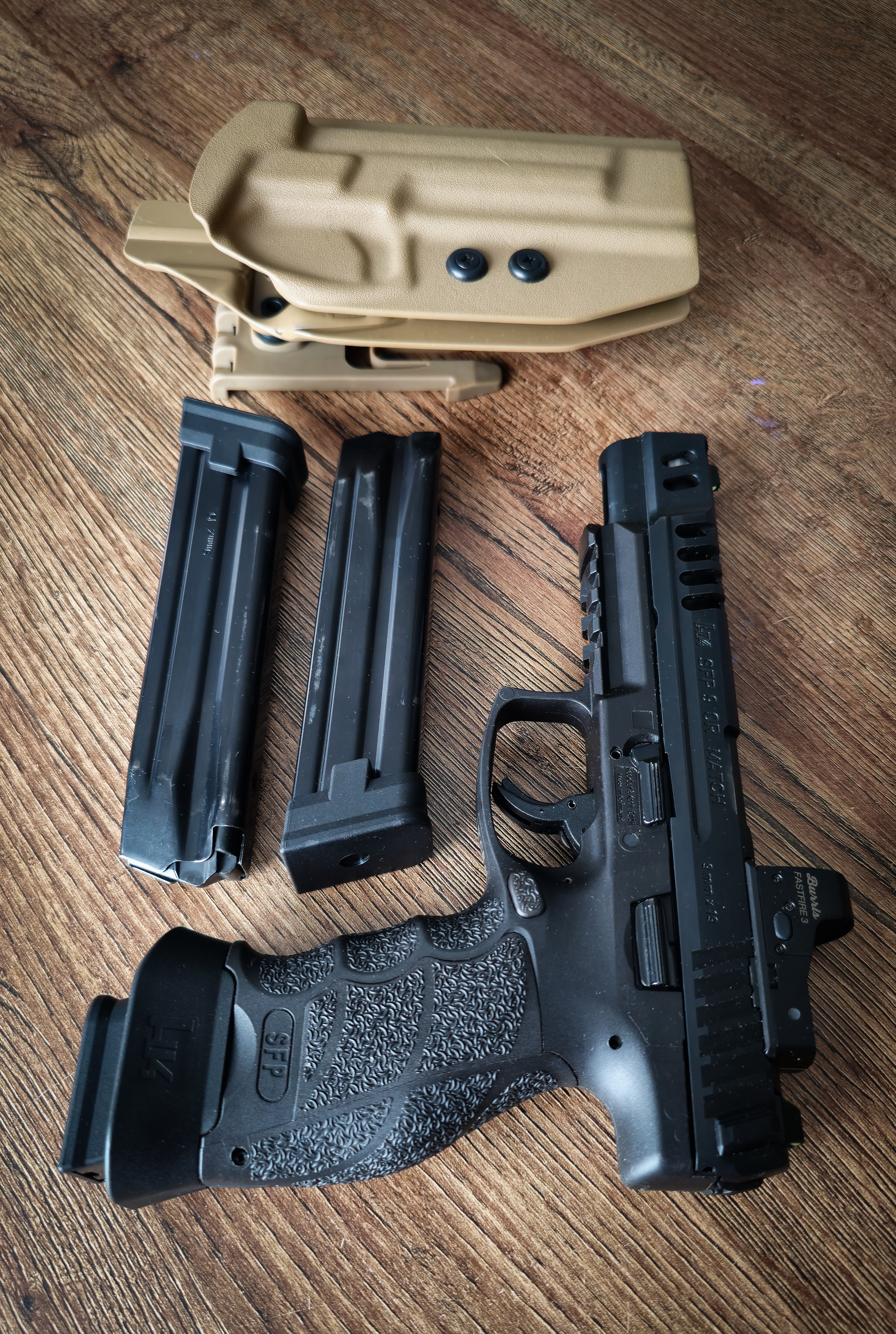 Na sprzedaż pistolet HK SFP9 OR Match wraz z kolimatorem Burris Fastfire 3. Pistolet z przebiegiem około 1500 strzałów. Strzelany bardzo rzadko, weekendowo. W zestawie wypiekana kabura od GR Kydex. Całość w bardzo dobrym stanie. Więcej szczegółów dla zainteresowanych.