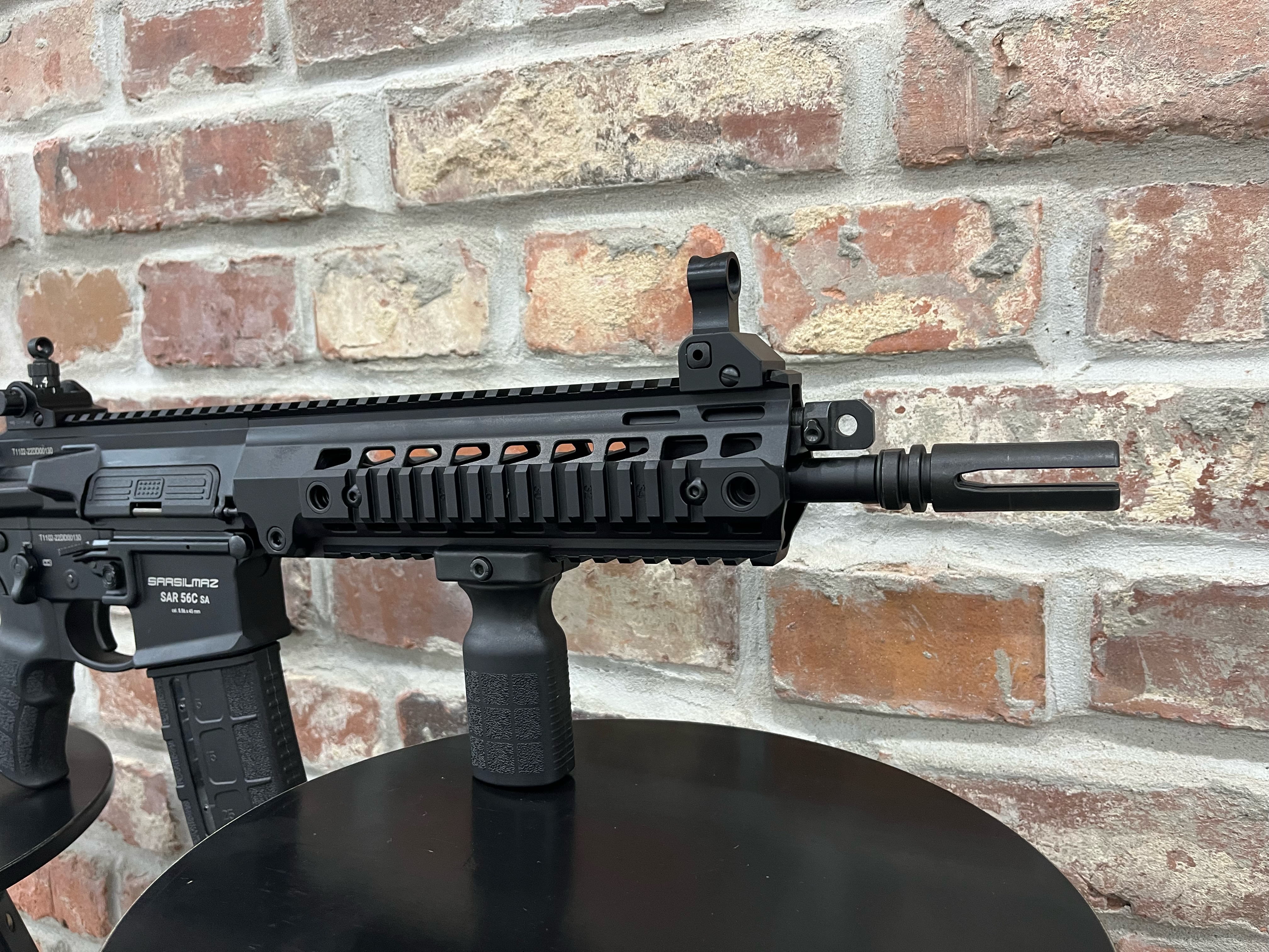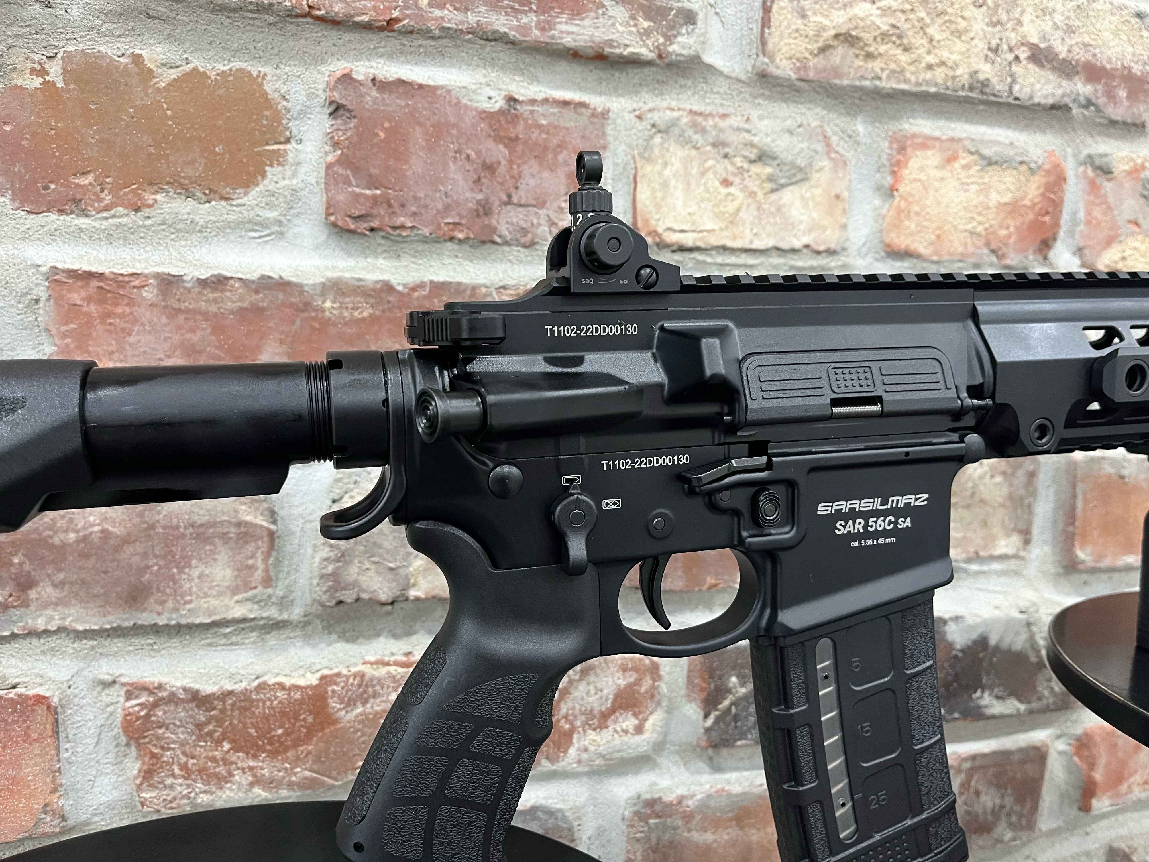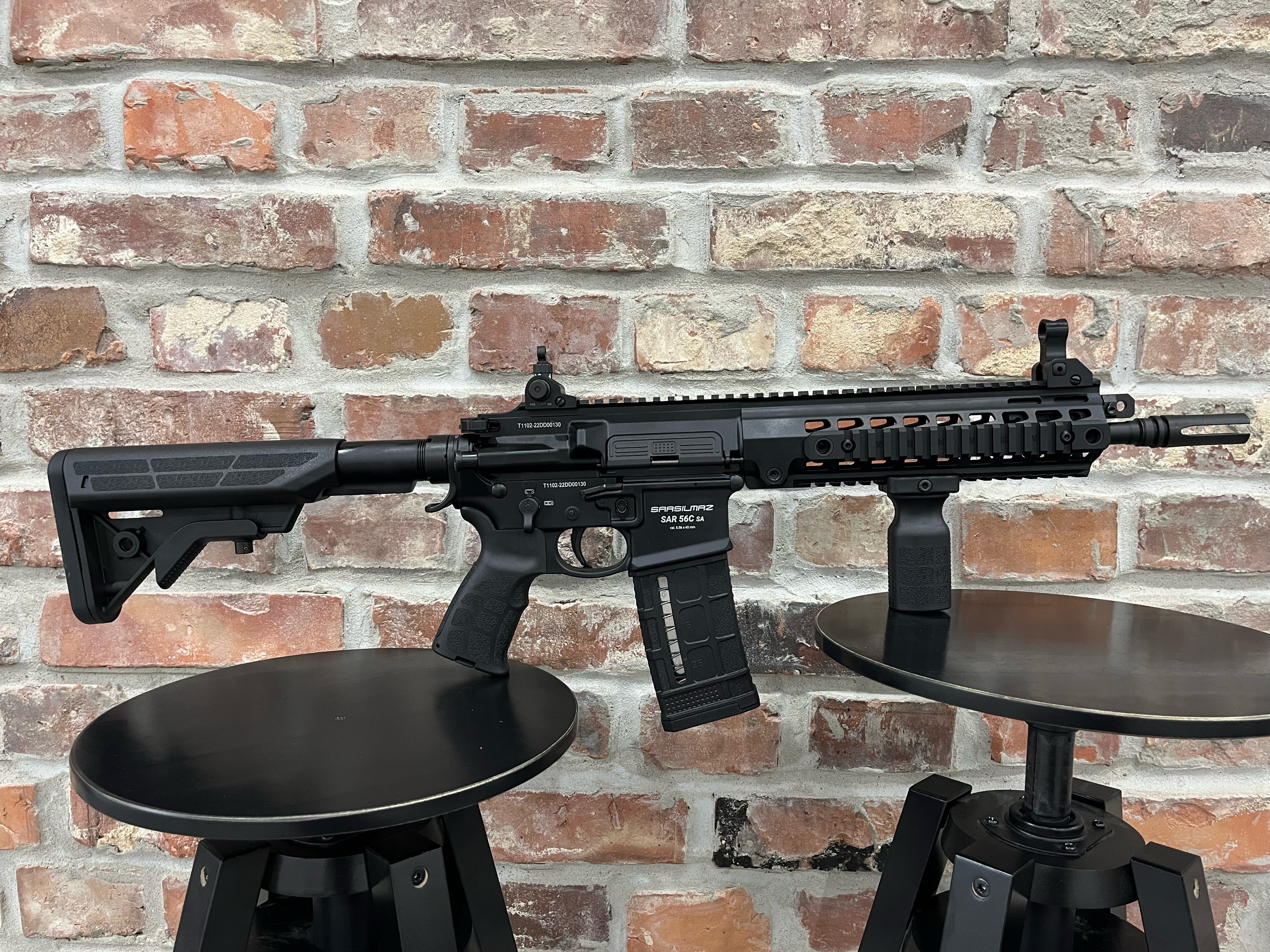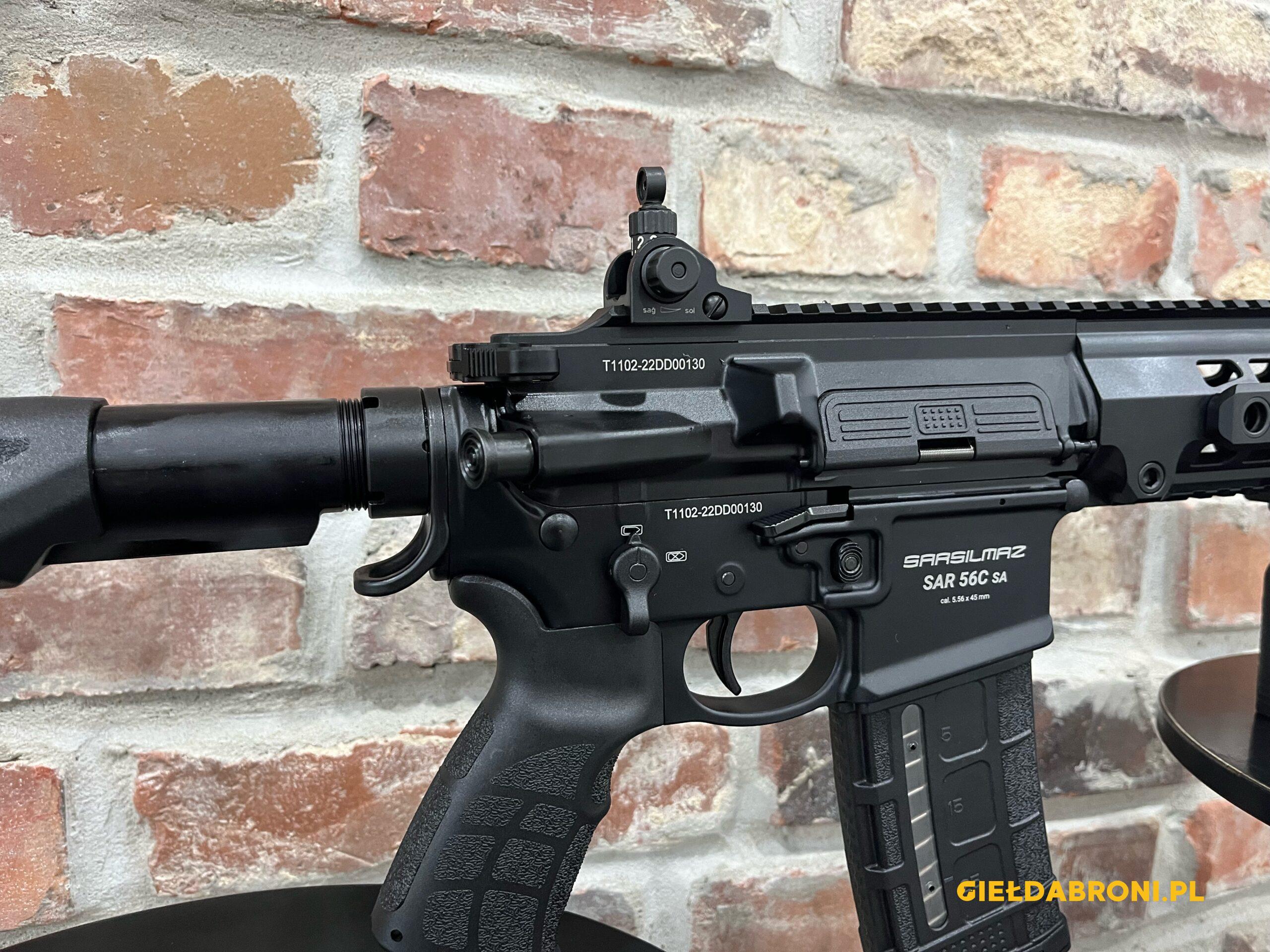 Sarsilmaz SAR 56 to tłokowy AR-15 w niezwykle bogatym wyposażeniu. Karabin nowy w kal. 5,56 x 45 mm (.223 rem) lufa 11″. Dostępny również 14,5″. W zestawie: skrzynia, 5 magazynków 25 nab., pas nośny, nakładki na RIS, zestaw do czyszczenia i chwyt przedni. Produkt koncesjonowany, dostępny za okazaniem odpowiednich dokumentów. Tel. kontaktowy 737 396 130 lub przez guns-ammo.pl