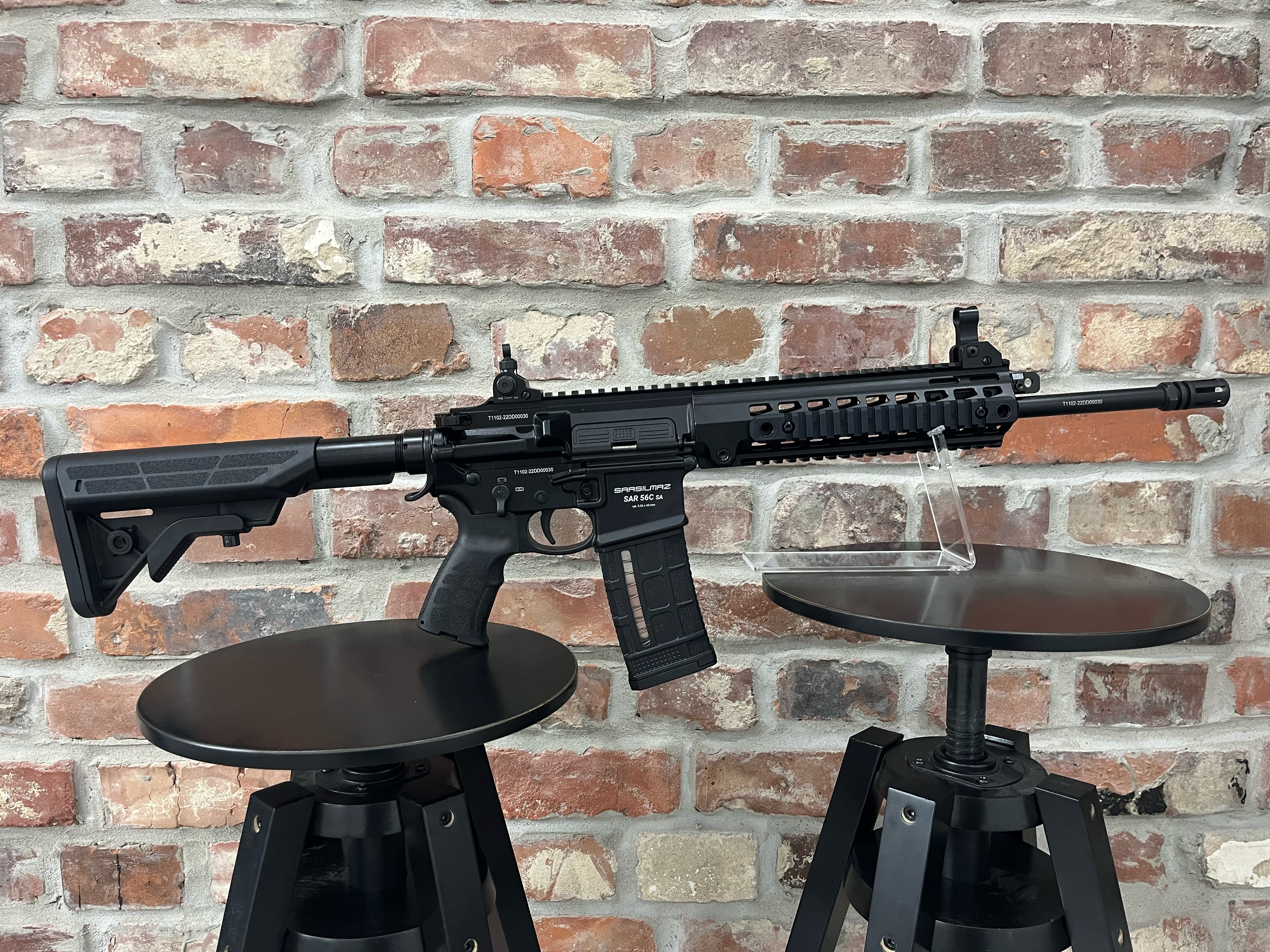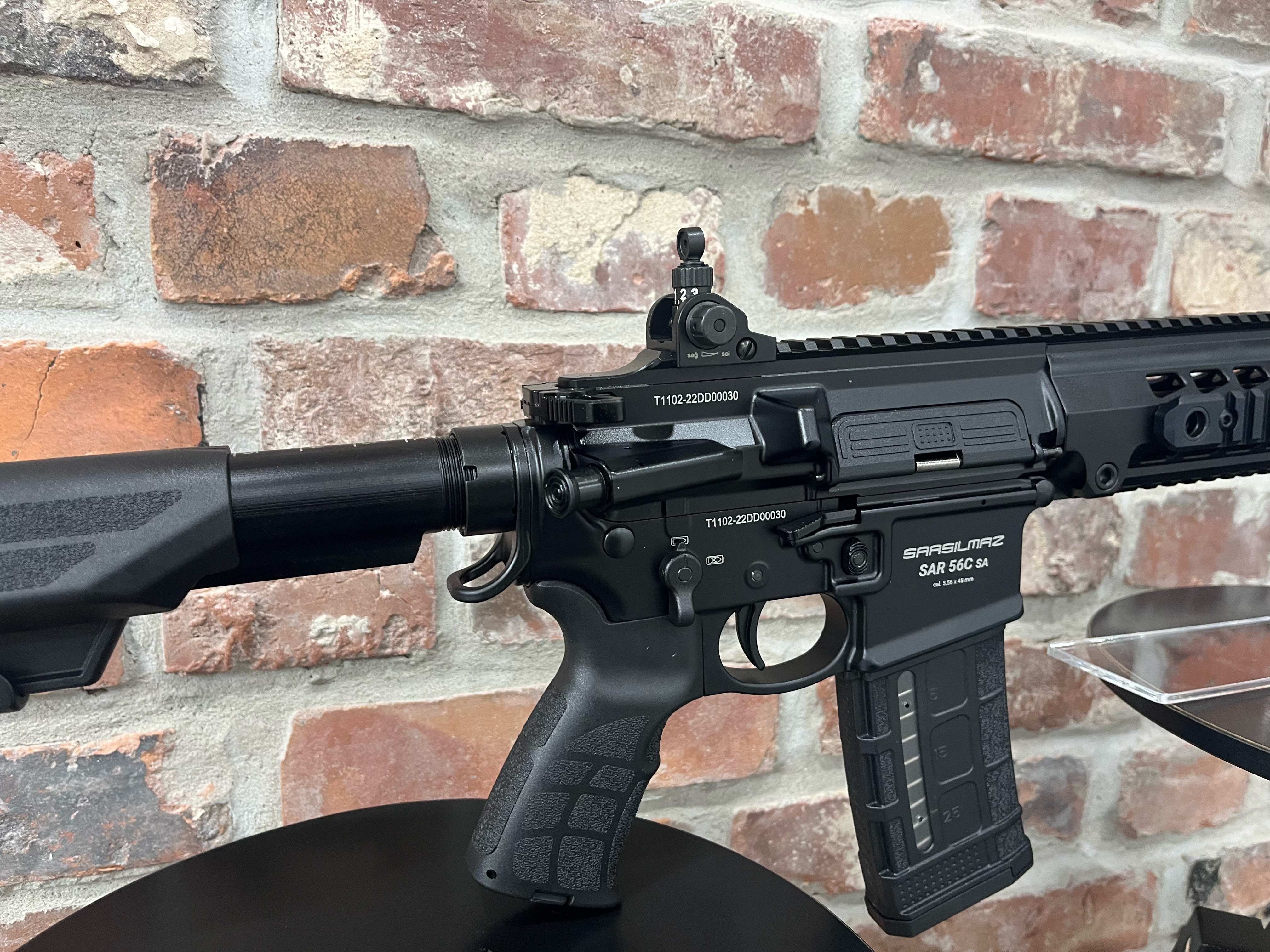 Sarsilmaz SAR 56 to tłokowy AR-15 w niezwykle bogatym wyposażeniu. Karabin nowy w kal. 5,56 x 45 mm (.223 rem) lufa 14,5″. Dostępny również 11″. W zestawie: skrzynia, 5 magazynków 25 nab., pas nośny, nakładki na RIS, zestaw do czyszczenia i chwyt przedni. Produkt koncesjonowany, dostępny za okazaniem odpowiednich dokumentów. Tel. kontaktowy 737 396 130 lub przez guns-ammo.pl
