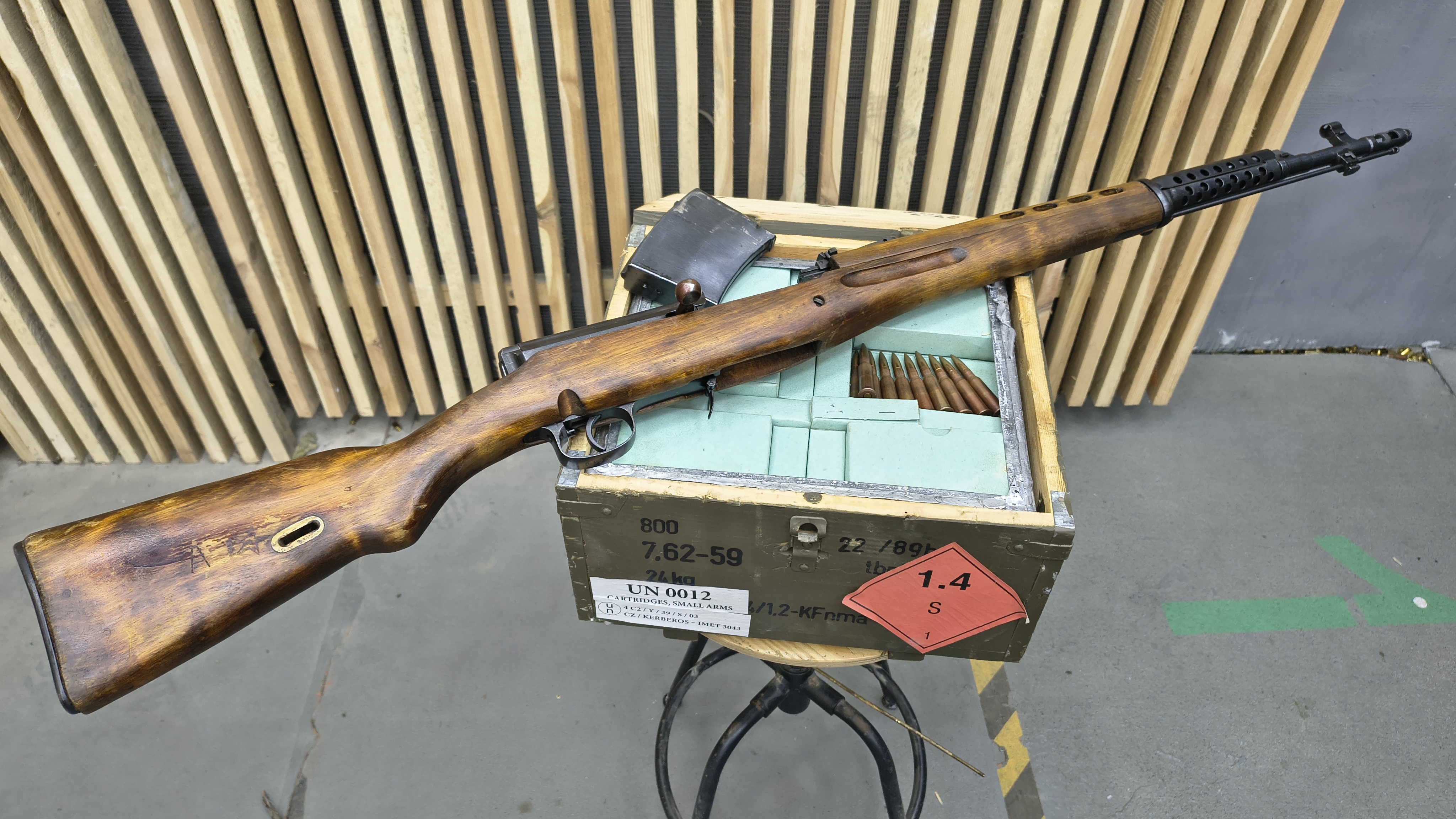 Oferta świąteczna obejmuje 800 szt. amunicji w zestawie (-2500zł). Broń używana, sprawna w 100%. Broń w stanie bardzo dobrym. Osada w oryginalnym stanie, nienaprawiana i niemalowana. Oksyda oryginalna. Produkcja Iżewsk, 1944 rok, zgodna numerycznie, brak pęknięć lub innych ubytków na osadzie. Broń przerobiona na semi-auto. Karabin SWT-40 to radziecki karabin samopowtarzalny skonstruowany na przełomie lat 30 i 40 XX w. przez Fiodora Tokariewa. Stan lufy jest bardzo dobry. Broń po przeglądzie rusznikarskim, przestrzeliwana na strzelnicy. Dane techniczne broni: – kaliber: 7.62x54mmR – rok produkcji: 1944r. – długość całkowita: 1226mm – długość lufy: 635mm – waga: 3900g