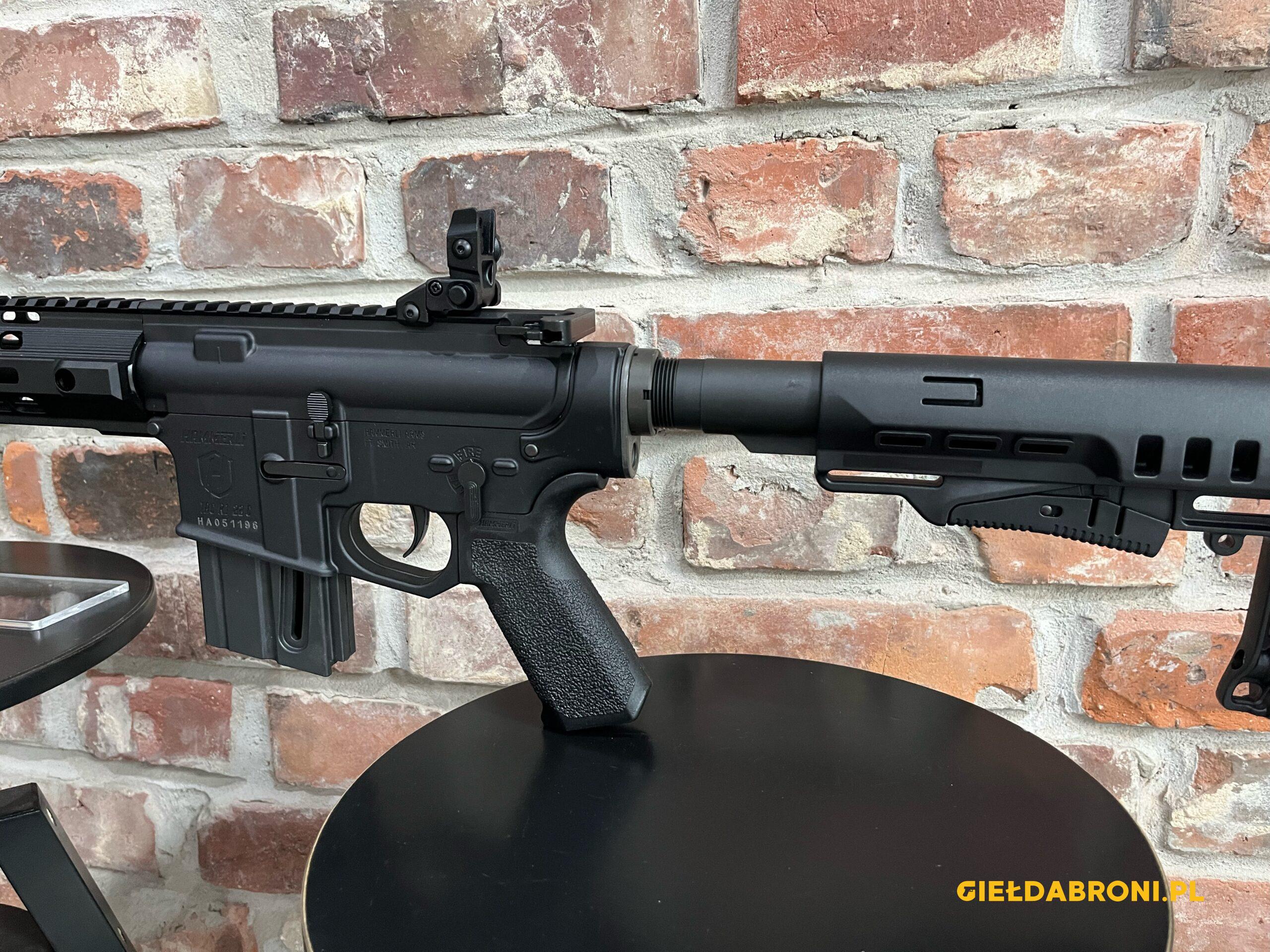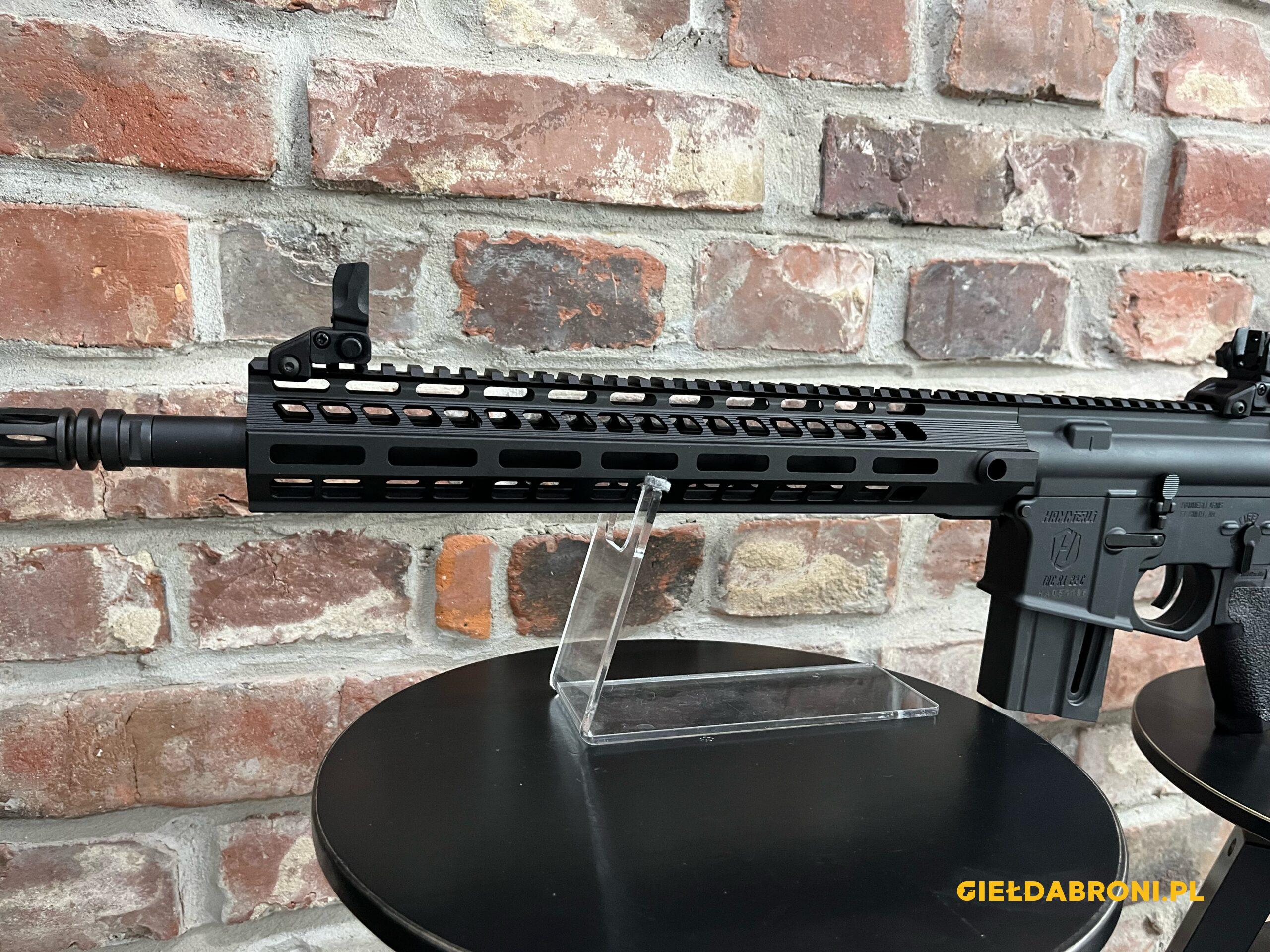 Hämmerli TAC R1 22 kal. .22 LR to karabinek sportowy bocznego zapłonu, wyposażony w pływającą lufę o długości 16″, regulowany system gazowy, aluminiowe łoże M-Lok oraz polimerowe przyrządy celownicze typu flip-up, w komplecie magazynek. Karabin nowy. Produkt koncesjonowany, dostępny za okazaniem odpowiednich dokumentów. Tel. kontaktowy 737 396 130 lub przez guns-ammo.pl