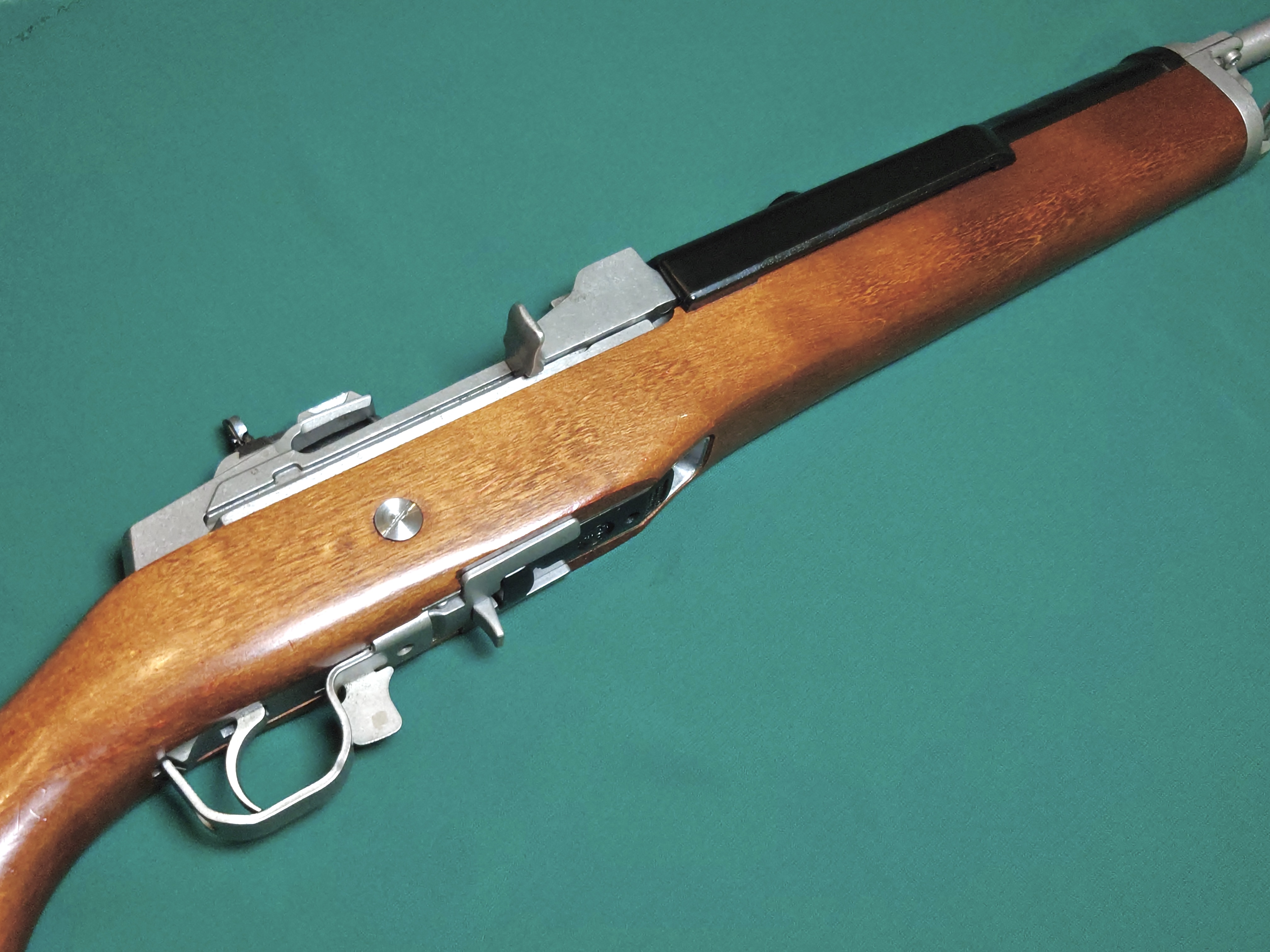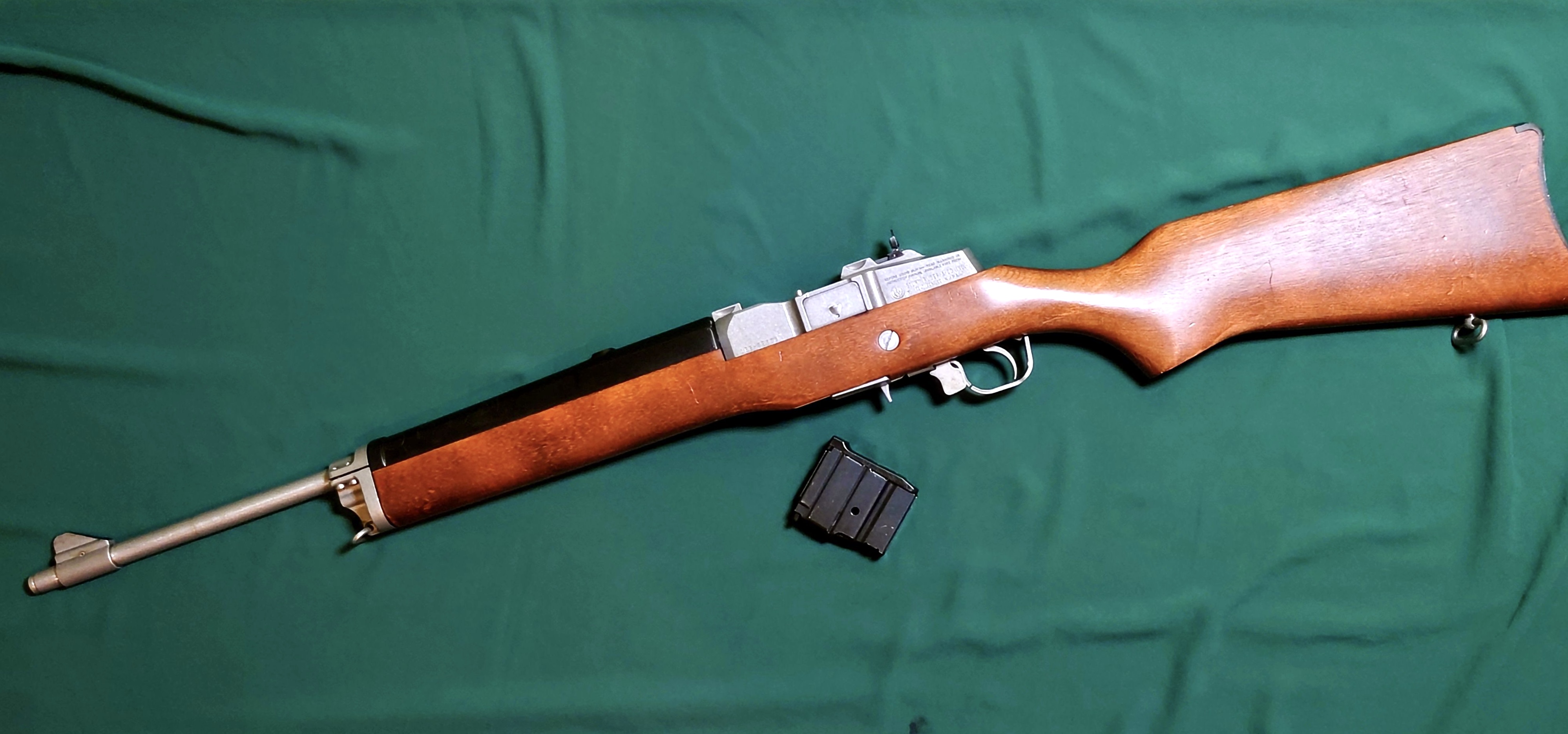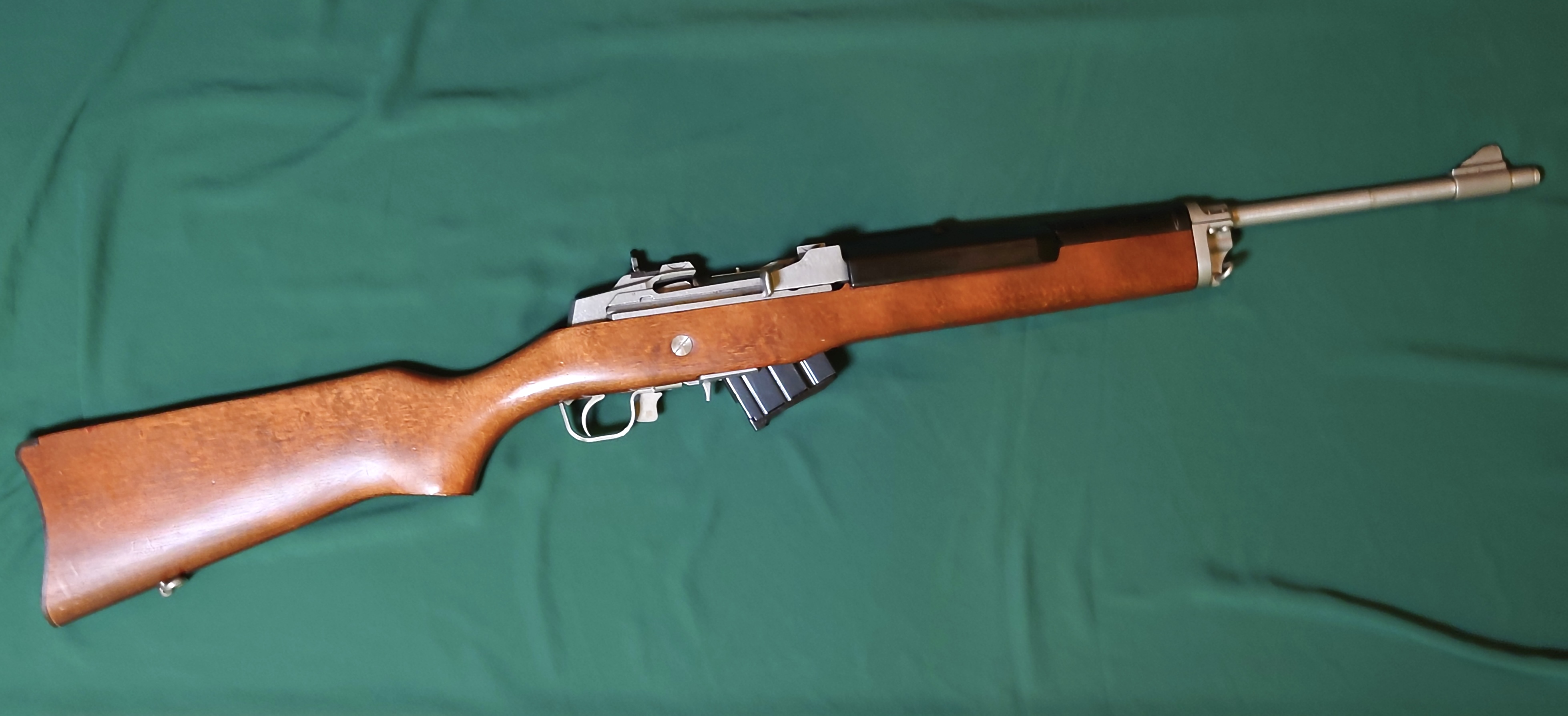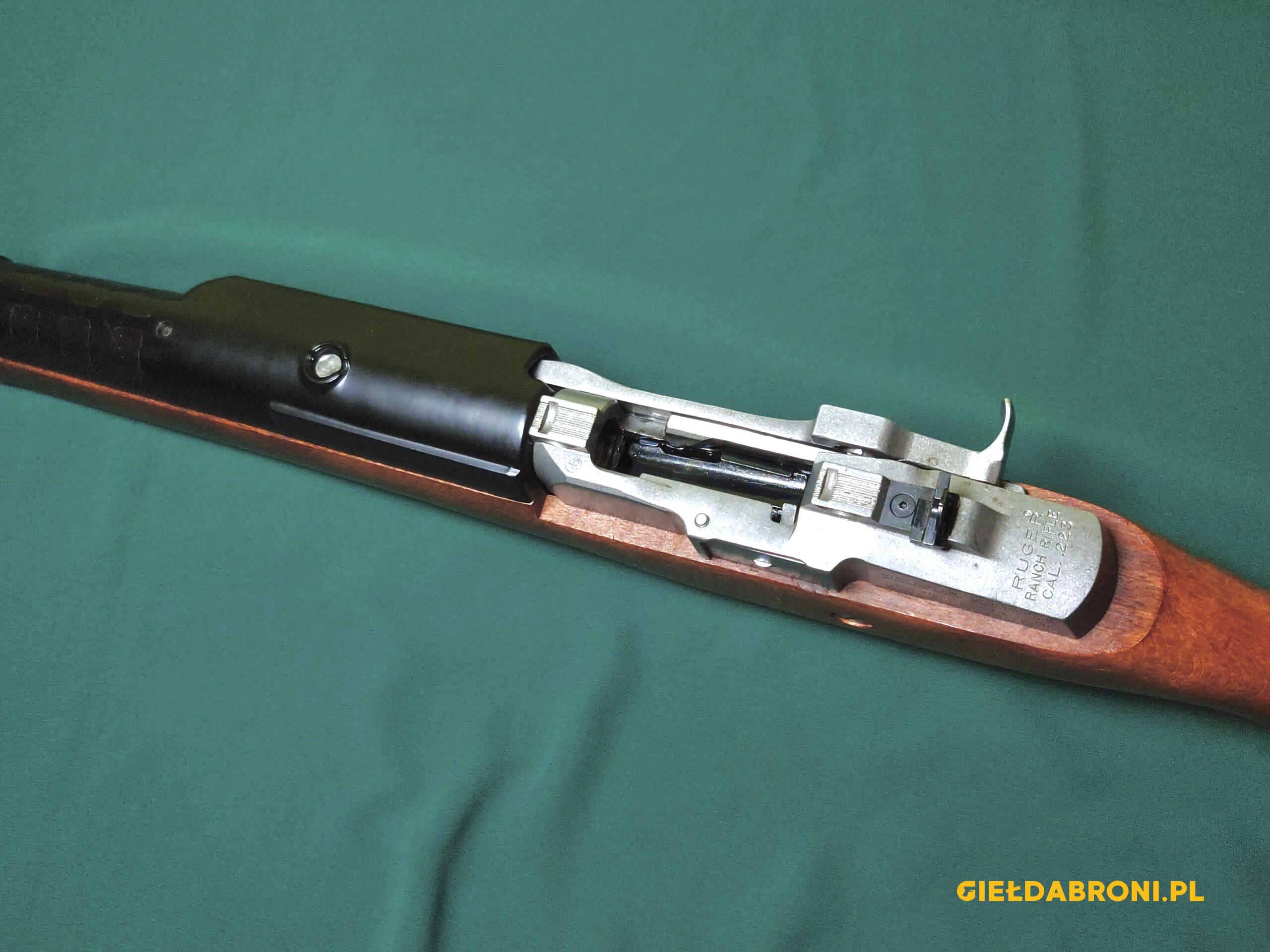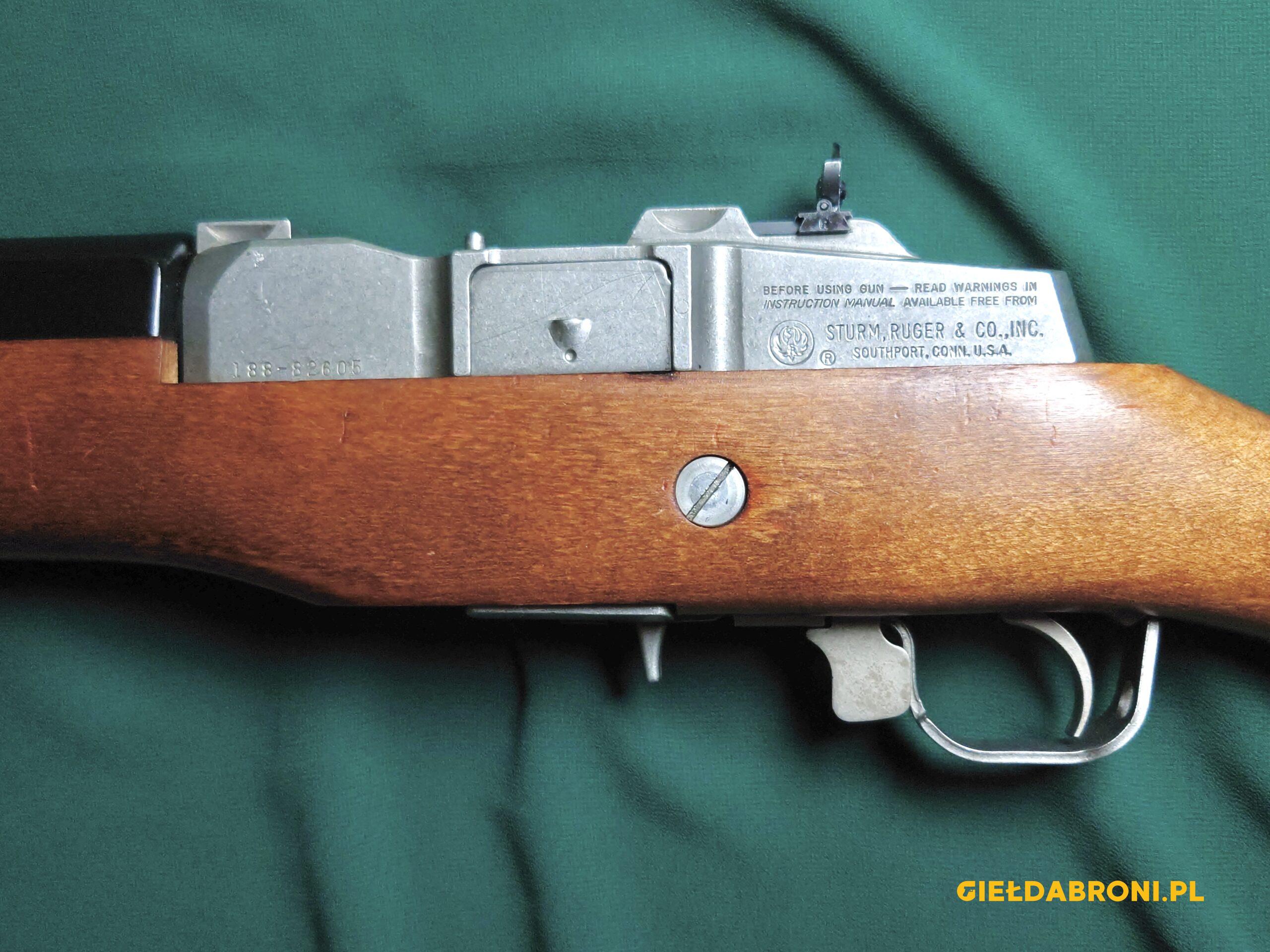 Ruger Mini 14 z drewnianym łożem, lufa kuta na zimno, przewód lufy idealny. Broń regularnie przestrzeliwana, magazynek oryginalny, na 5 nabojów.