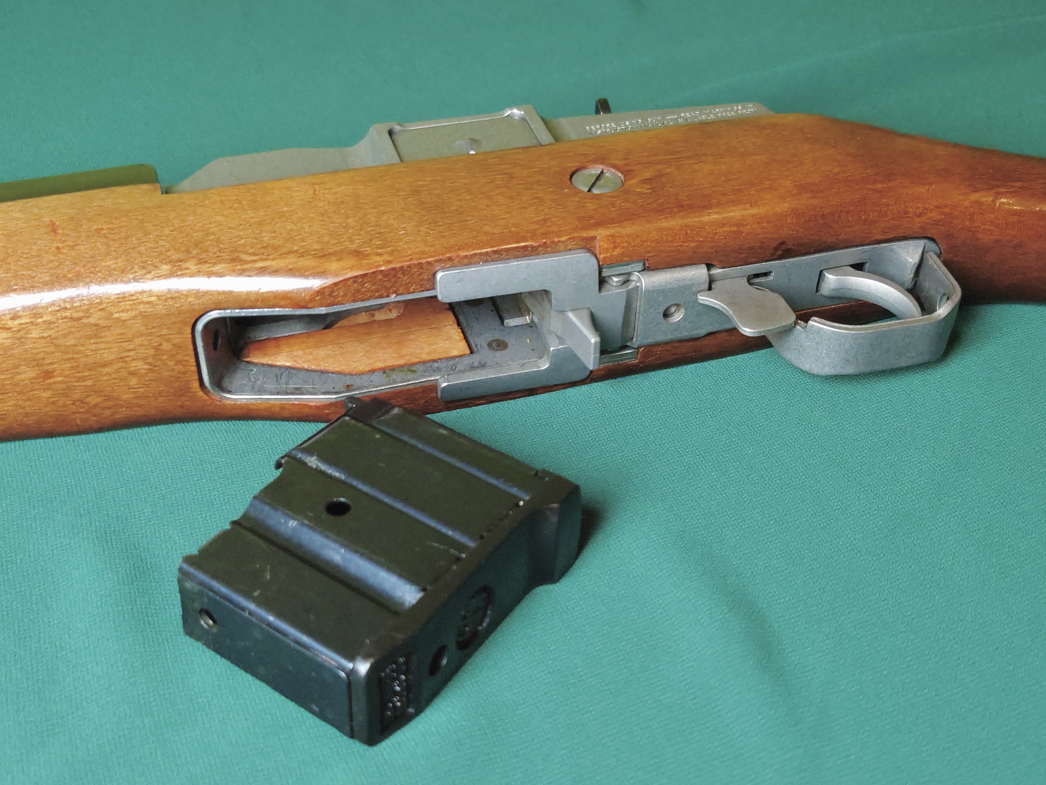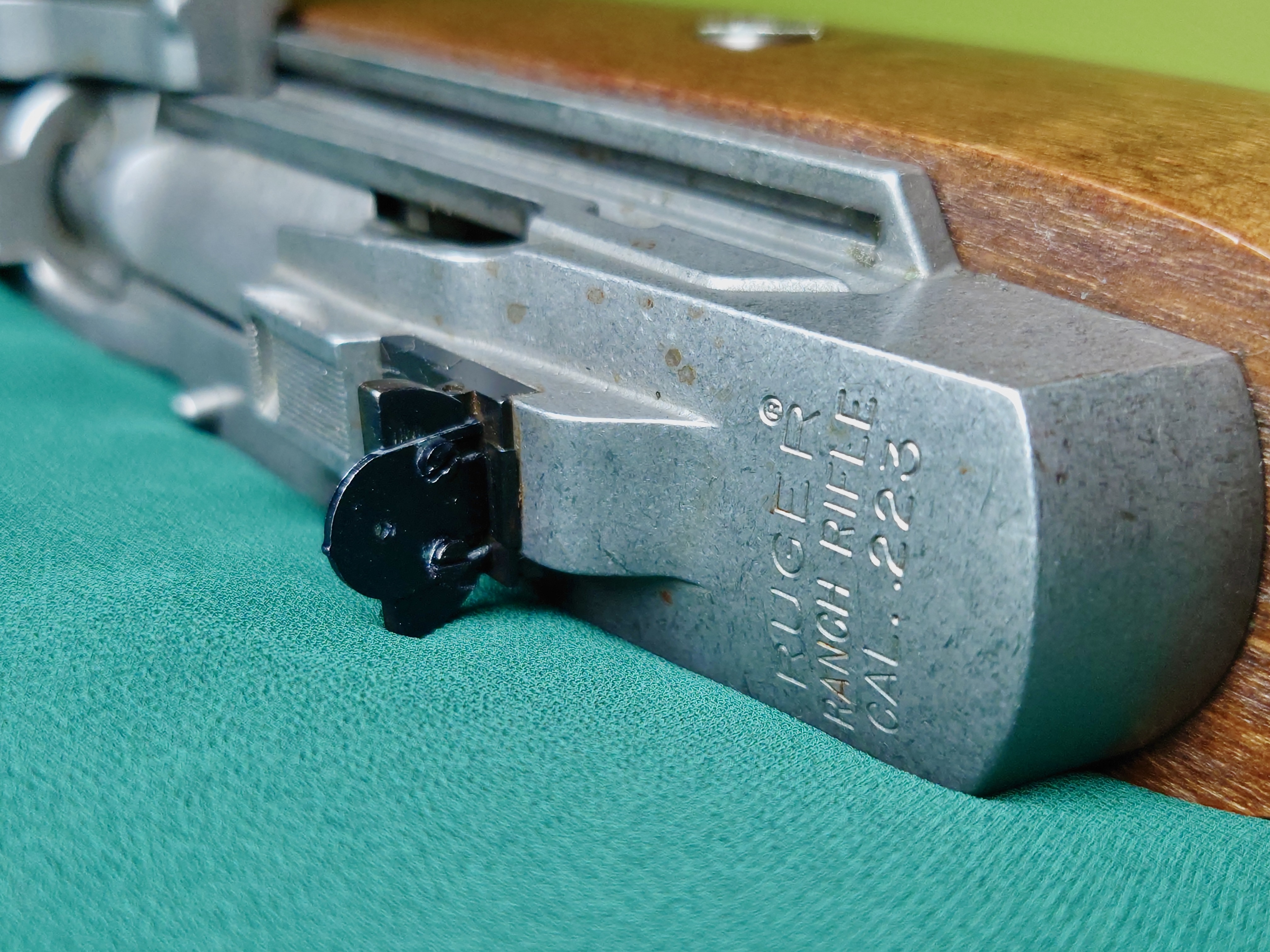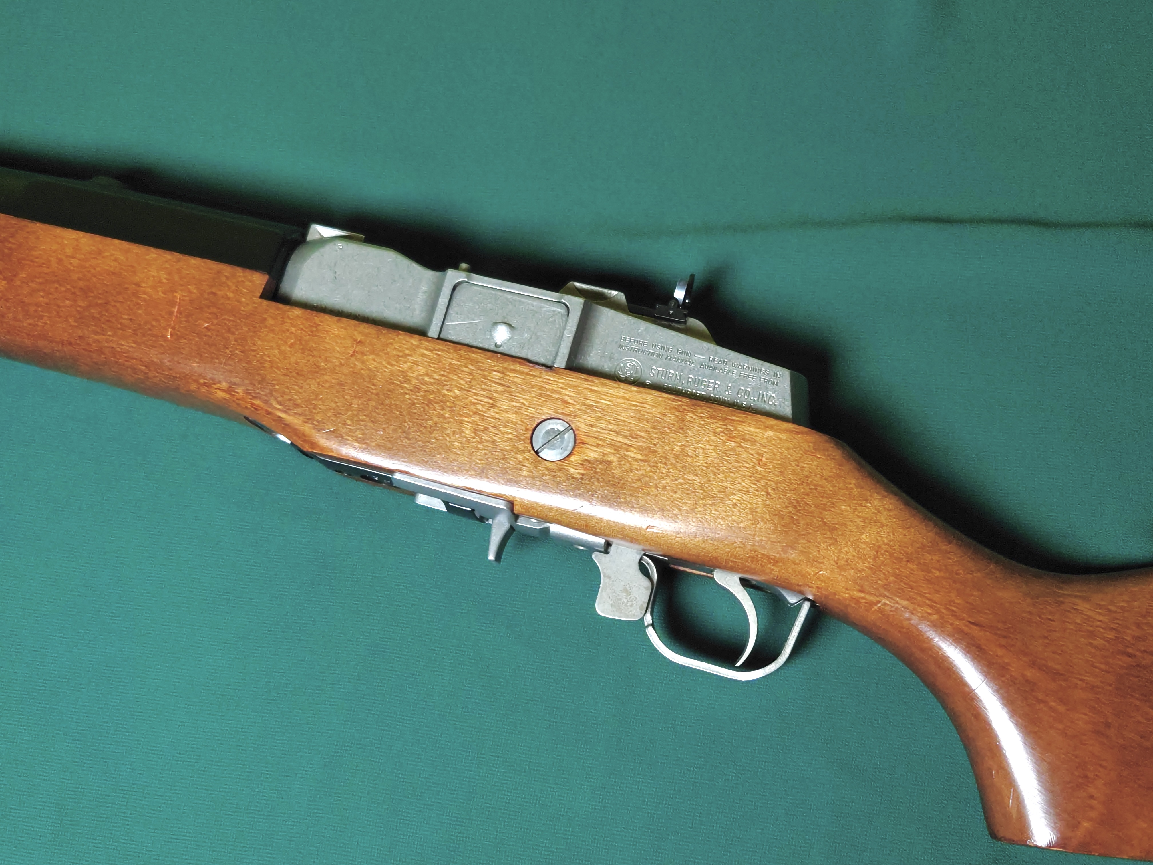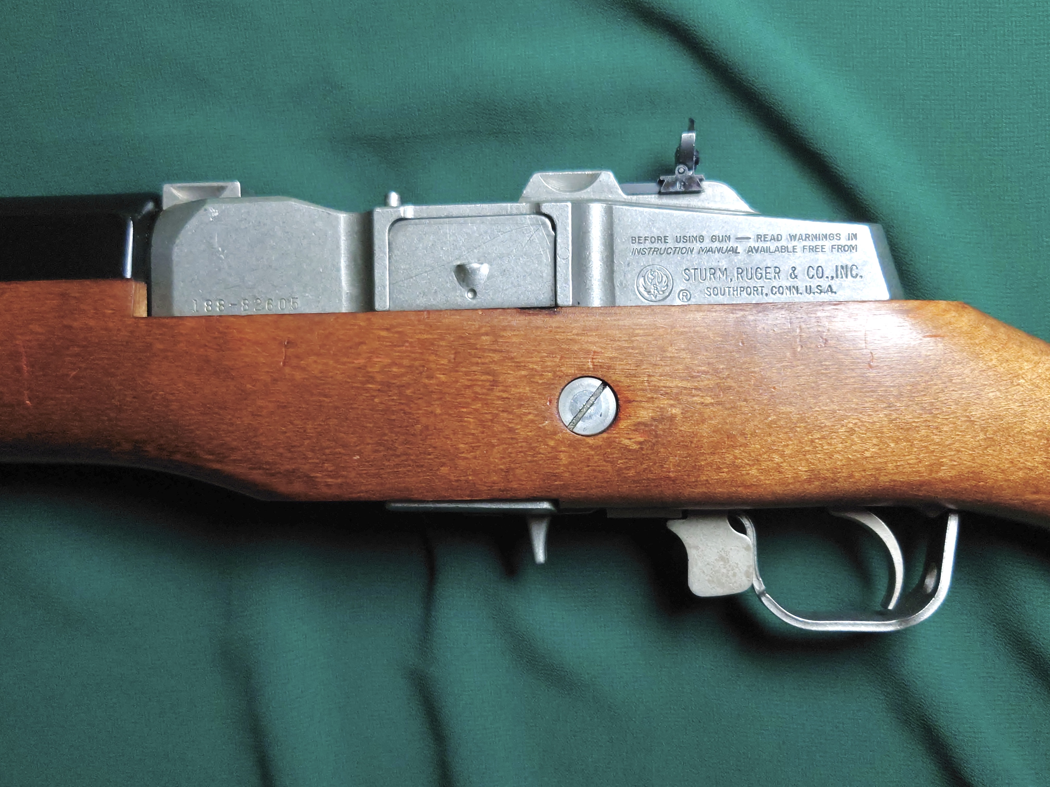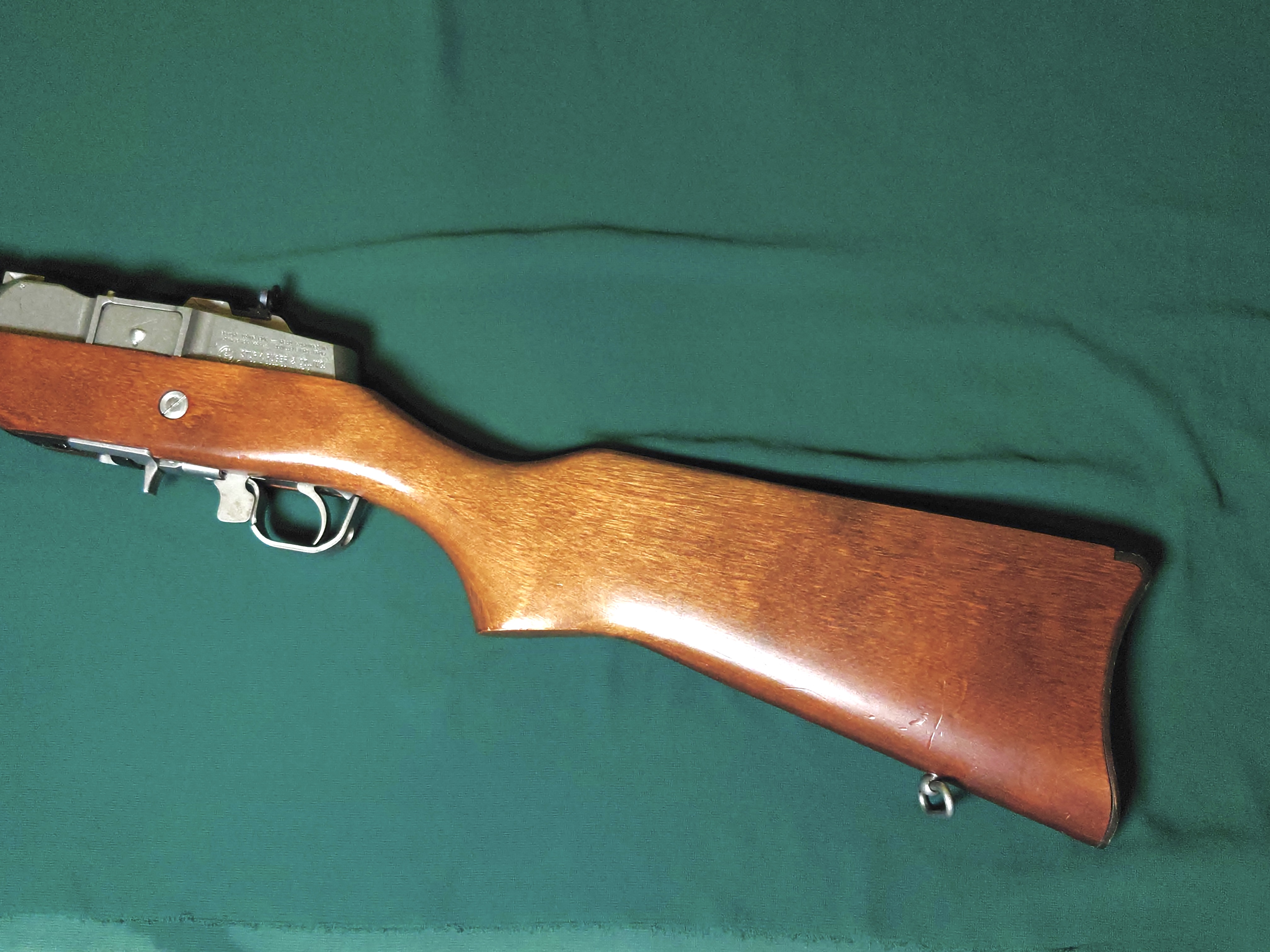 Ruger Mini 14 z drewnianym łożem, lufa kuta na zimno, przewód lufy idealny. Broń regularnie przestrzeliwana, magazynek oryginalny, na 5 nabojów.