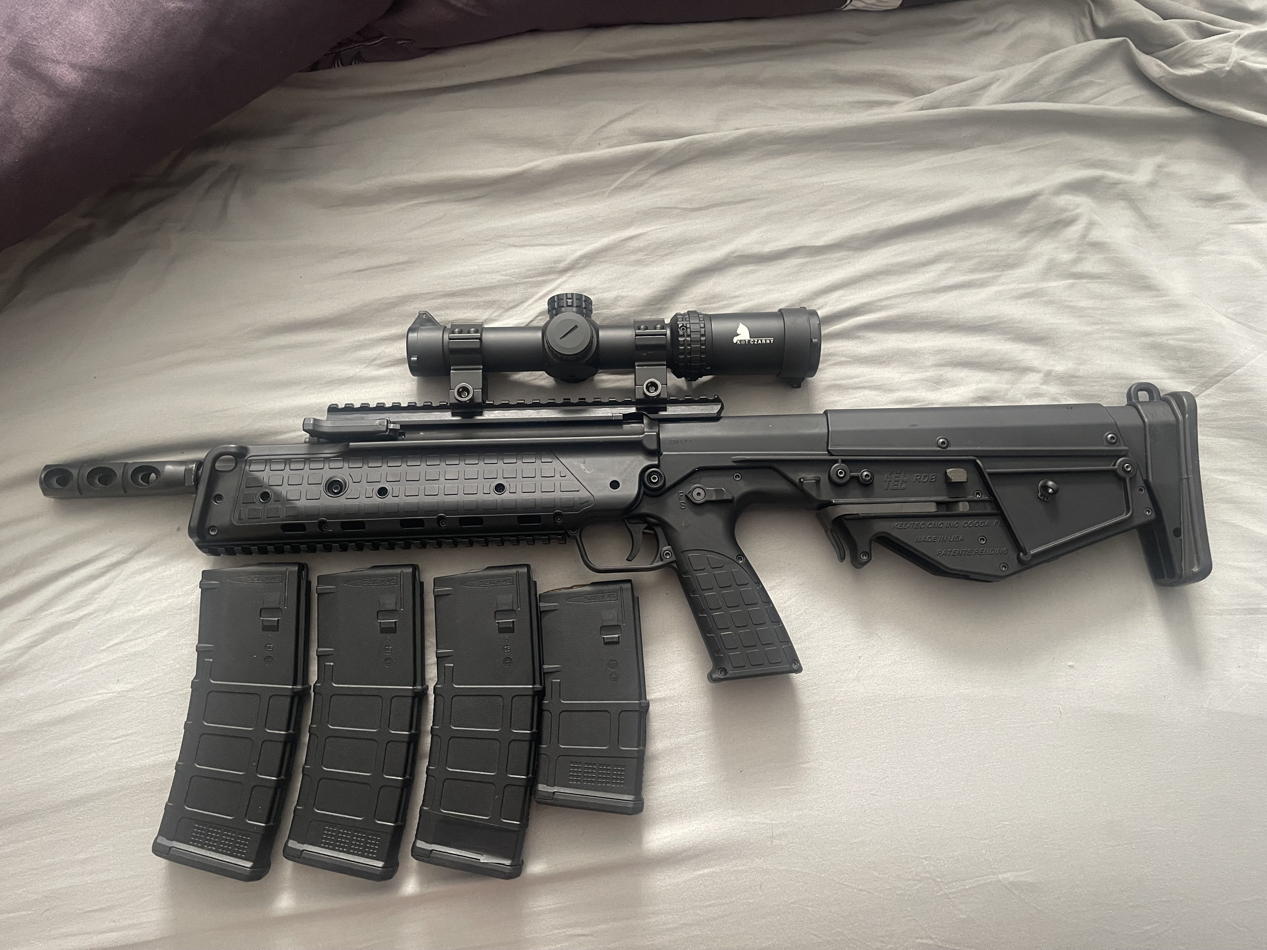 Sprzedam kel teca z symboliczny przebiegiem ok 300 pestek. Karabinek w bardzo dobrym stanie bo ciężko żeby był w innym. W zestawie większe urządzenie wylotowe, magazynki i biegówka z montażem. Urządzenie wylotowe robi robotę dla strzelca ale mocno dmucha strzelający obok, a luneta może być, podstawową funkcję spełnia. Przesiadam się na beryla bo więcej na nim pracuję a tego używam dla fanu. Mogę się zamienić na beryl 5,56 w podobnym stanie.