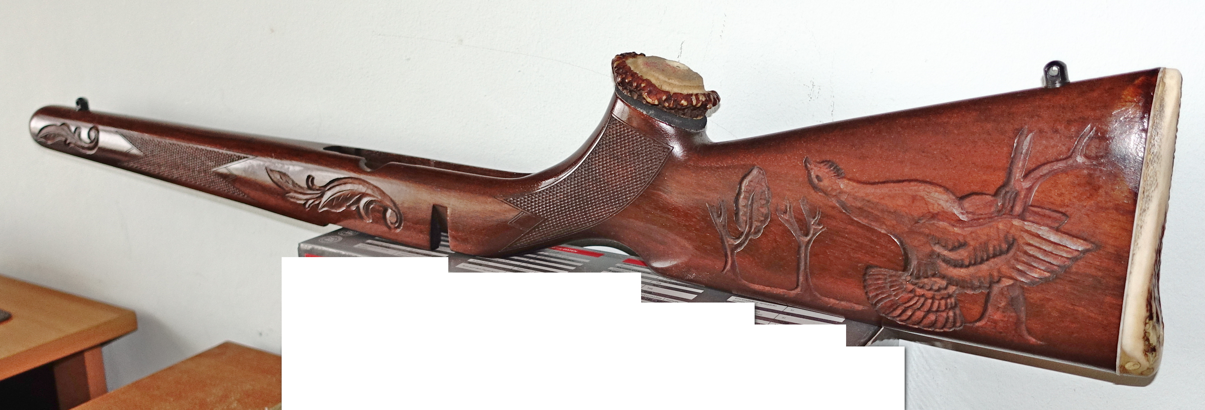 Osada rzeźbiona w motywy łowieckie w bardzo ładnym stanie. Bez uszkodzeń. Posiada jakieś drobne ślady używania.