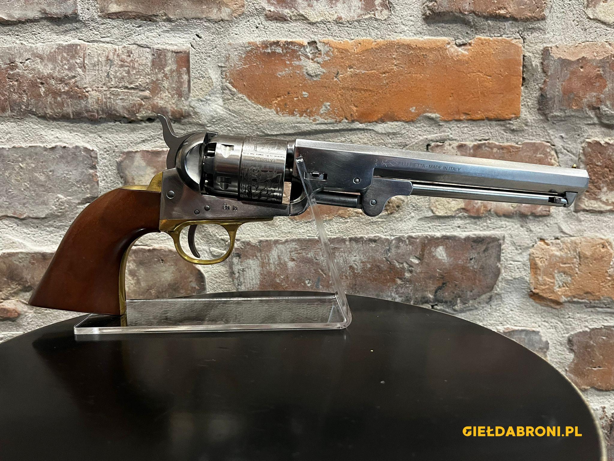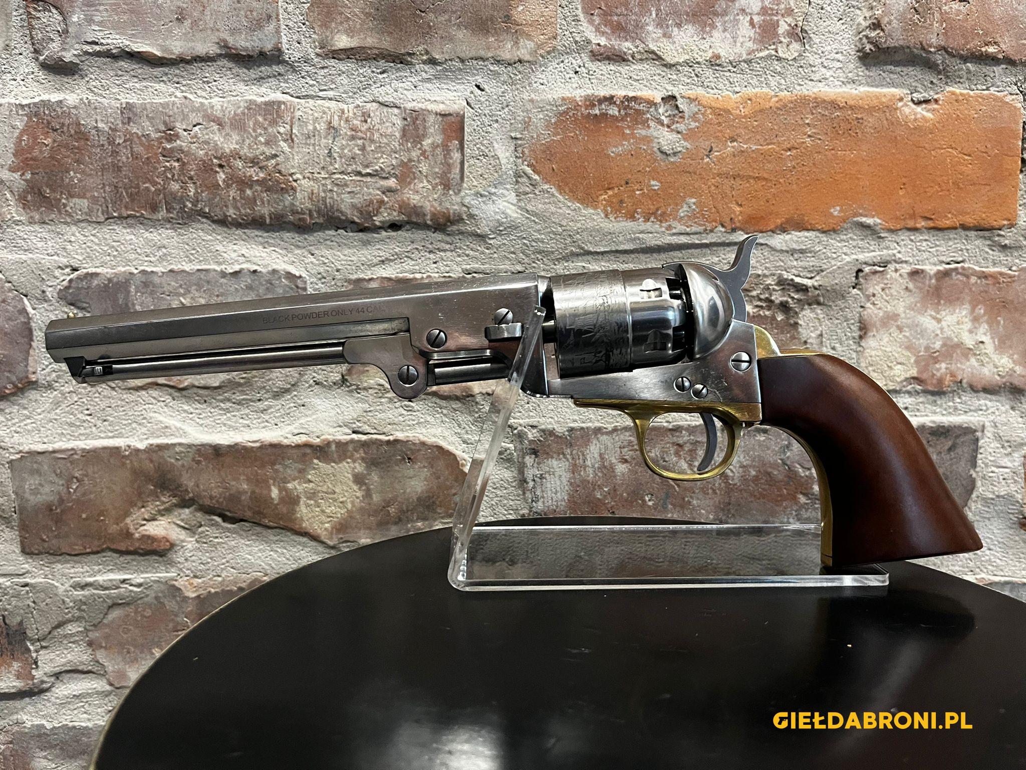 Rewolwer czarnoprochowy 1851 Colt Navy Yank Old Silver Pietta kal. 44 YANB44 z lufą długości 7,5″. Produkt nowy. Dostępne inne rewolwery oraz akcesoria czarnoprochowe łącznie z czarnym prochem (w przypadku czarnego prochu wymagana EKB). Ogłoszenie ma charakter informacyjny, sprzedajemy tylko i wyłącznie stacjonarnie osobom pełnoletnim, możliwa telefoniczna rezerwacja. Cały asortyment widoczny na stronie guns-ammo.pl. W myśl art. 11 ust. 10 ustawy o broni i amunicji nie wymaga pozwolenia na broń posiadanie broni palnej rozdzielnego ładowania wytworzonej przed 1885r bądź jej repliki.