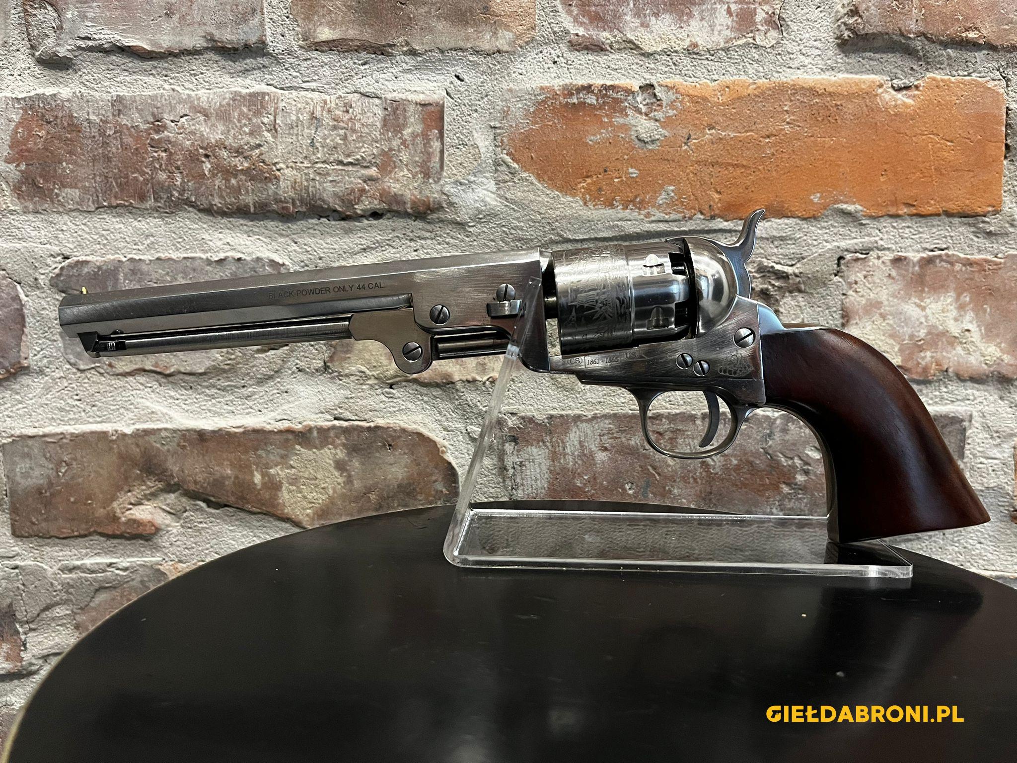 Rewolwer czarnoprochowy 1851 Colt Navy Yank Old Silver Steel Pietta kal. 44 YANOS44 z lufą długości 7,5″. Produkt nowy. Dostępne inne rewolwery oraz akcesoria czarnoprochowe łącznie z czarnym prochem (w przypadku czarnego prochu wymagana EKB). Ogłoszenie ma charakter informacyjny, sprzedajemy tylko i wyłącznie stacjonarnie osobom pełnoletnim, możliwa telefoniczna rezerwacja. Cały asortyment widoczny na stronie guns-ammo.pl. W myśl art. 11 ust. 10 ustawy o broni i amunicji nie wymaga pozwolenia na broń posiadanie broni palnej rozdzielnego ładowania wytworzonej przed 1885r bądź jej repliki.
