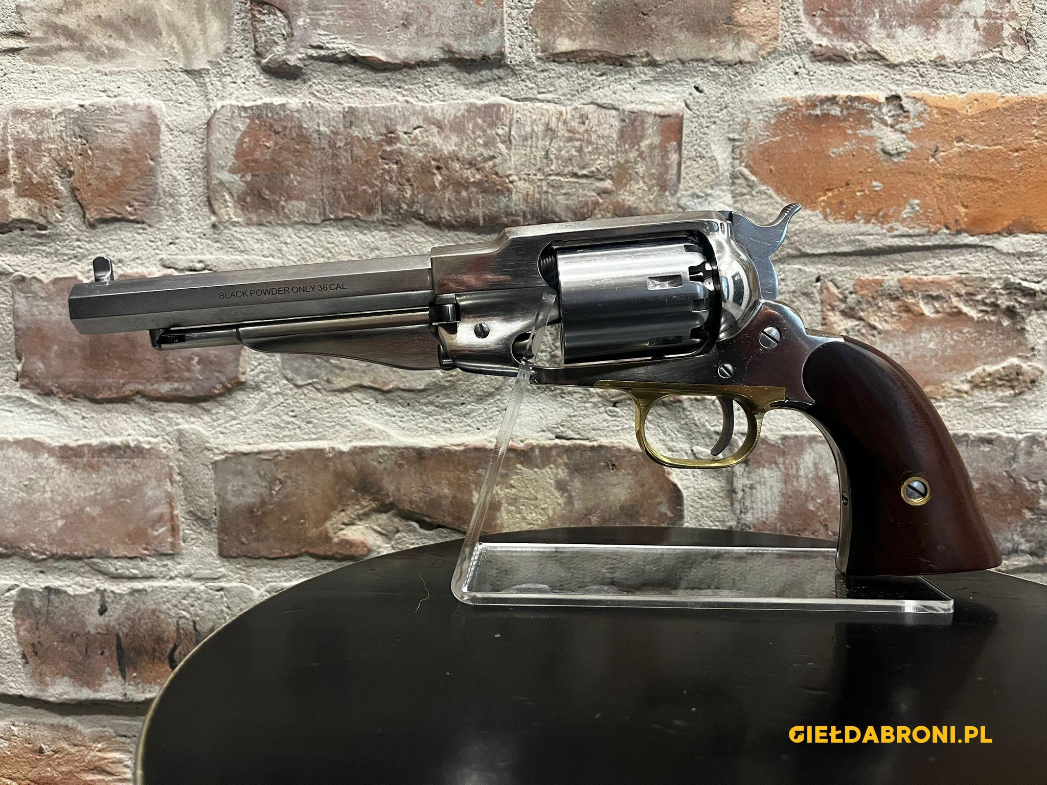 Rewolwer czarnoprochowy Remington 1858 New Model Navy Stainless RGS36 Pietta kal.36 z lufą długości 6,5″. Produkt nowy. Dostępne inne rewolwery oraz akcesoria czarnoprochowe łącznie z czarnym prochem (w przypadku czarnego prochu wymagana EKB). Ogłoszenie ma charakter informacyjny, sprzedajemy tylko i wyłącznie stacjonarnie osobom pełnoletnim, możliwa telefoniczna rezerwacja. Cały asortyment widoczny na stronie guns-ammo.pl. W myśl art. 11 ust. 10 ustawy o broni i amunicji nie wymaga pozwolenia na broń posiadanie broni palnej rozdzielnego ładowania wytworzonej przed 1885r bądź jej repliki.