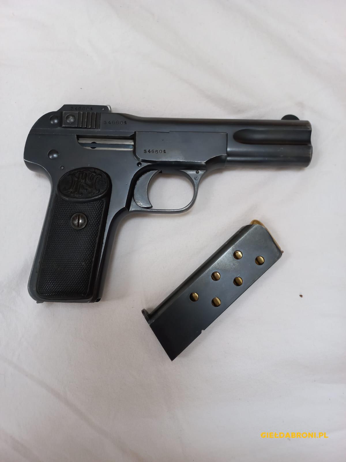 pistolet FN1900 Belgia. Model wyprodukowany w latach 1900-1905. Kaliber 7,65. W zestawie jeden magazynek. Stan całości bardzo dobry!