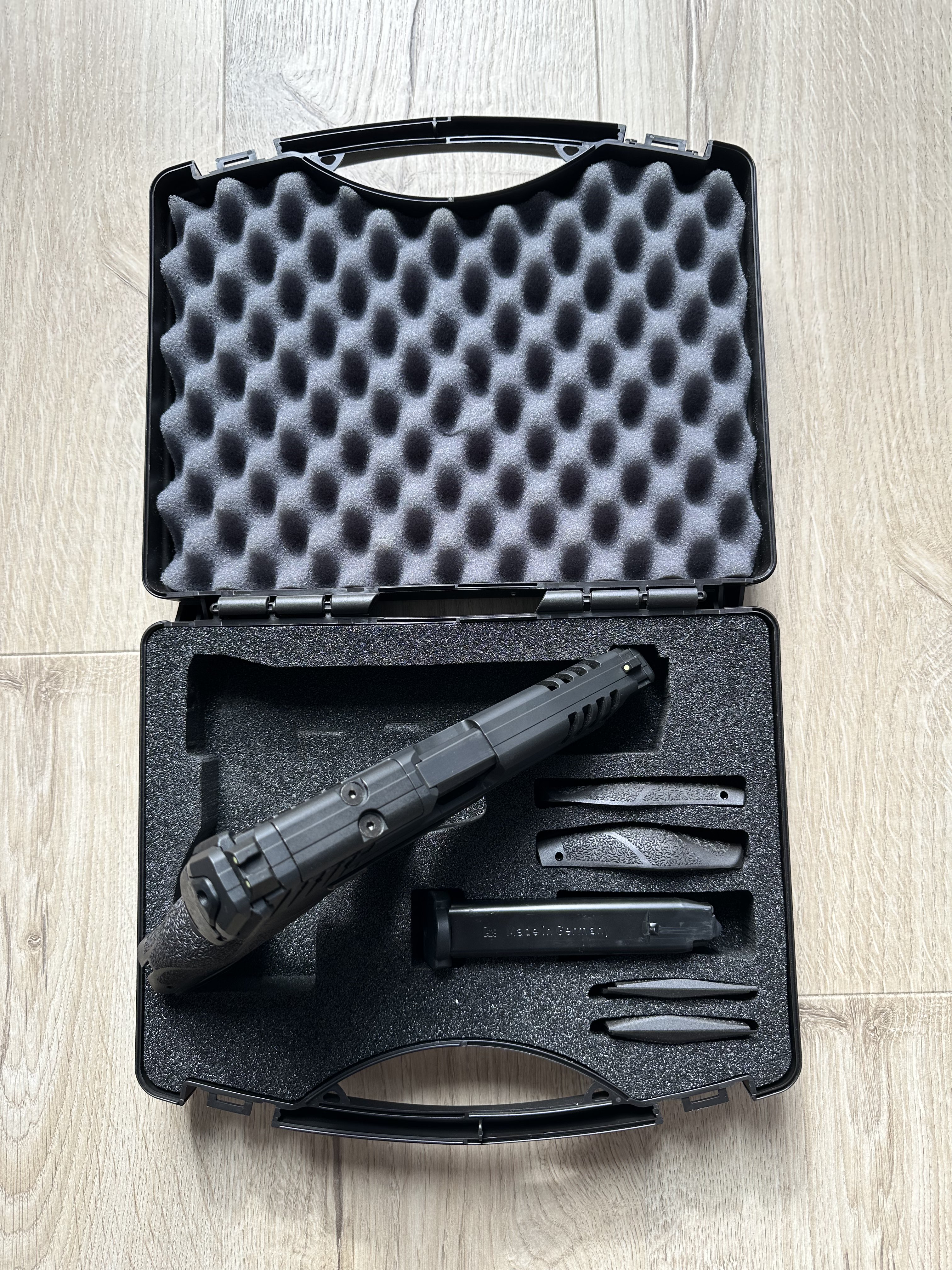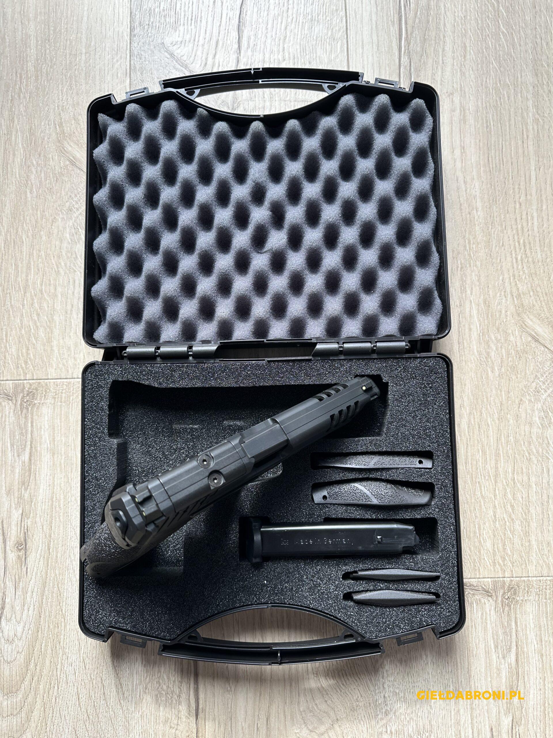 Myślę, że samej konstrukcji przedstawiać nie trzeba. Pistolet jak nowy. Wystrzelone 250 kulek. Pełny komplet tak jak jest sprzedawany. Pistolet jest „Optic Ready” a blaszki są w zestawie wraz ze śrubkami.