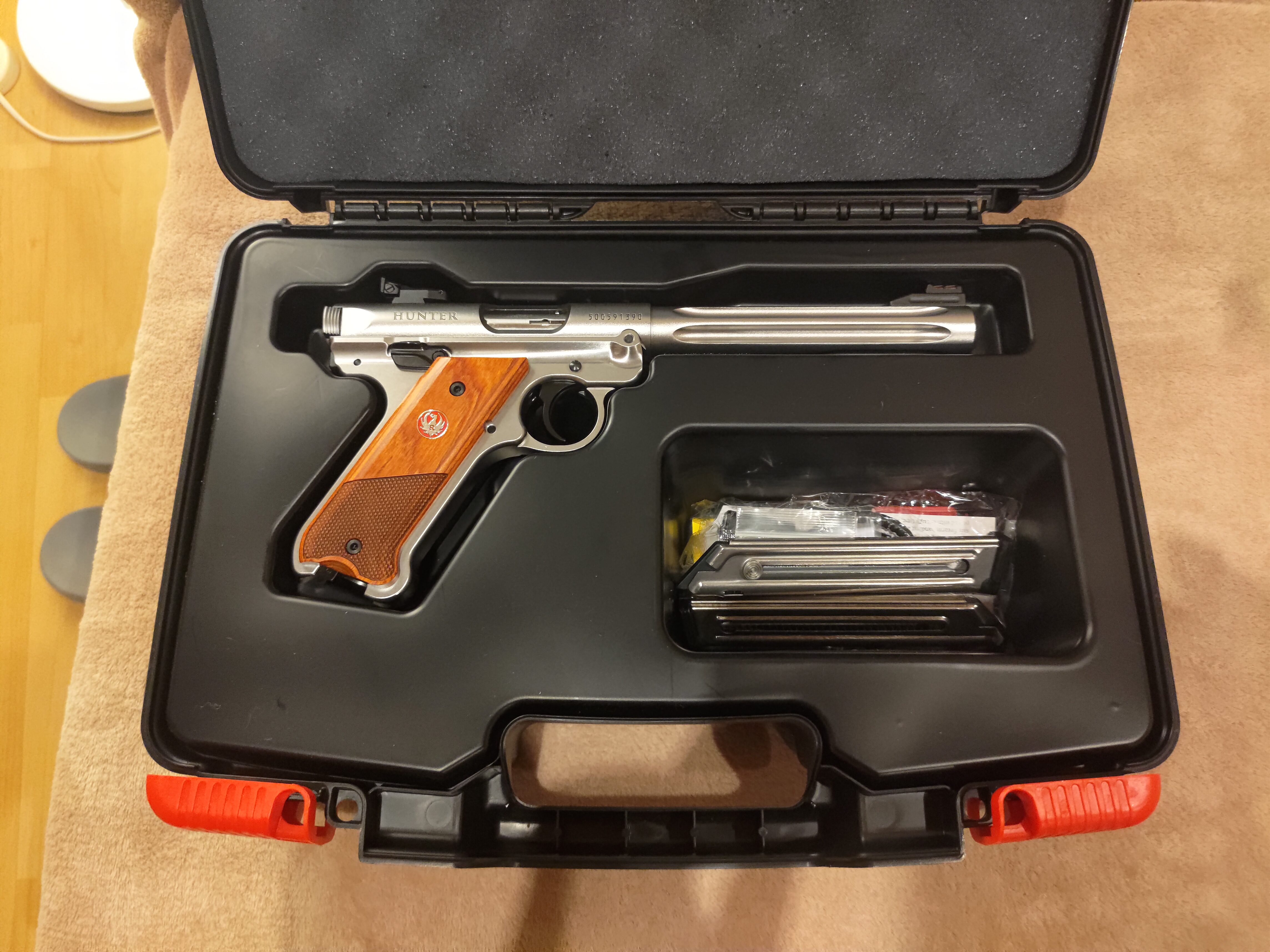 Witam sprzedam nowy, nie używany pistolet Ruger MkIV Hunter kal.22LR (40118). Kupiłem pistolet, lecz okazało się że nie mogę nim brać udziału w zawodach pzss. Z pistoletu nie oddałem ani jednego strzału. Zestaw cały kompletny.