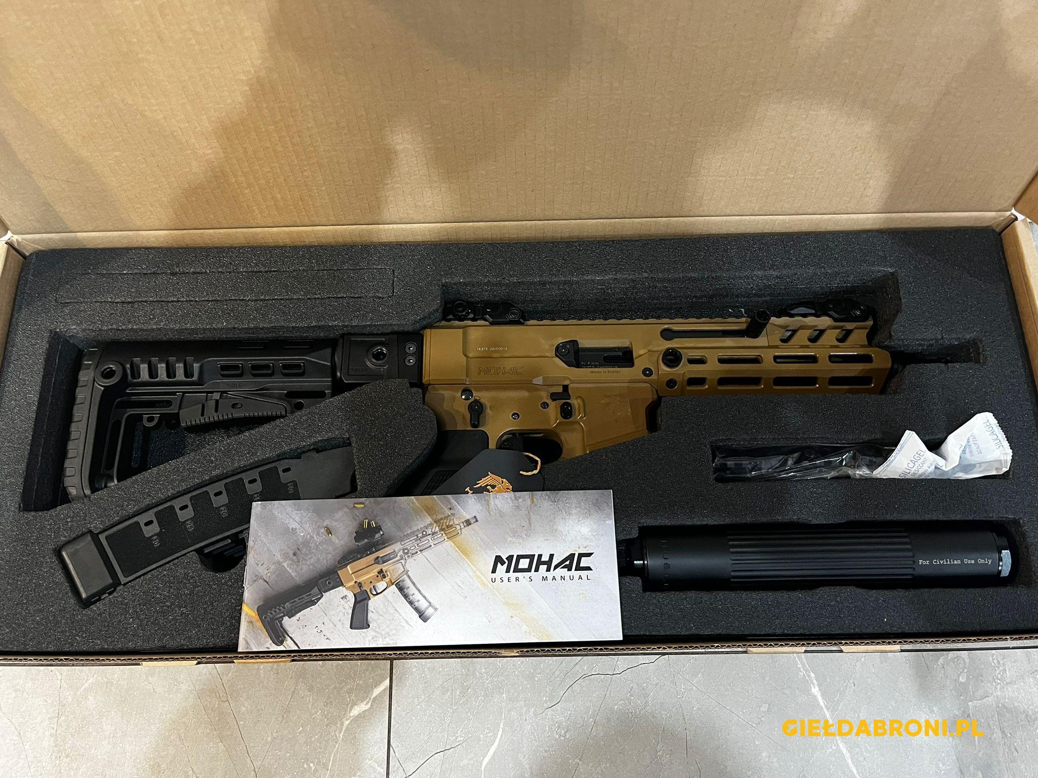 Pistolet samopowtarzalny Huglu Mohac kal. 9x19mm PCC FDE, z lufą 8″. Kolba rozkładana, rozsuwana w 5 pozycjach, 2x magazynek w standardzie: CZ evo 3+, okładziny szyny x3, przyrządy celownicze, chwyt w milspecu, obustronne manipulatory, skok w lufie 1:10, ilość bruzd 6, gwint na lufie 1/2×28 UNEF, standard milspec do AR. Broń jest fabrycznie nowa, objęta gwarancją. Wersje kolorystyczne Black, FDE oraz Olivka. Produkt koncesjonowany, dostępny za okazaniem odpowiednich dokumentów. Tel. 737 396 130 lub przez guns-ammo.pl