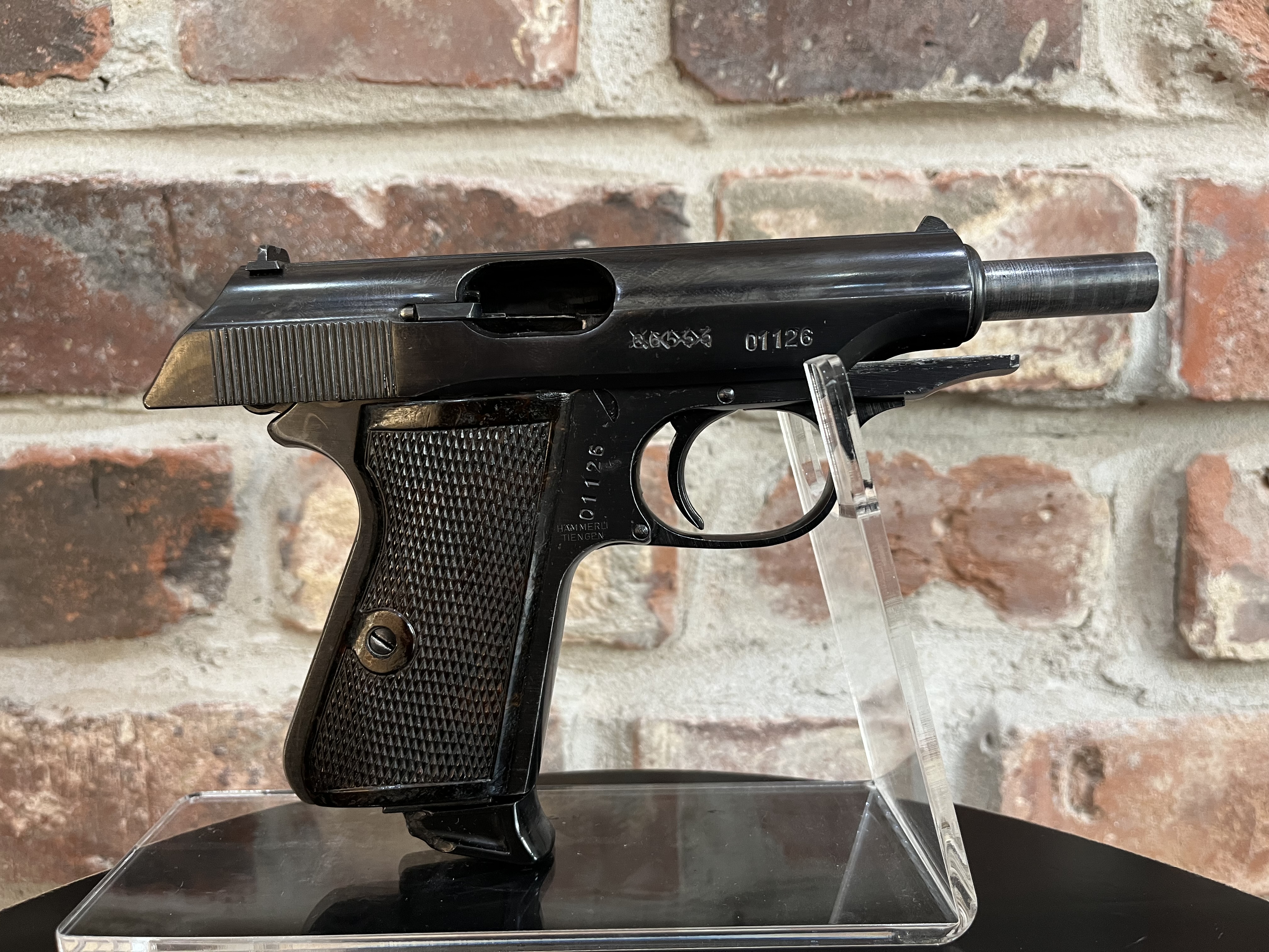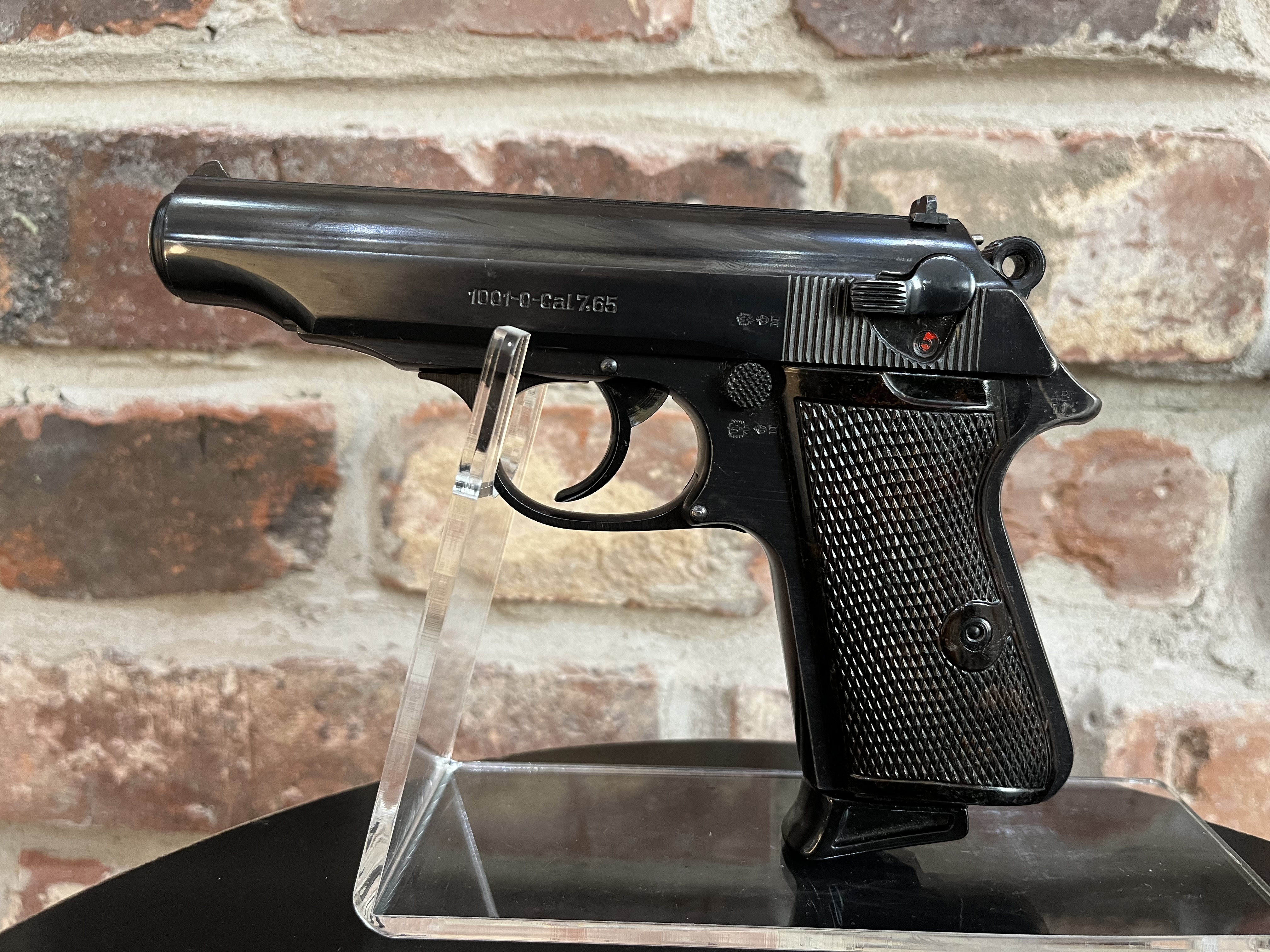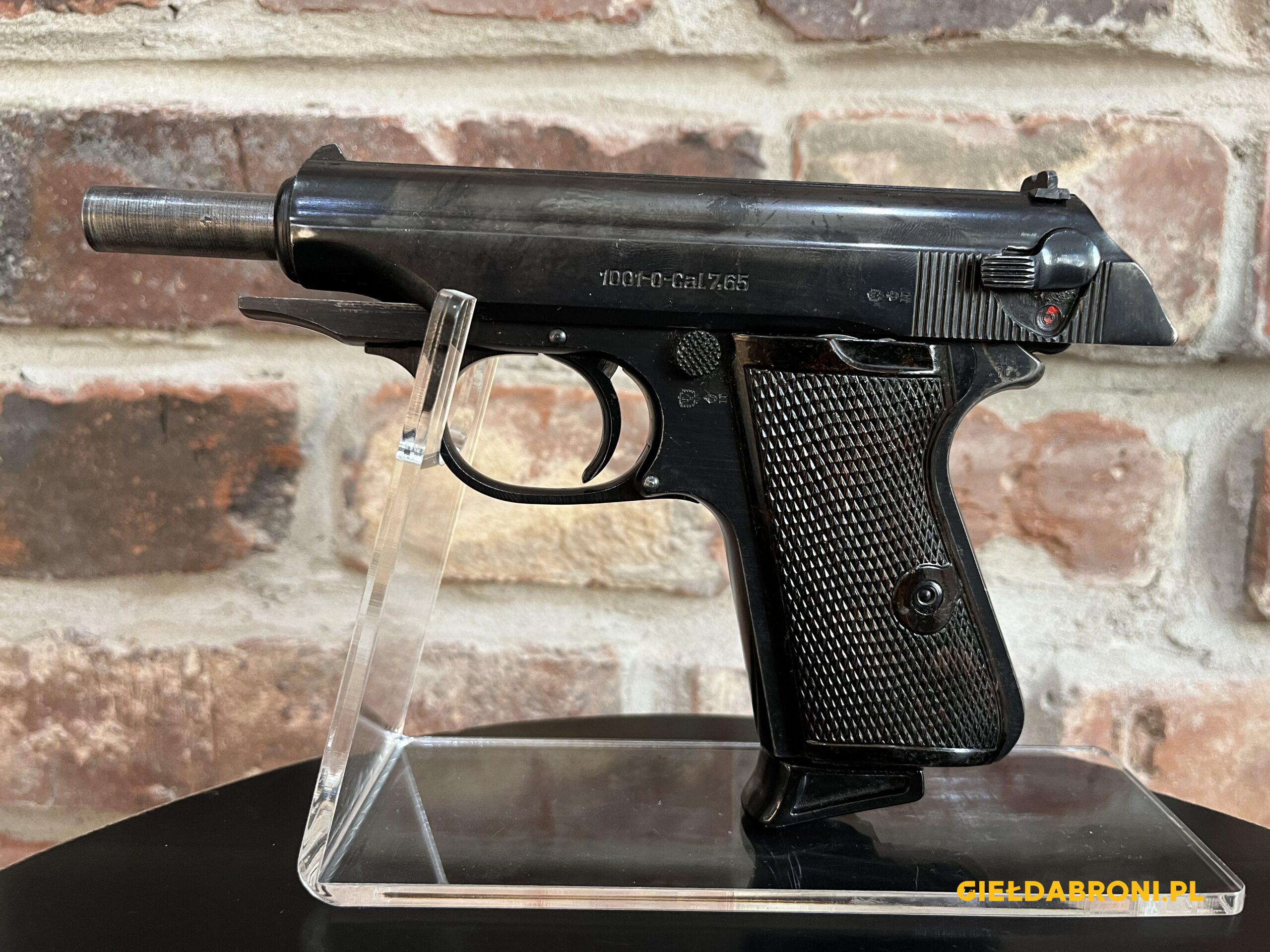 Pistolet samopowtarzalny PP1001 kal. 7,65 Browning. Produkcja THALMANN. W przeszłości wymieniony w broni zamek i nabity nowy nr pasujący do szkieletu. Oksyda w dobrym stanie, lufa bez uszkodzeń z bardzo wyraźnym gwintem. Pistolet z jednym magazynkiem 8 nabojowym. Produkt koncesjonowany, dostępny za okazaniem odpowiednich dokumentów. Tel. 737 396 130 lub przez guns-ammo.pl