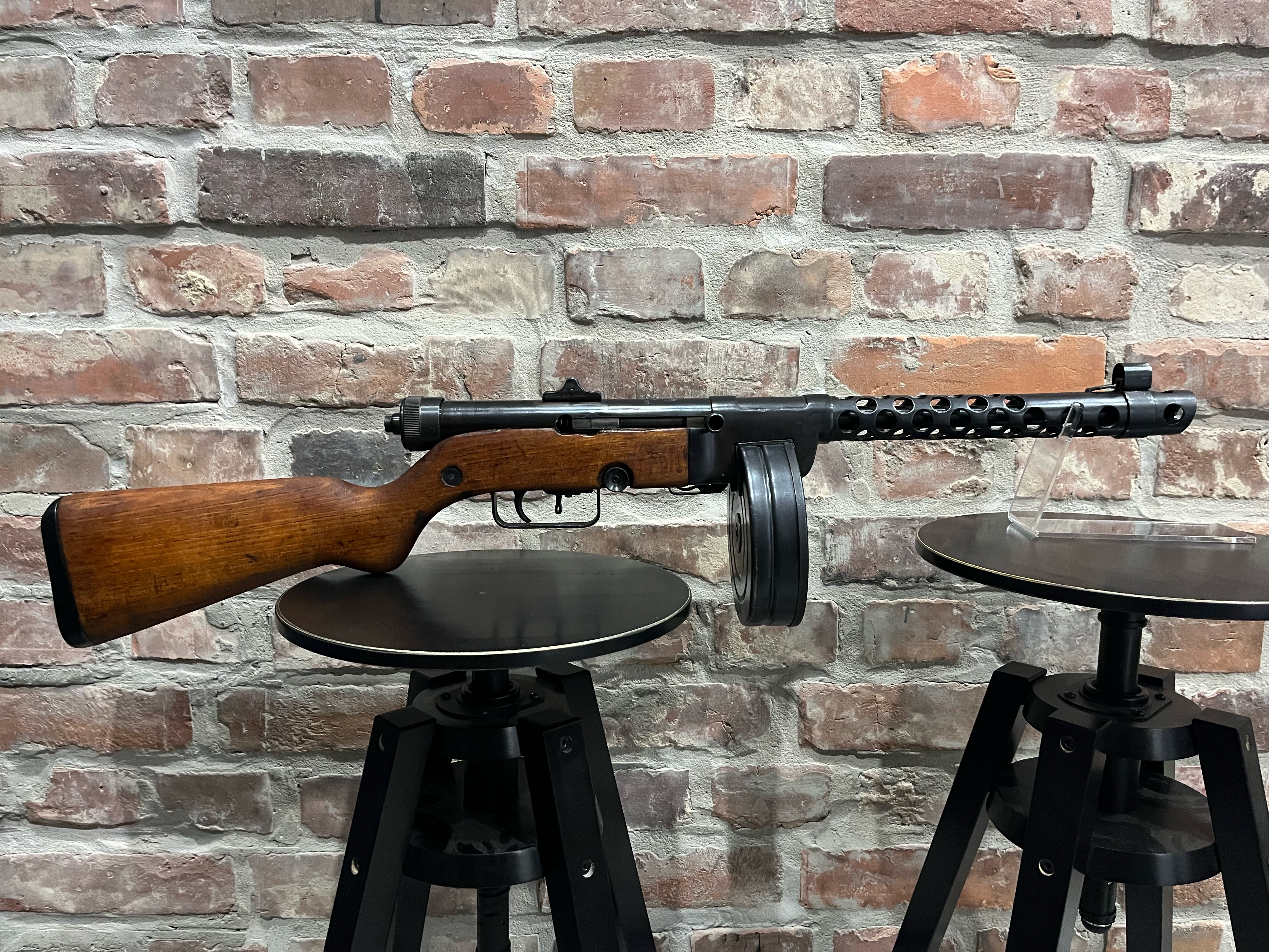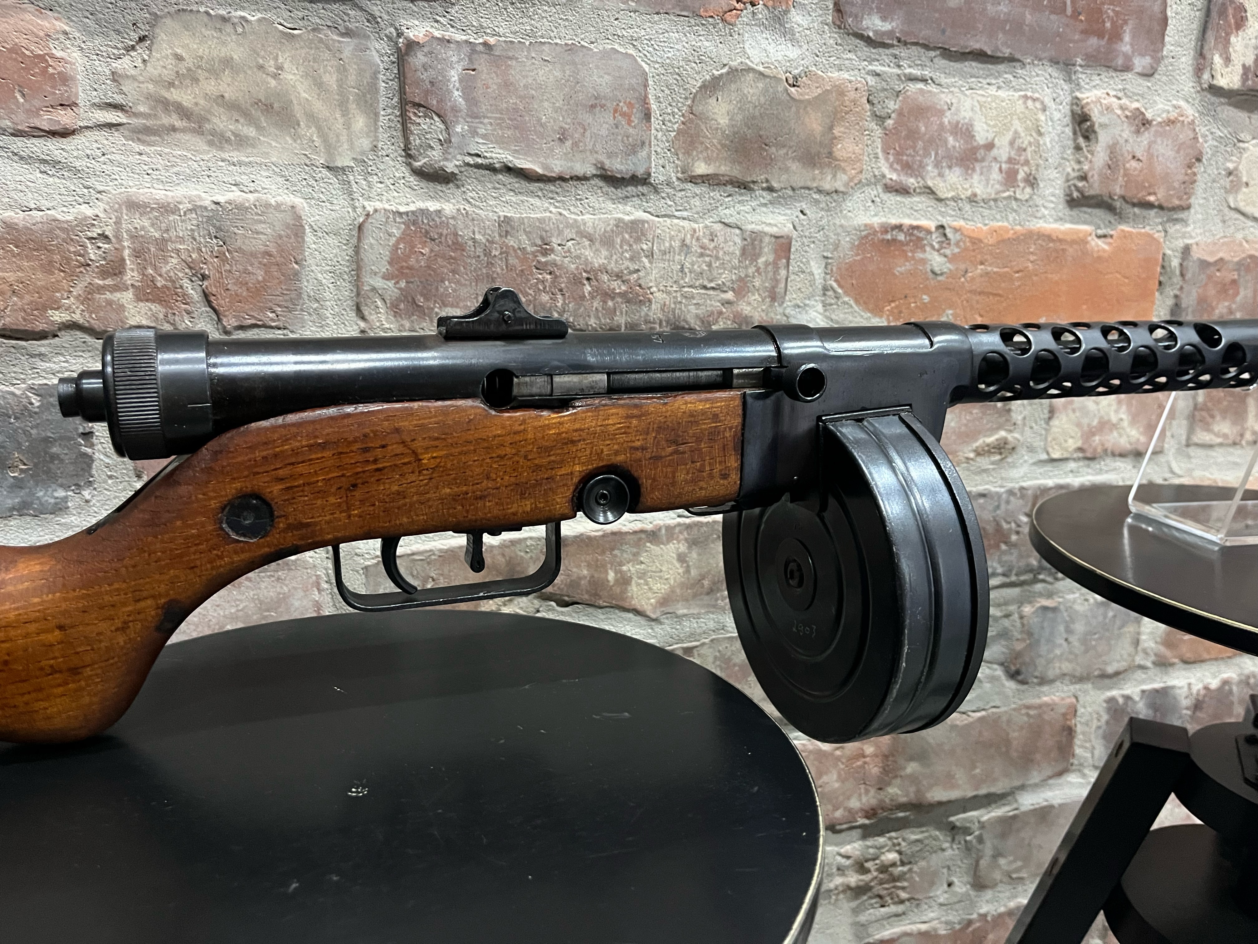 Pistolet samopowtarzalny Zastava M49/57, kal. 7,62×25. Broń w oryginalnej oksydzie w stanie bardzo dobrym. Broń strzela jak w oryginale z zamka otwartego. Produkcja Jugosłowiańska. Przewód lufy w stanie bardzo dobrym – lustro. W komplecie jeden magazynek bębnowy 71 nabojowy. Zbliżony wygląd do PPSz wz. 41, magazynki są wymienne z magazynkami PPSz, zarówno łukowe jak i bębnowe. Błyskawiczna wymiana lufy podobnie jak w MG 42/53, wystarczy przy otwartym zamku wcisnąć zapadkę przy muszce i obrócić lufę 90 stopni, po czym lufę można wyciągnąć z broni. Produkt koncesjonowany, dostępny za okazaniem odpowiednich dokumentów. Tel kontaktowy 737 396 130 lub przez guns-ammo.pl
