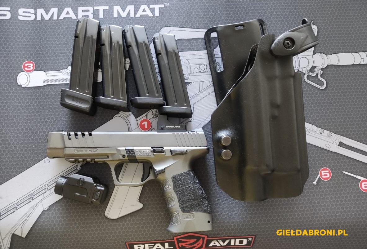 Na sprzedaż mam SAR 9 Sport Platinum zakupiony w Marcu 2023 roku. Przebieg około 650 szt. amunicji W zestawie to co w sklepie : (Kolimator, Latarka, 2 Magazynki, Szybko-ładowarka do magazynków, Kabura, Ładownice, Wymienne okładki chwytowe (3 rozmiary), Wymienne okładki chwytowe boczne (3 rozmiary), Komplet wyciorów do czyszczenia, Olej, Walizka, Instrukcja obsługi, Komplet kluczy do montażu, Akcesoria do czyszczenia) Dodaje dodatkowo 2 magazynki (łącznie 3×17 i 1×19) i kaburę obniżoną przystosowaną do kolimatora i latarek z systemem QLS