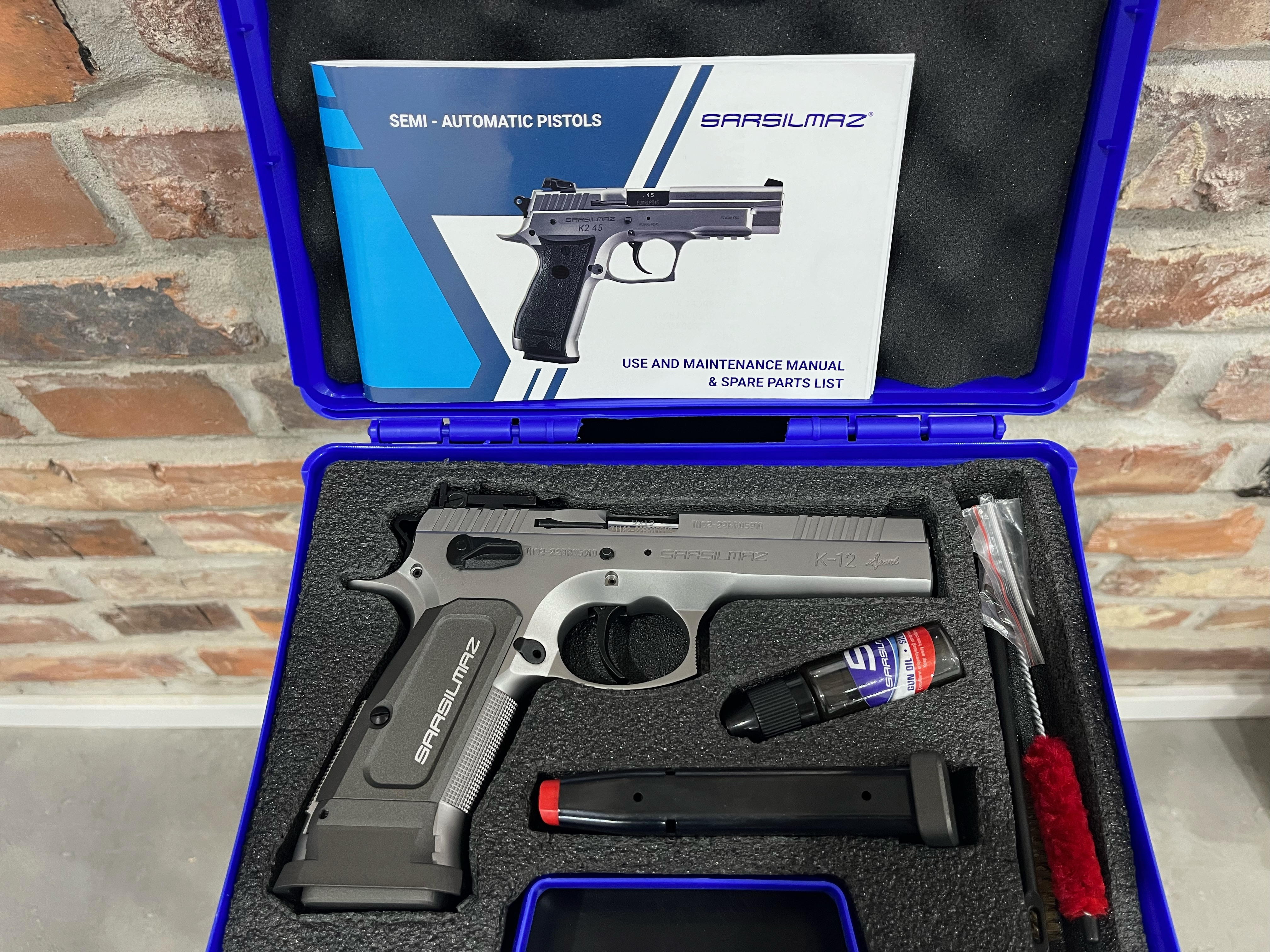 Pistolet Sarsilmaz K-12 Sport kal. 9×19. Pistolet fabrycznie nowy. W komplecie z kuferkiem, przyborami do czyszczenia i 2 magazynkami. Dostępny również w wersji Sport X. Produkt koncesjonowany, dostępny za okazaniem odpowiednich dokumentów. Tel kontaktowy 737 396 130 lub przez guns-ammo.pl