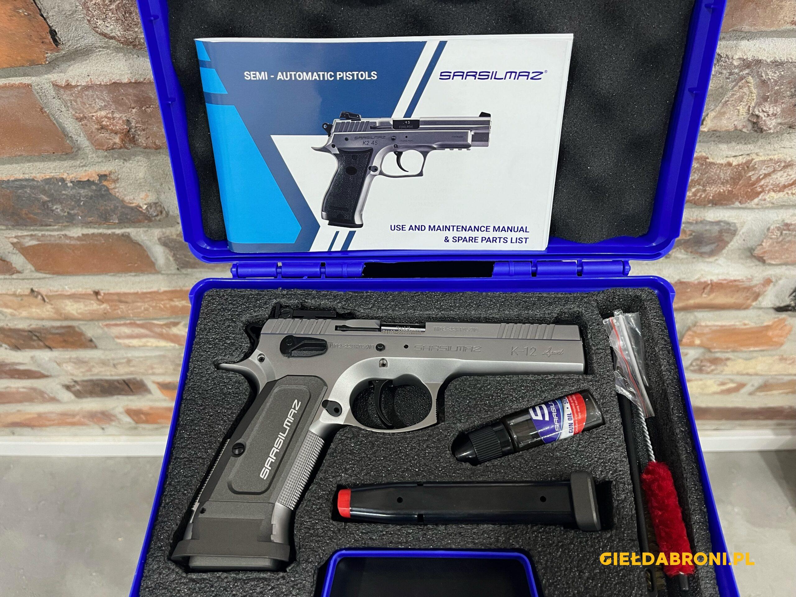 Pistolet Sarsilmaz K-12 Sport kal. 9×19. Pistolet fabrycznie nowy. W komplecie z kuferkiem, przyborami do czyszczenia i 2 magazynkami. Dostępny również w wersji Sport X. Produkt koncesjonowany, dostępny za okazaniem odpowiednich dokumentów. Tel kontaktowy 737 396 130 lub przez guns-ammo.pl