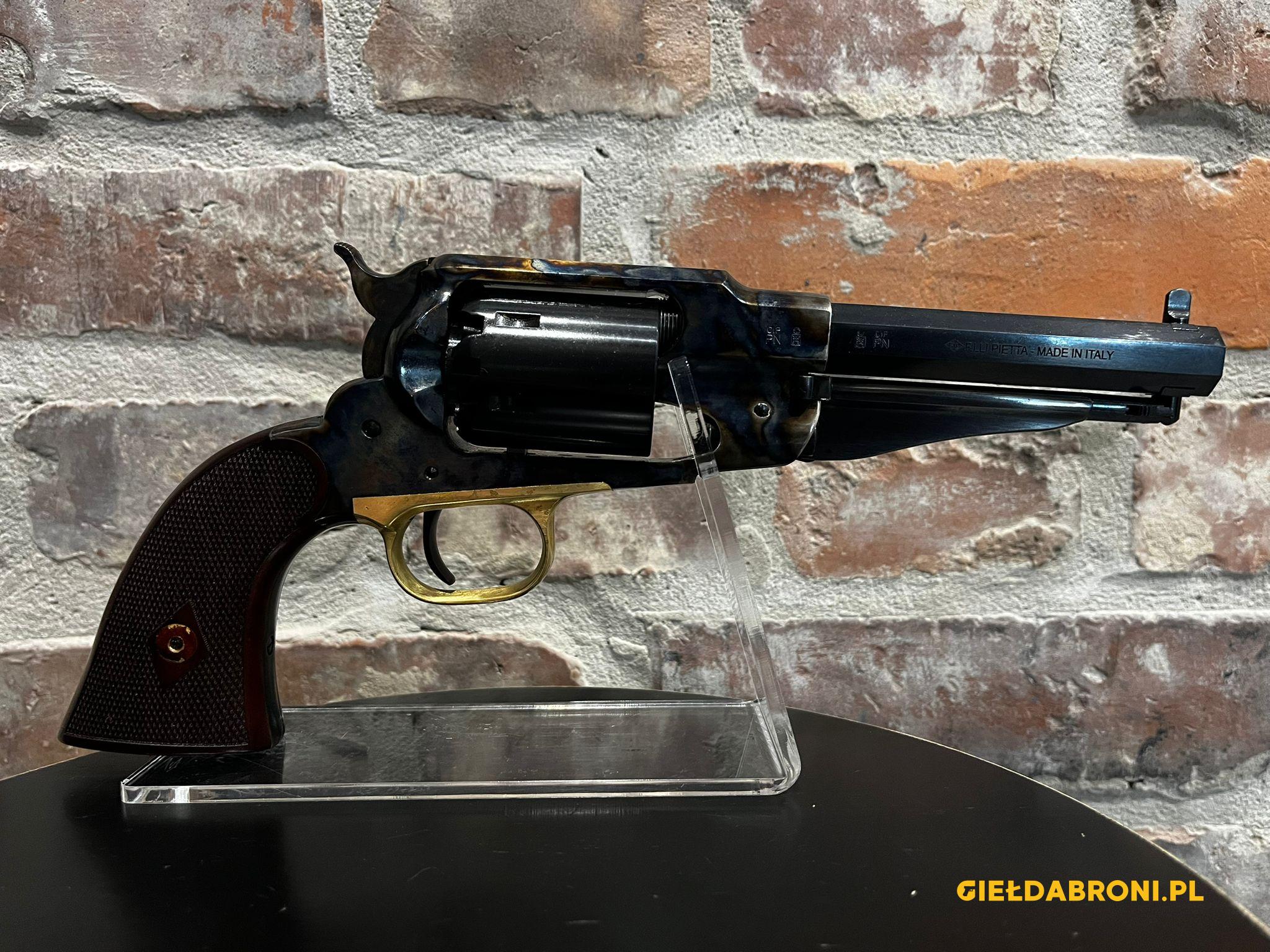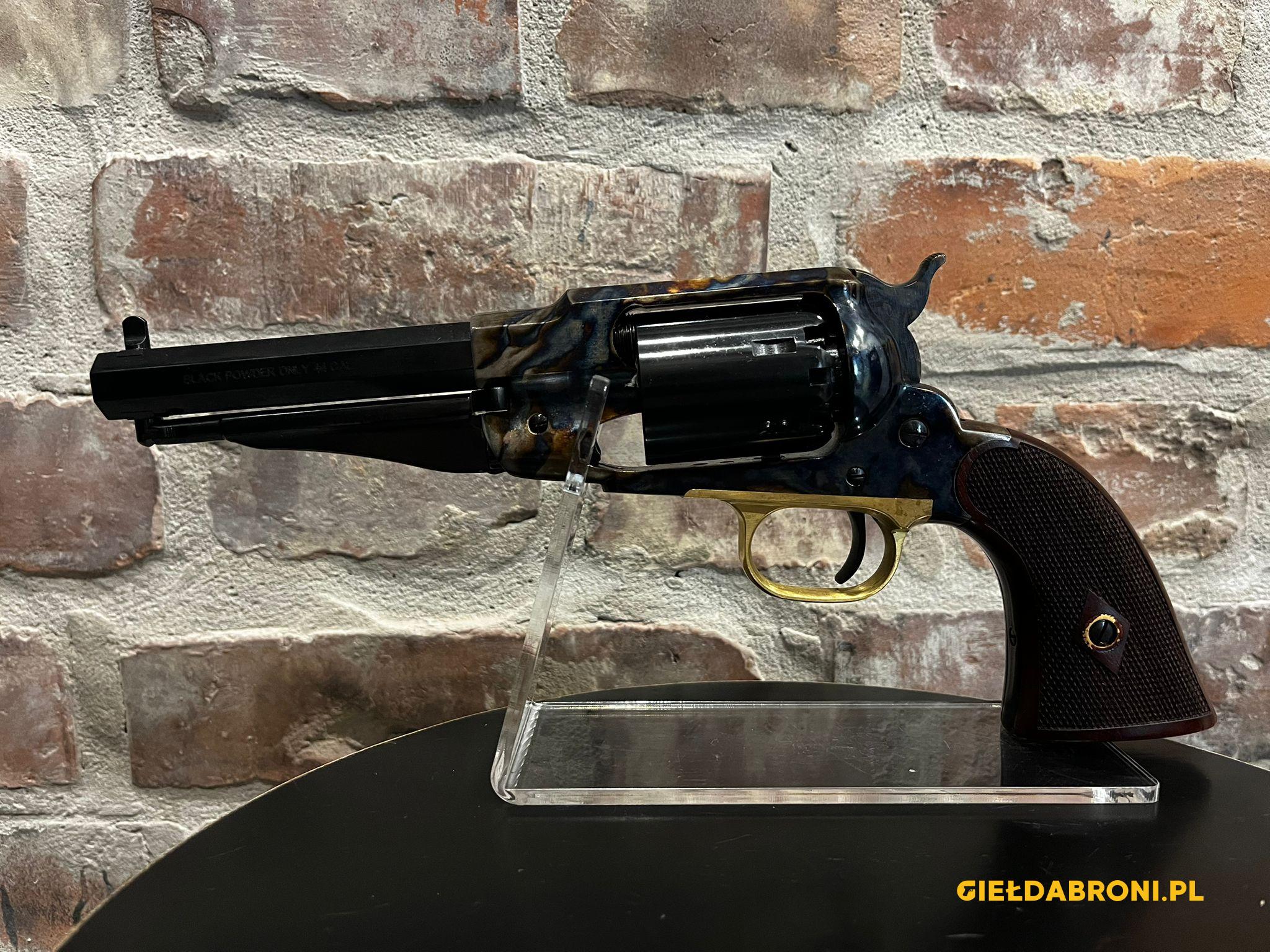 Rewolwer czarnoprochowy Remington 1858 New Model Army Sheriff RGACHSH44LC Pietta kal.44 z lufą długości 5,5″. Wersja (LC) z moletowanymi okładkami chwytu i ramą hartowaną ogniowo. Produkt nowy. Dostępne inne rewolwery oraz akcesoria czarnoprochowe łącznie z czarnym prochem (w przypadku czarnego prochu wymagana EKB). Ogłoszenie ma charakter informacyjny, sprzedajemy tylko i wyłącznie stacjonarnie osobom pełnoletnim, możliwa telefoniczna rezerwacja. Cały asortyment widoczny na stronie guns-ammo.pl W myśl art. 11 ust. 10 ustawy o broni i amunicji nie wymaga pozwolenia na broń posiadanie broni palnej rozdzielnego ładowania wytworzonej przed 1885r bądź jej repliki.