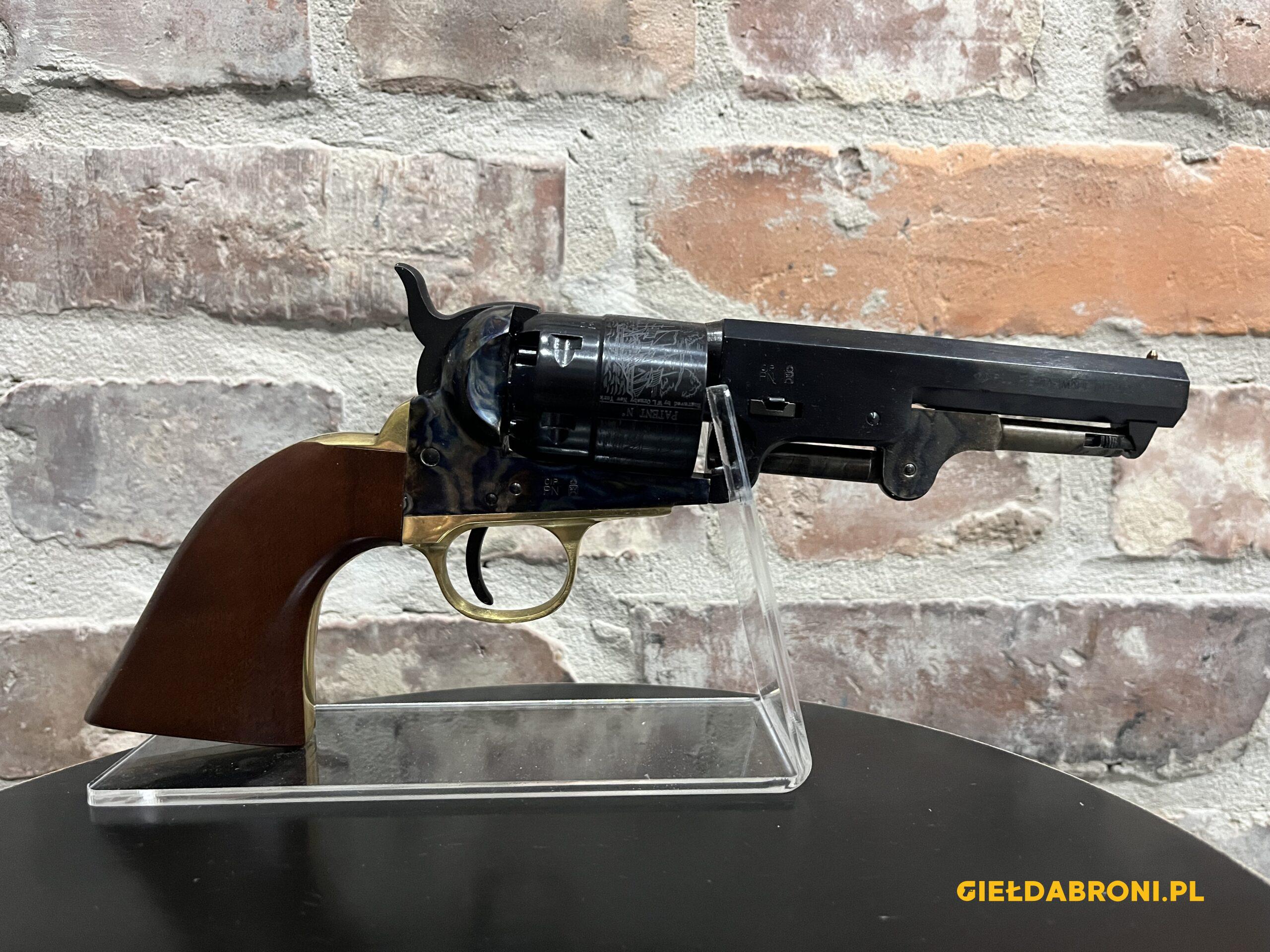 Rewolwer czarnoprochowy 1851 Colt Navy Yank Sheriff YAS44 Pietta kal.44 z lufą długości 4,87″. Produkt nowy. Dostępne inne rewolwery oraz akcesoria czarnoprochowe łącznie z czarnym prochem (w przypadku czarnego prochu wymagana EKB). Ogłoszenie ma charakter informacyjny, sprzedajemy tylko i wyłącznie stacjonarnie osobom pełnoletnim, możliwa telefoniczna rezerwacja. Cały asortyment widoczny na stronie guns-ammo.pl. W myśl art. 11 ust. 10 ustawy o broni i amunicji nie wymaga pozwolenia na broń posiadanie broni palnej rozdzielnego ładowania wytworzonej przed 1885r bądź jej repliki
