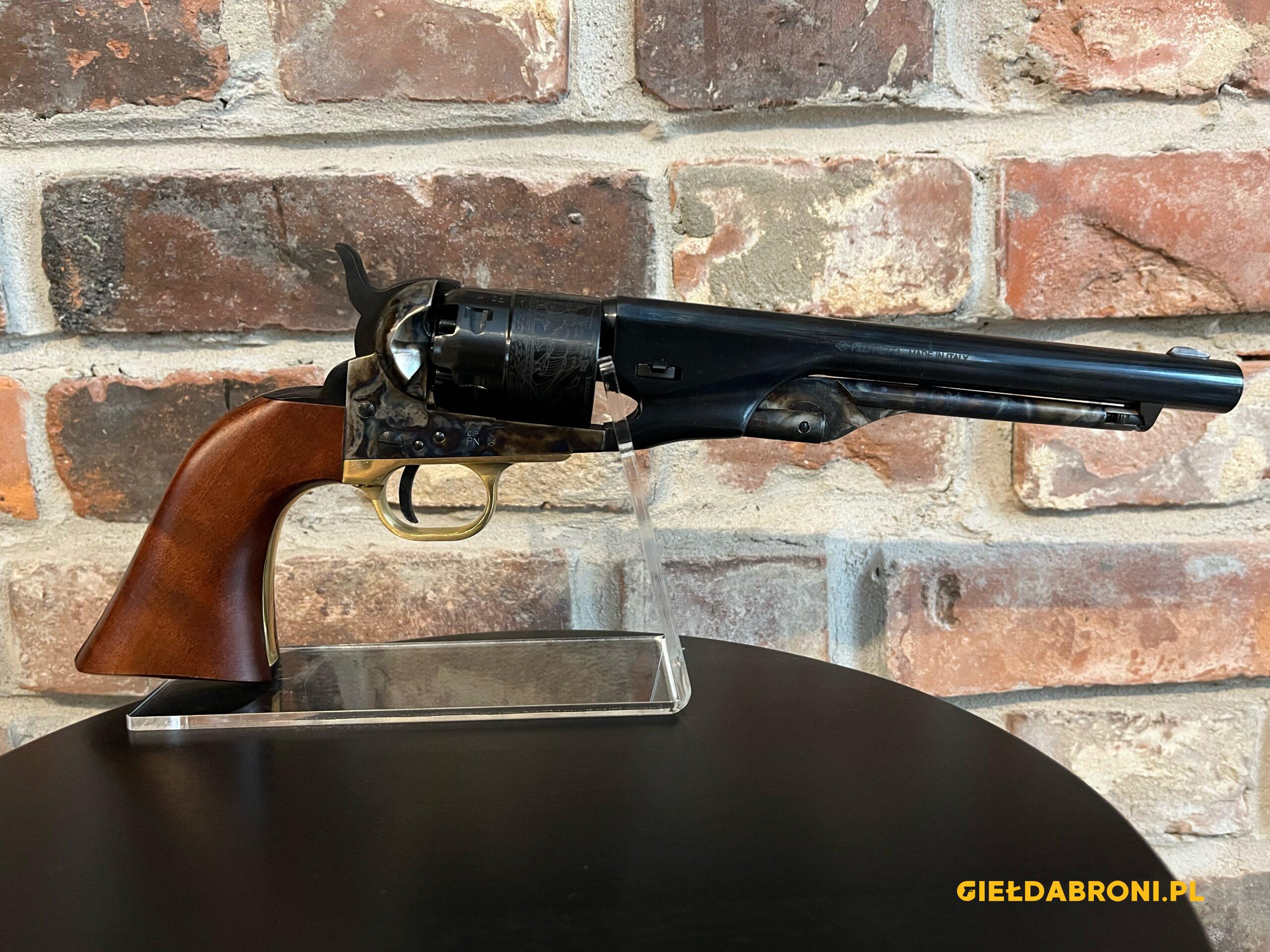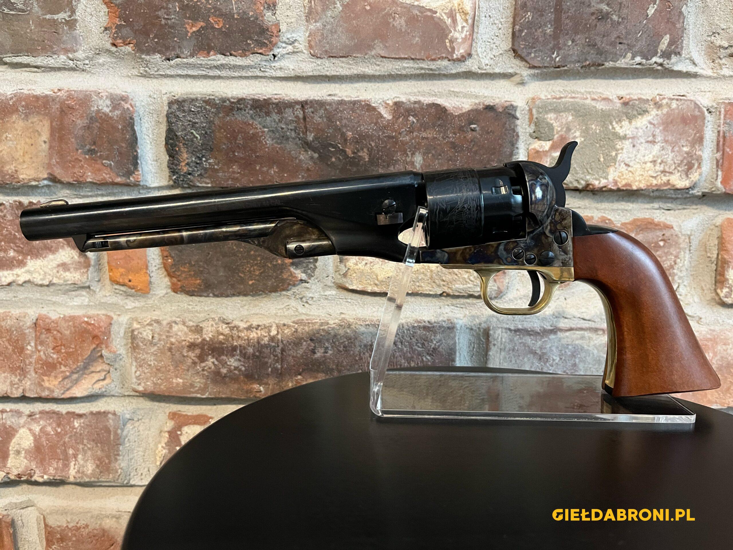 Rewolwer czarnoprochowy Colt 1860 CAS44 Pietta kal.44 z lufą długości 8″. Ładowany odprzodowo z ramą stalową oraz grawerowanym bębnem. Produkt nowy. Dostępne inne rewolwery oraz akcesoria czarnoprochowe łącznie z czarnym prochem (w przypadku czarnego prochu wymagana EKB). Ogłoszenie ma charakter informacyjny, sprzedajemy tylko i wyłącznie stacjonarnie osobom pełnoletnim, możliwa telefoniczna rezerwacja. Cały asortyment widoczny na stronie guns-ammo.pl. W myśl art. 11 ust. 10 ustawy o broni i amunicji nie wymaga pozwolenia na broń posiadanie broni palnej rozdzielnego ładowania wytworzonej przed 1885r bądź jej repliki.