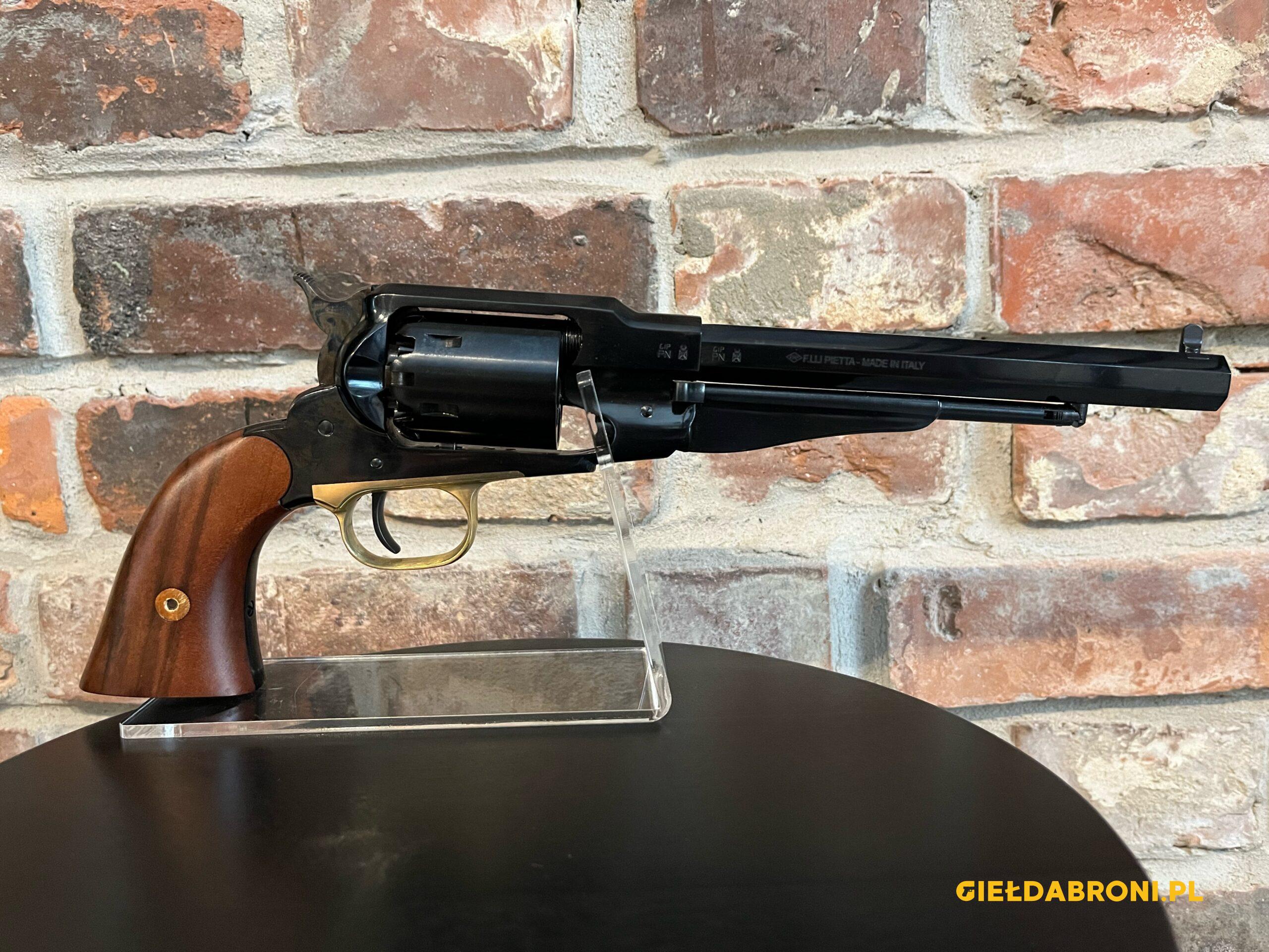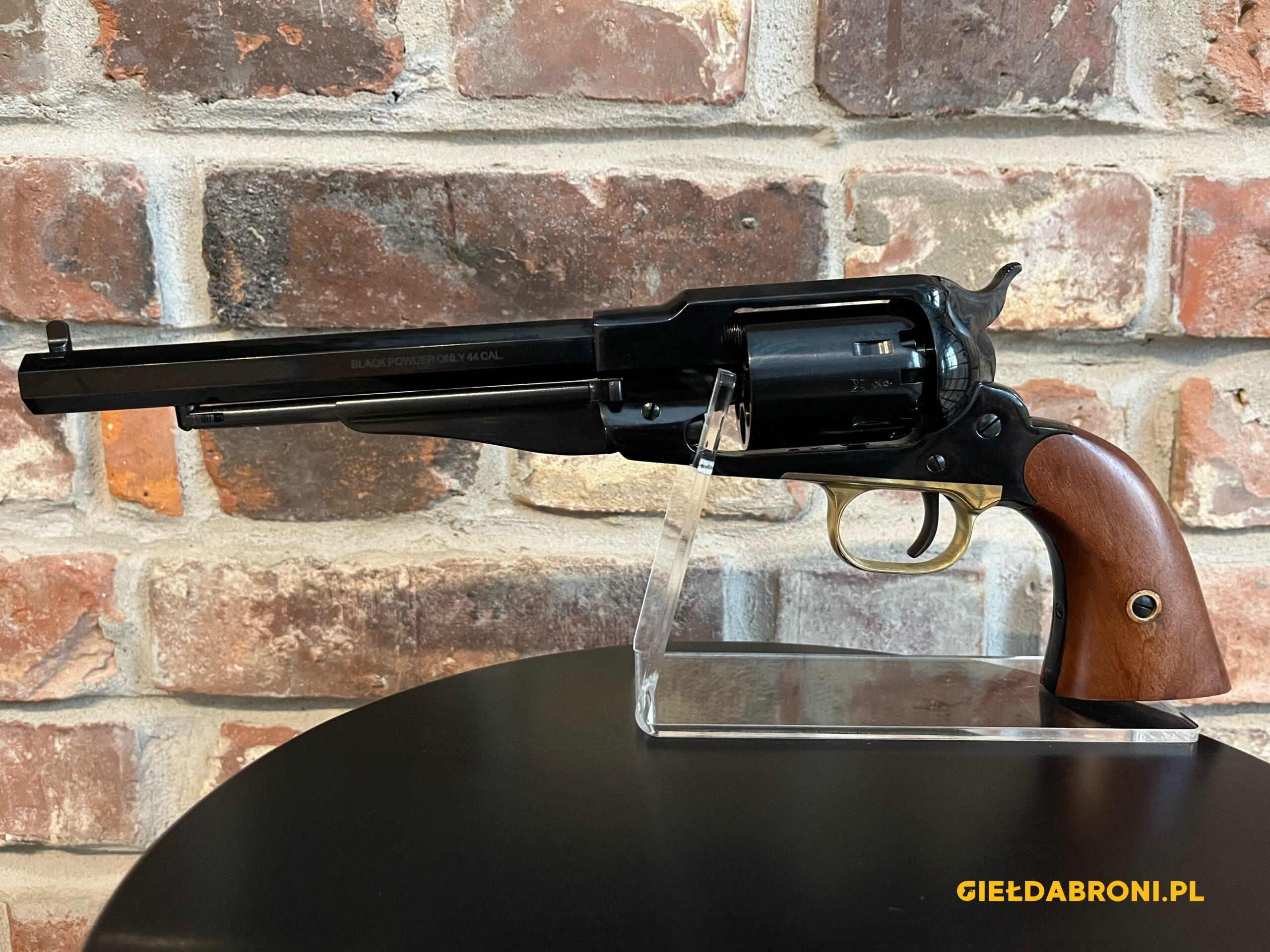 Rewolwer czarnoprochowy Remington 1858 RGA44 Pietta kal.44. z lufą długości 8″. Produkt nowy. Dostępne inne rewolwery oraz akcesoria czarnoprochowe łącznie z czarnym prochem (w przypadku czarnego prochu wymagana EKB). Ogłoszenie ma charakter informacyjny, sprzedajemy tylko i wyłącznie stacjonarnie osobom pełnoletnim, możliwa telefoniczna rezerwacja. Cały asortyment widoczny na stronie guns-ammo.pl. W myśl art. 11 ust. 10 ustawy o broni i amunicji nie wymaga pozwolenia na broń posiadanie broni palnej rozdzielnego ładowania wytworzonej przed 1885r bądź jej repliki