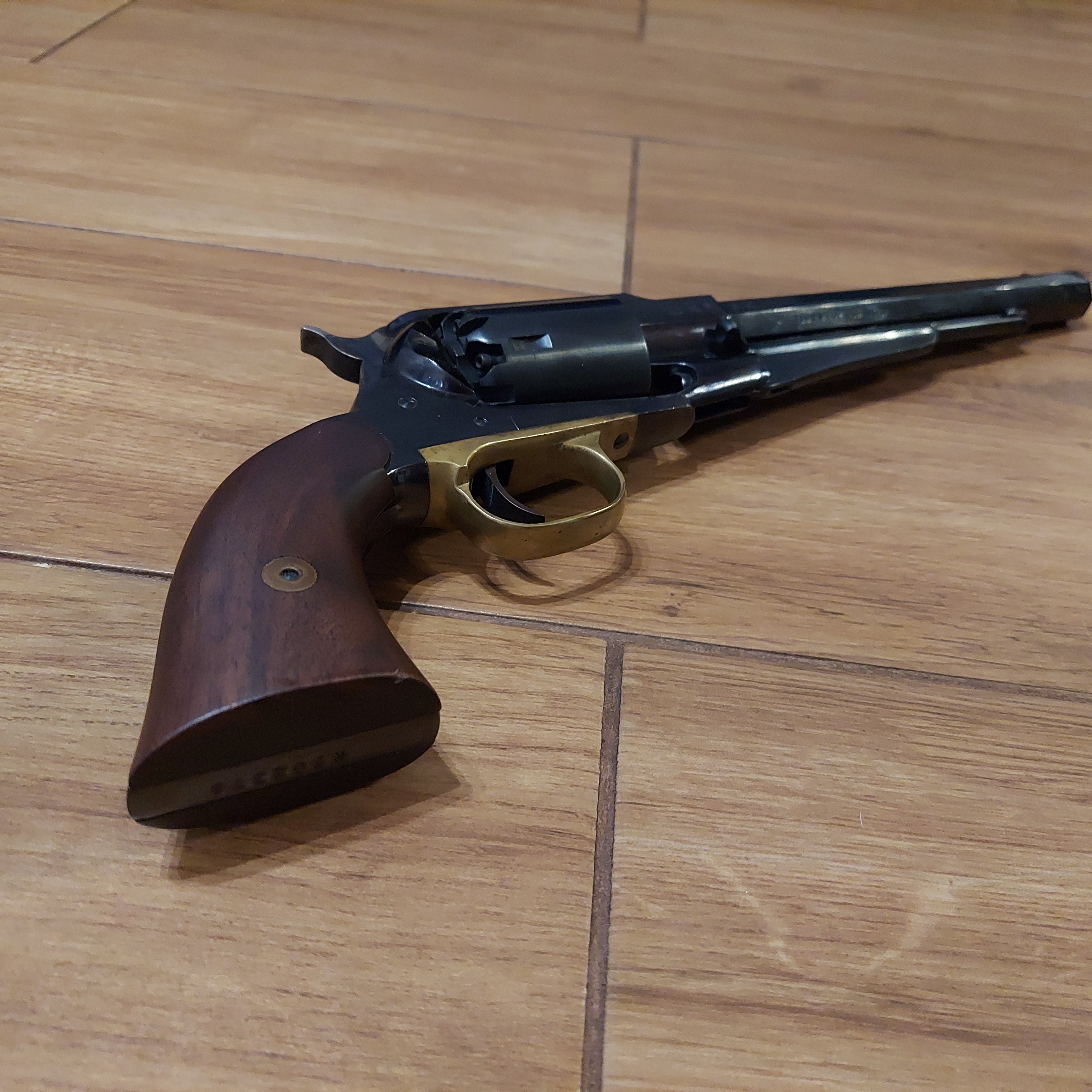 Rama rewolweru wykonana jest ze stali, natomiast kabłąk spustu jest wykonany z mosiądzu. Okładziny chwytu wykonane są z drewna orzechowego, pokryte bejcą oraz lakierem.
