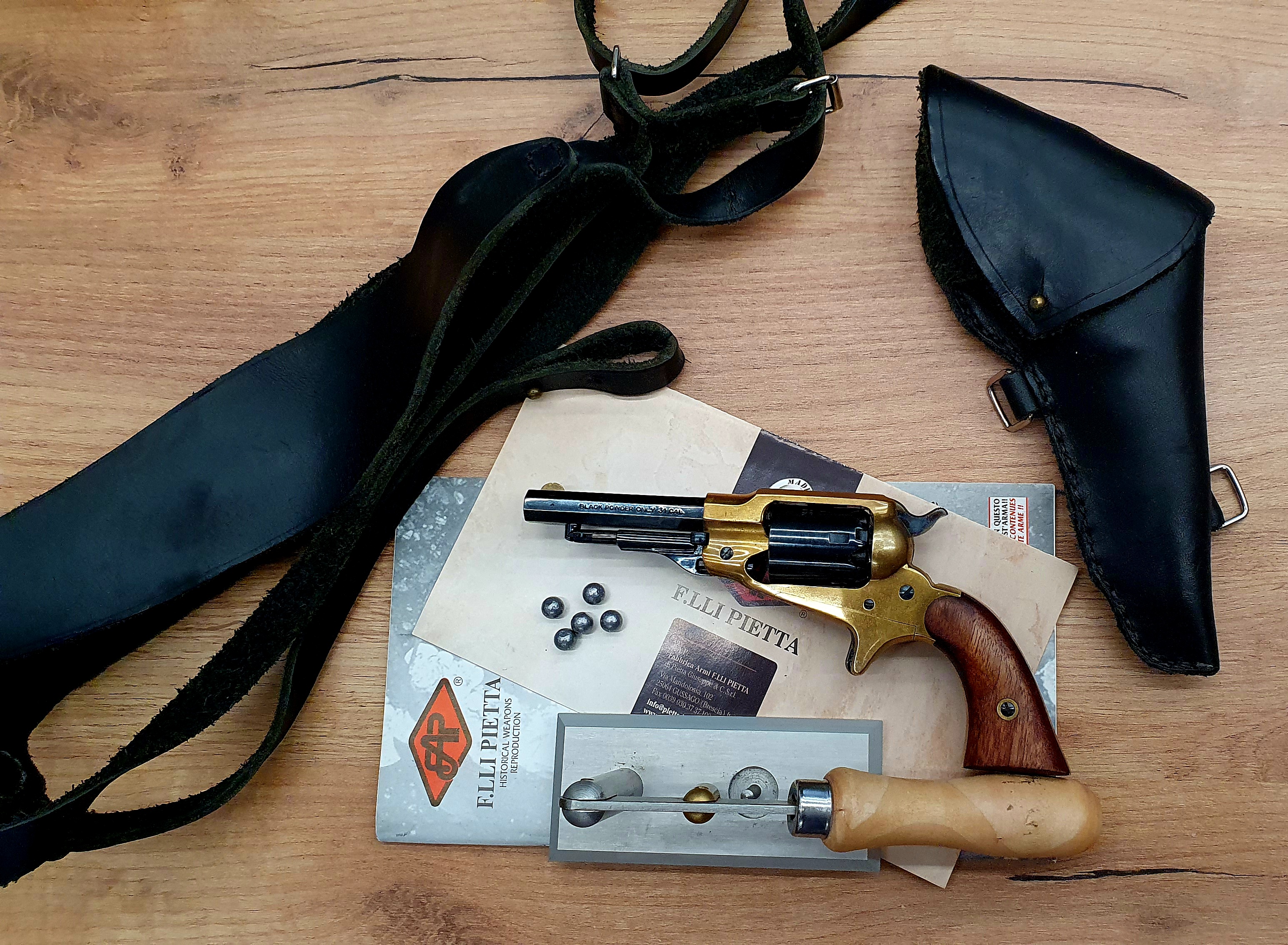 Oferowana replika firmy Pietta to dokładna kopia XIX w. rewolweru w wersji Pocket, stworzonej specjalnie po to, aby pasowała do kieszeni płaszcza i ułatwiała skryte przenoszenie. Należy wspomnieć, że zmniejszenie rozmiarów broni spowodowało również zmniejszenie pojemności bębna. Kieszonkowa wersja ma 5 komór, podczas gdy pełnowymiarowy rewolwer ma ich 6. Mniejsze wymiary i możliwość przenoszenia w kieszeni przyczyniła się do powodzenia tego modelu wśród bywalców saloonów, szulerów, jaki i wielkomiejskich eleganckich dżentelmenów, którym nie przystoiło paradować publicznie z kaburą przypiętą do pasa. Warto zwrócić uwagę, że model ten nie posiada osłony języka spustowego, zatem przenoszenie nabitego rewolweru z odciągniętym kurkiem było dość ryzykowne dla właściciela i jego otoczenia.