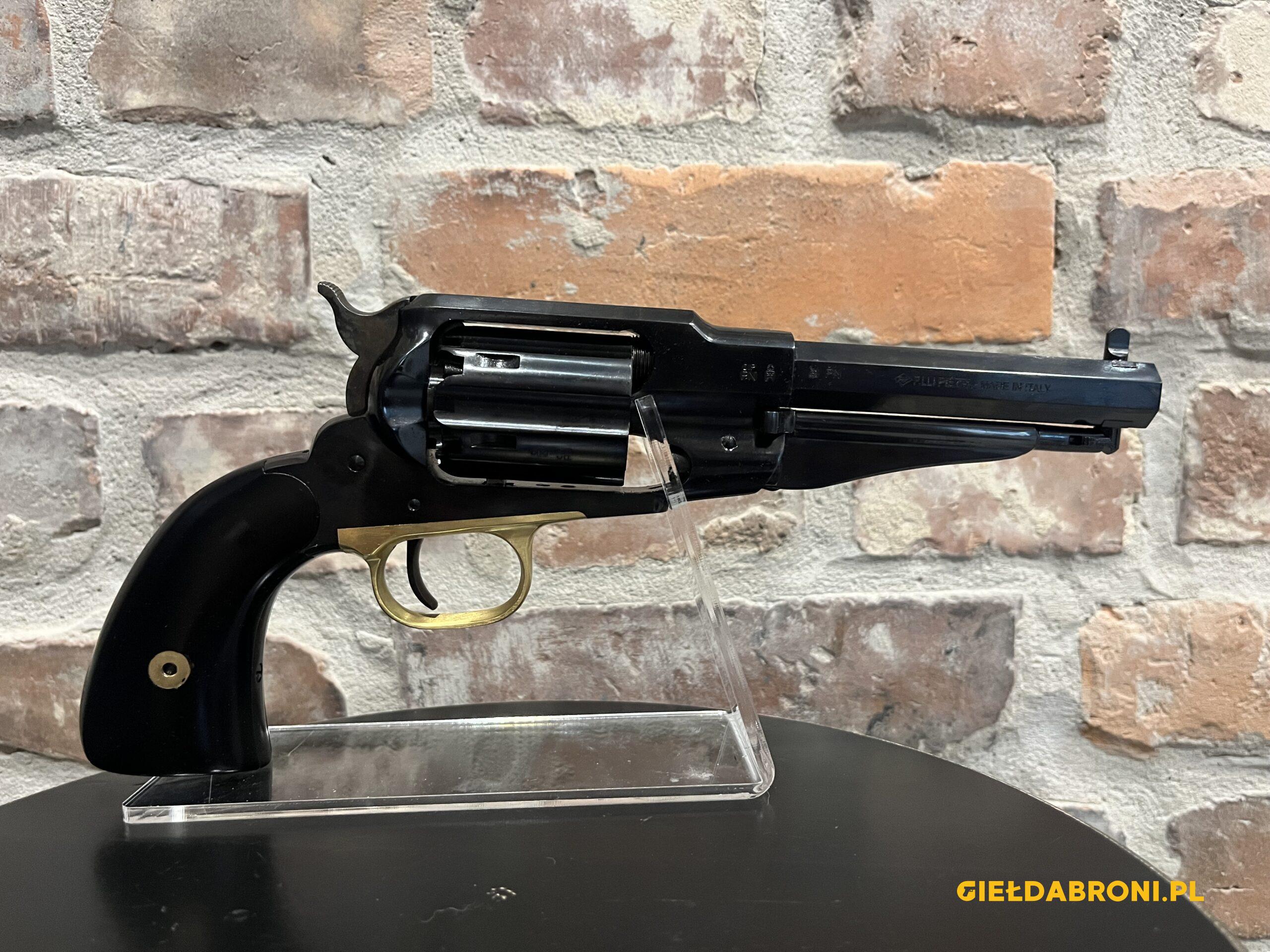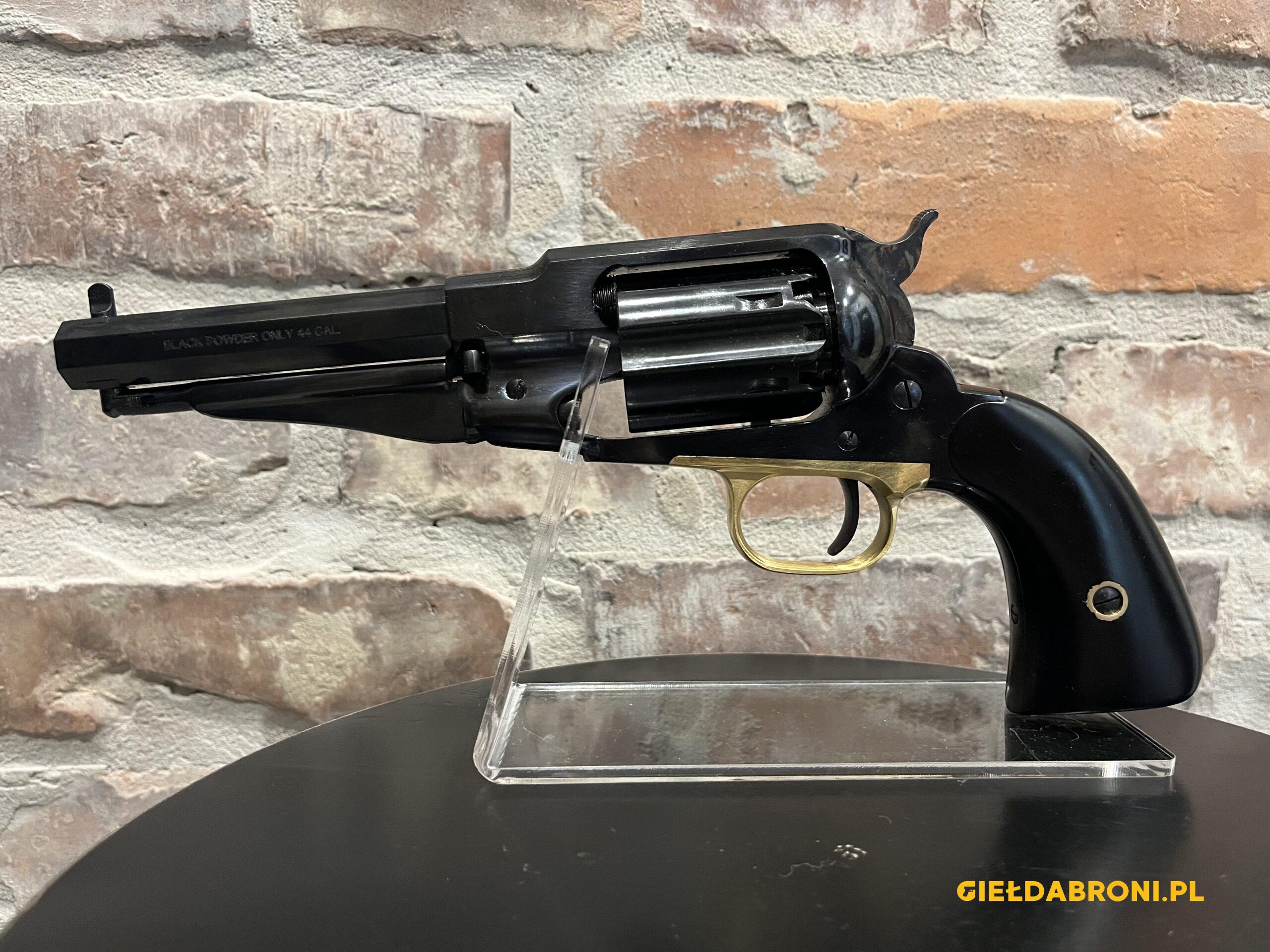 Rewolwer Remington 1858 New Model Army Steel Sheriff Black Grip .44 (RGASH44/BD/VB) Pietta kal.44, z lufą długości 5,5″. Chwyt (koloru czarnego) o zaokrąglonym profilu nawiązującym do chwytów typu bird’s head. Produkt nowy. Dostępne inne rewolwery oraz akcesoria czarnoprochowe łącznie z czarnym prochem (w przypadku czarnego prochu wymagana EKB). Ogłoszenie ma charakter informacyjny, sprzedajemy tylko i wyłącznie stacjonarnie osobom pełnoletnim, możliwa telefoniczna rezerwacja. Cały asortyment widoczny na guns-ammo.pl. W myśl art. 11 ust. 10 ustawy o broni i amunicji nie wymaga pozwolenia na broń posiadanie broni palnej rozdzielnego ładowania wytworzonej przed 1885r bądź jej repliki.