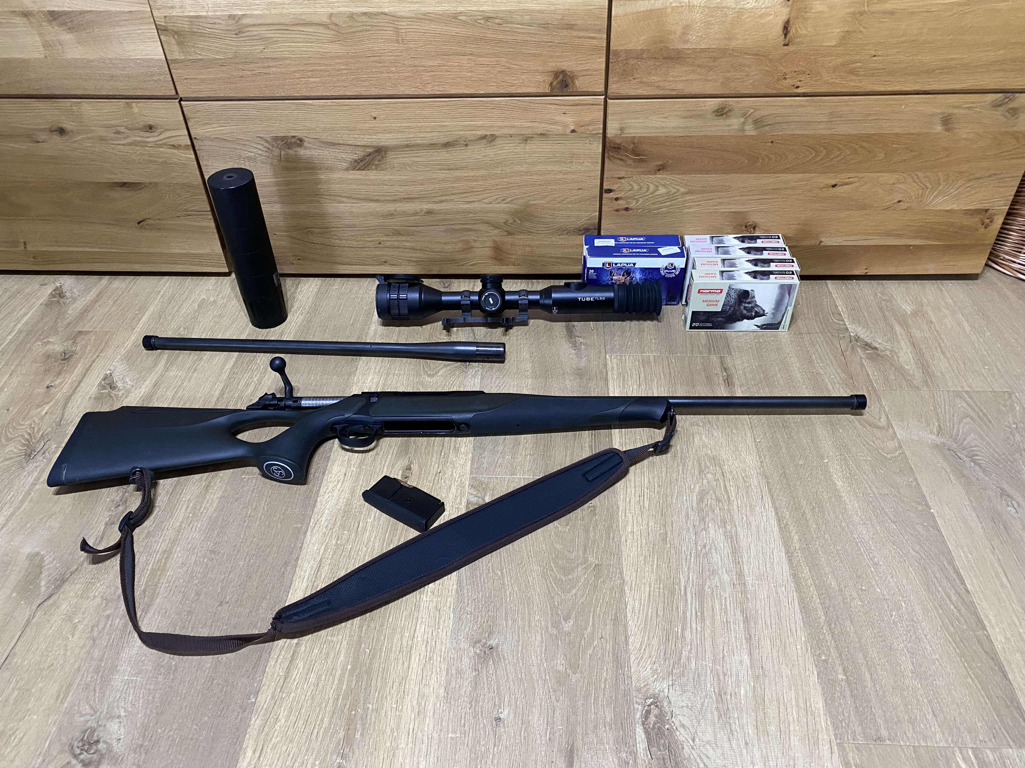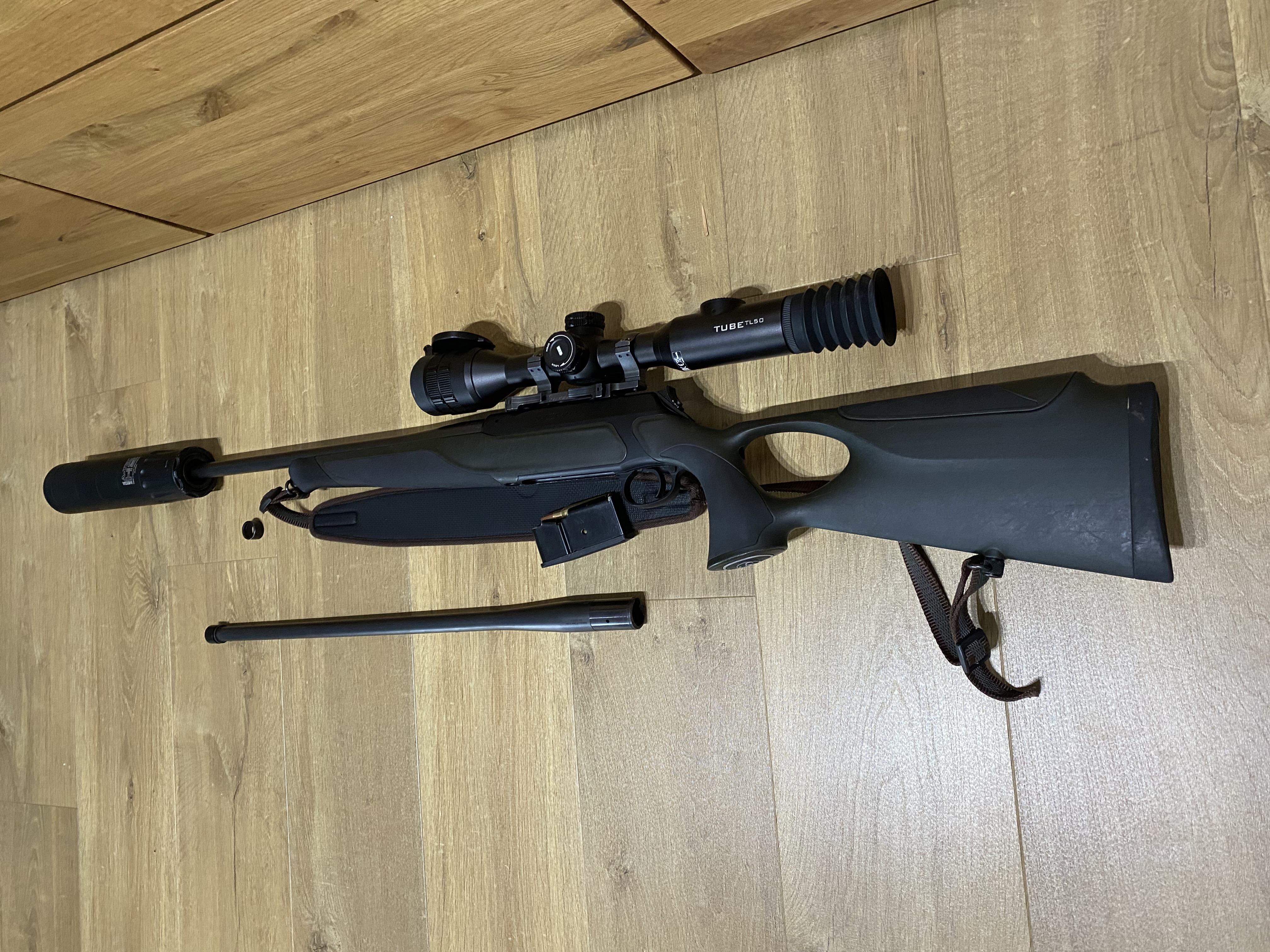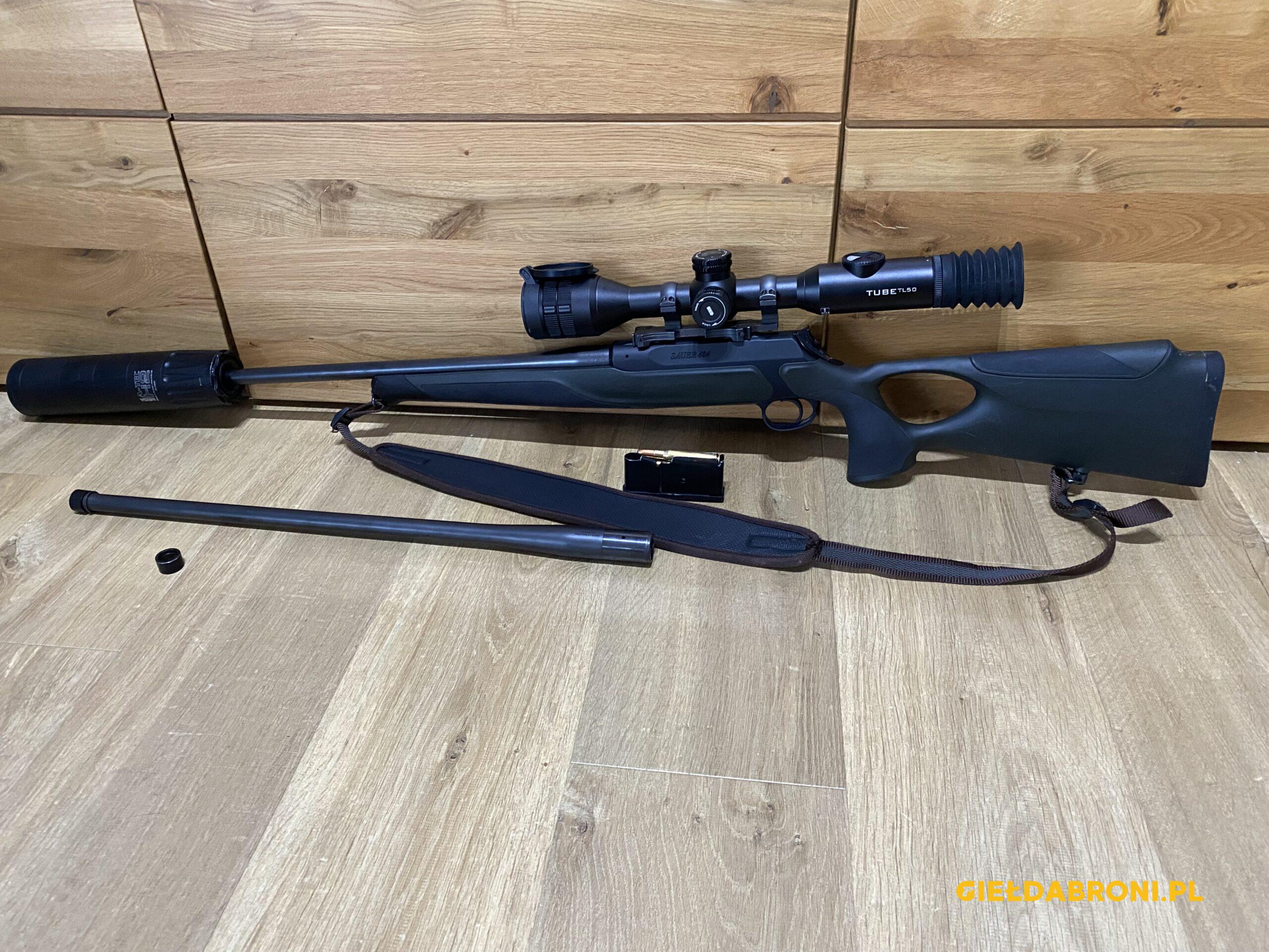 Szybki montaż Łuszczek, tłumik A-Tec H2 Mega z A-Lock, luneta Infiray TUBE TL50 amunicja Norma Alaska 30-06 11.7g/180gr, Norma Vulkan 30-06 11.7g/180gr , Lapua 6.6x55SE 10.1g/155gr Mega