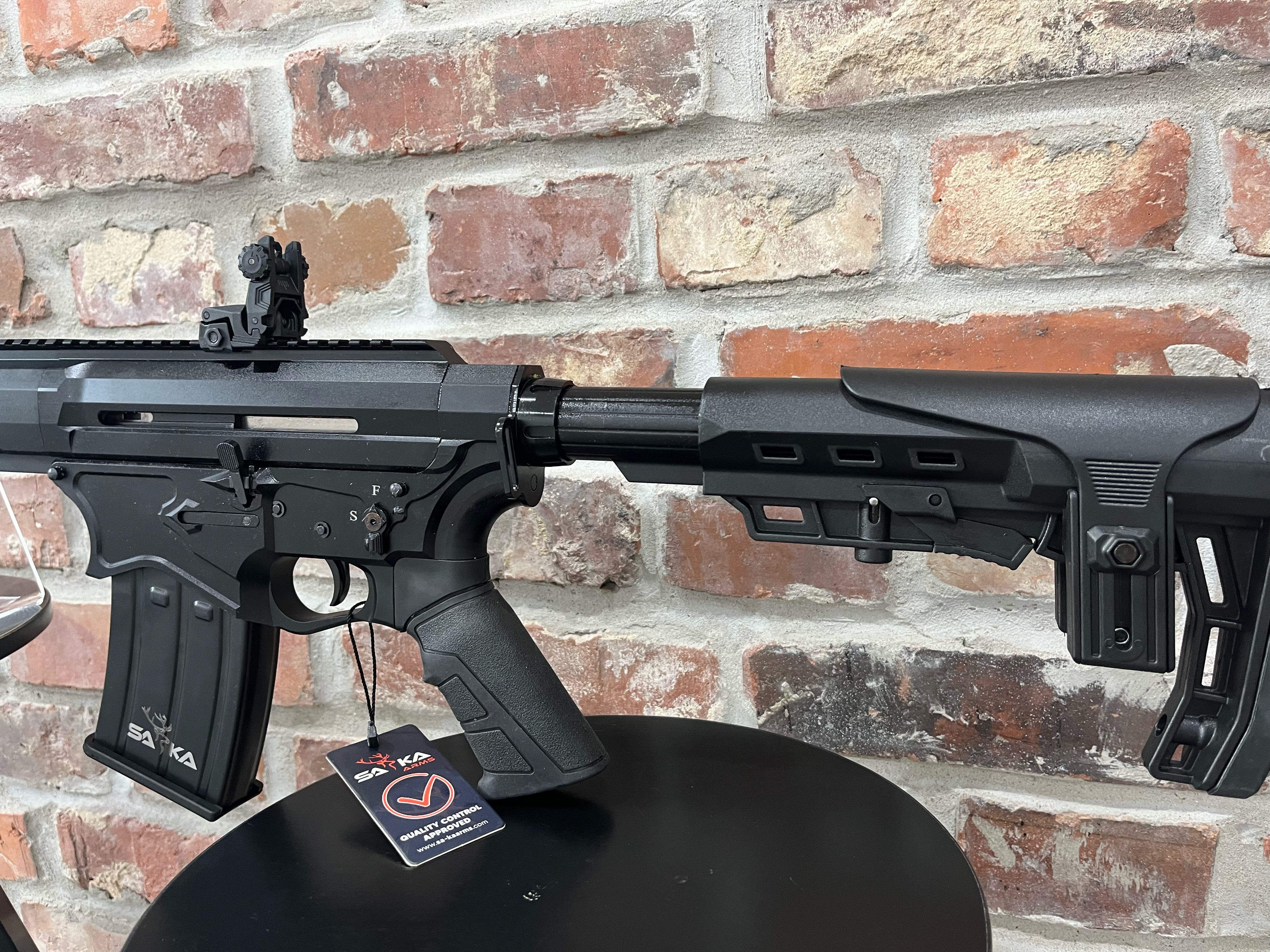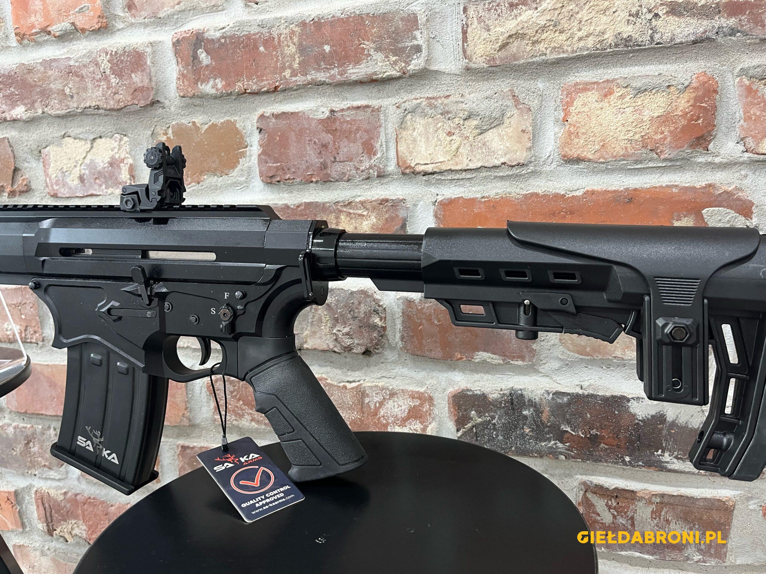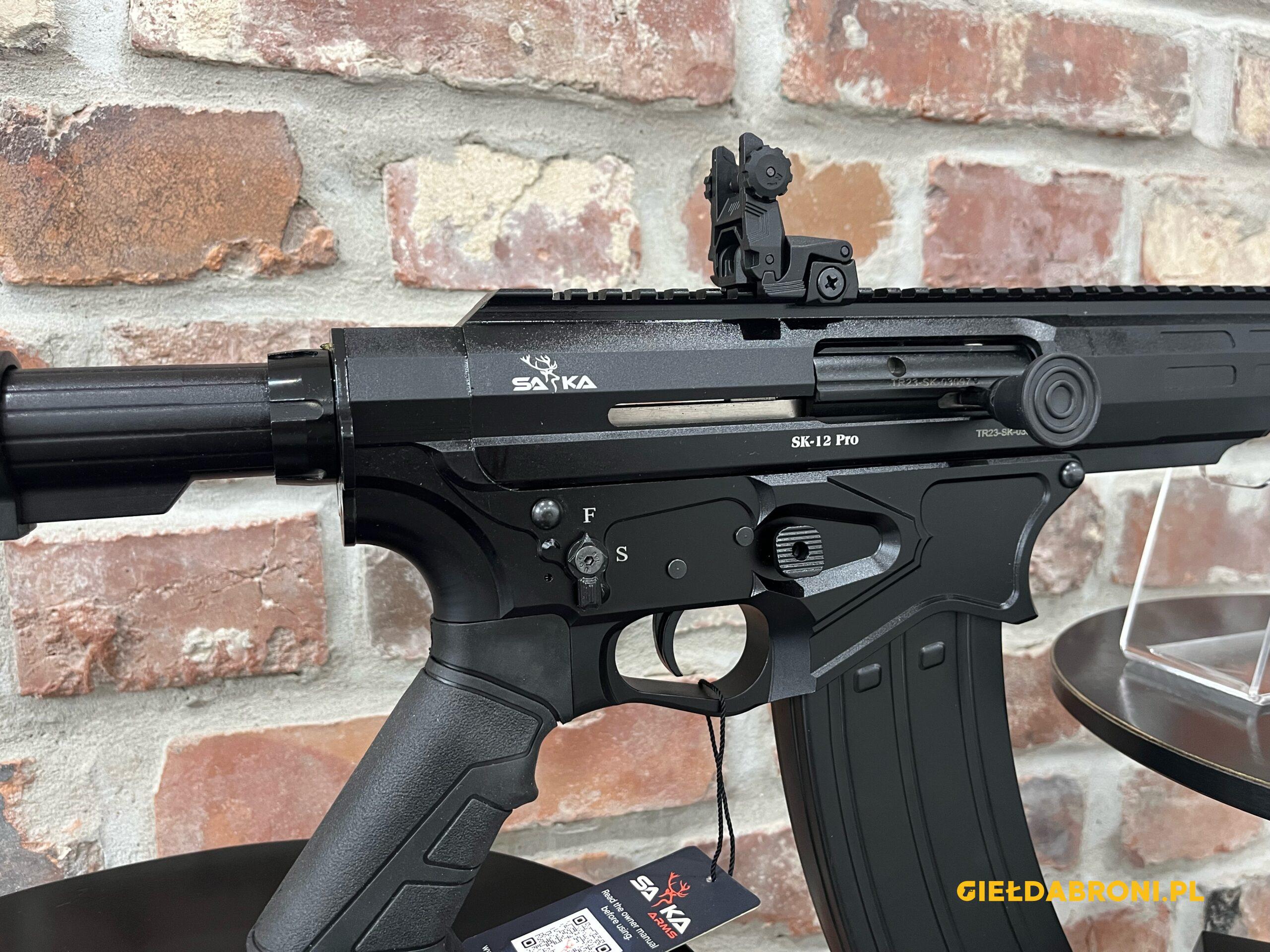 Strzelba sportowa samopowtarzalna SA-KA SK-12 Pro kal. 12/76 lufa 9,8″ w kolorze Black. Strzelba automatyczna z teleskopową kolbą wyposażona w regulowane przyrządy celownicze + szyna Picatinny. W komplecie jeden magazynek 5 nabojowy oraz jeden magazynek 10 nabojowy. Strzelba nowa. Produkt koncesjonowany, dostępny za okazaniem odpowiednich dokumentów. Tel. 737 396 130 lub przez guns-ammo.pl