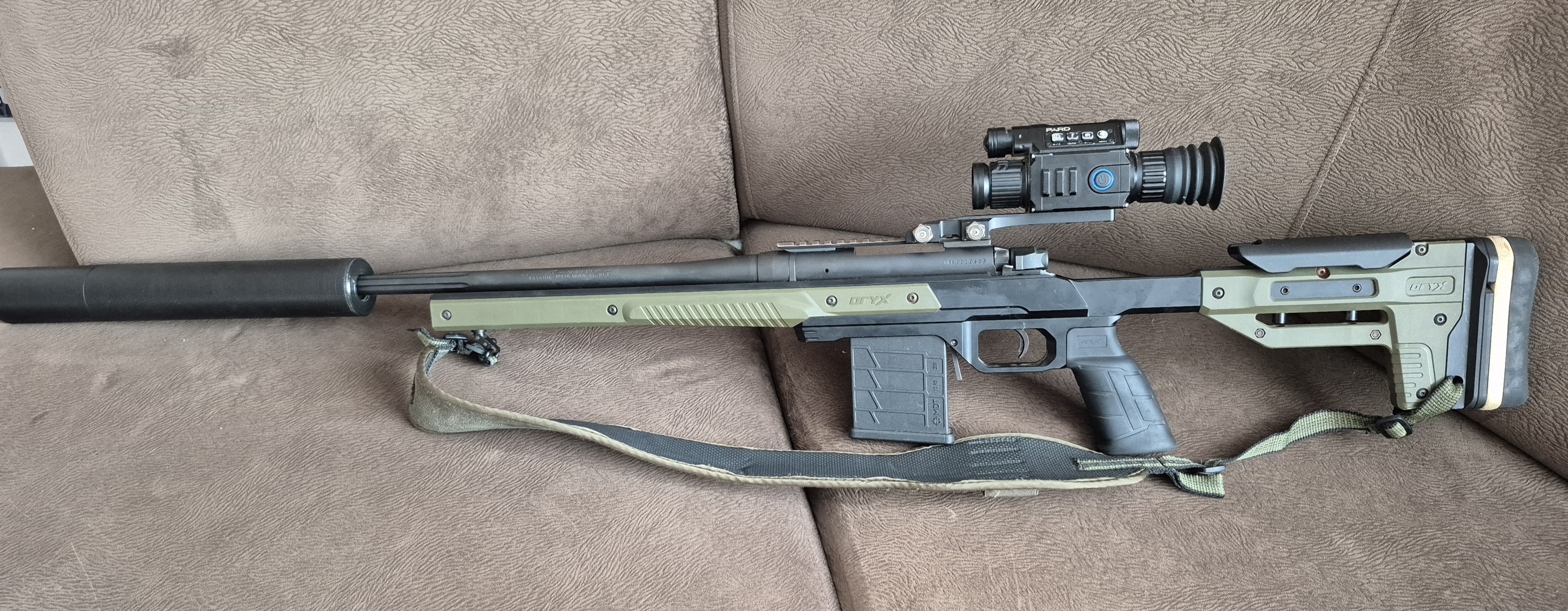Sprzedam sztucer Mossberg Patriot 308w, osada Oryx plus osada oryginalna- syntetyczna, celownik nokto Pard 008, tłumik G-tech.
