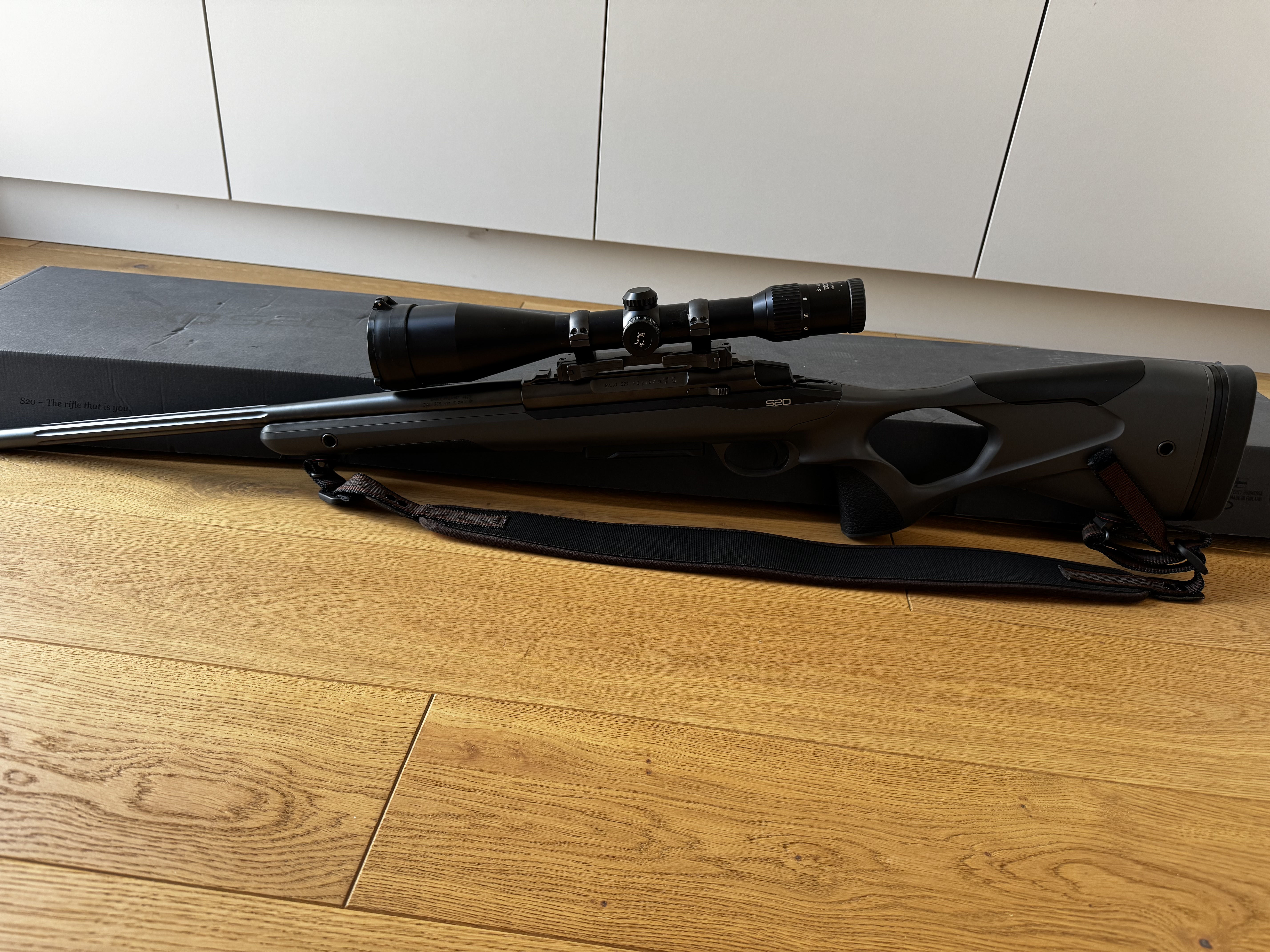 Sprzedam w idealnym stanie zestaw Sako S20,w kalibrze 308 Win, luneta Docter 3-12×56 z podświetleniem, oraz montaże szybkie Łuszczka i montaż pod kolimator.Sztucer ma dwa lata kupiony jako nowy, luneta Pulsar i kolimator nie są na sprzedaż.